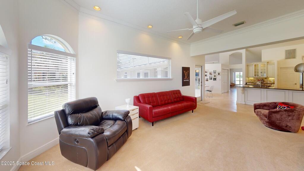 Gorgeous-Executive Style 4 Bedroom Home In One of Brevard's Most Prestigious Subdivisions. A Fortunate and Discriminating Buyer Will Marvel At The Home's Superior Design, Layout and Appointments That Blend Formal and Casual Living Spaces Perfectly! Features Include An Impressive Entryway With Leaded Glass Door and Sidelights, Raised/Vaulted Ceilings, Clerestory Windows, Crown Molding; Gourmet Kitchen With Island, Breakfast Bar, and Breakfast Nook That Overlook An Inviting Large Screened Patio Area and Private Backyard. A Sizable Master Suite Features Abundant Storage/Built-Ins, A Luxurious Bath With Jet Tub and Separate Shower. This Home Also Features A Newer Roof (2023) and New A/C System (2025); Water Heater (2020). Location Affords Convenient Access To I-95, Regional Shopping, Schools, Library and Major Employment: Northrop-Grumman, L3Harris, Melb.-Orlando Int'l Airport. Just Minutes Away From The Indian River Intracoastal Waterway and Beaches. Impeccably Maintained!