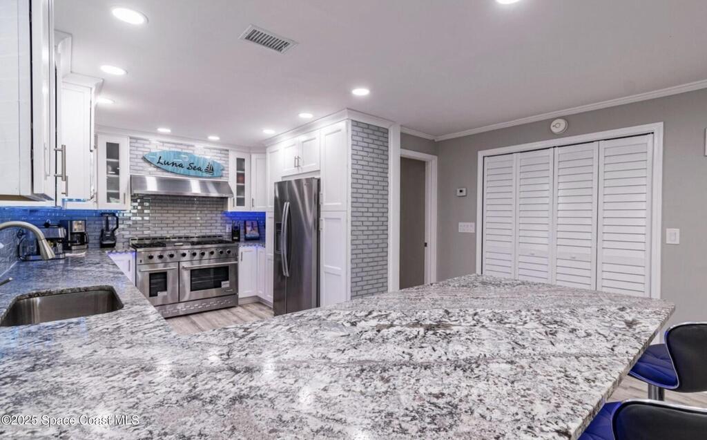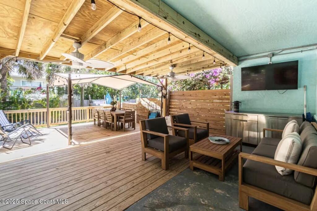 Your Beachside Oasis awaits you, just steps to the beach! This unit has been completely remodeled down to the studs! Full remodel in 2022 including A/C, Hurricane Impact Windows, Water Heater, Backyard Deck, Outdoor Shower, Kitchen, Bedrooms, Bathrooms, floors and much more! 2023 Roof! The gourmet kitchen features an commercial stove with 8 burners and a griddle, also two ovens (one convection and one normal oven). Commercial Fridge with plenty of space and level 7 granite with new white shaker cabinets! Each bedroom has an en-suite bathroom upgraded with rain head showers and top of the line finishes! The back deck is an entertainers paradise with plenty of room, seating area, TV, fridge, and countertop area. No HOA! Furniture included! Turn Key property for you to just bring your personal items and enjoy the beachside life in your private oasis.