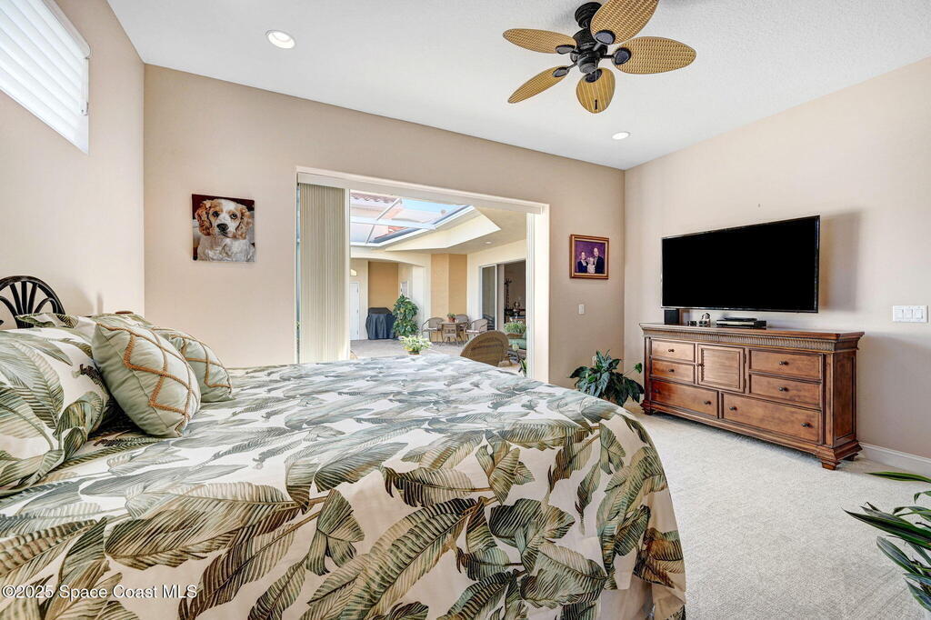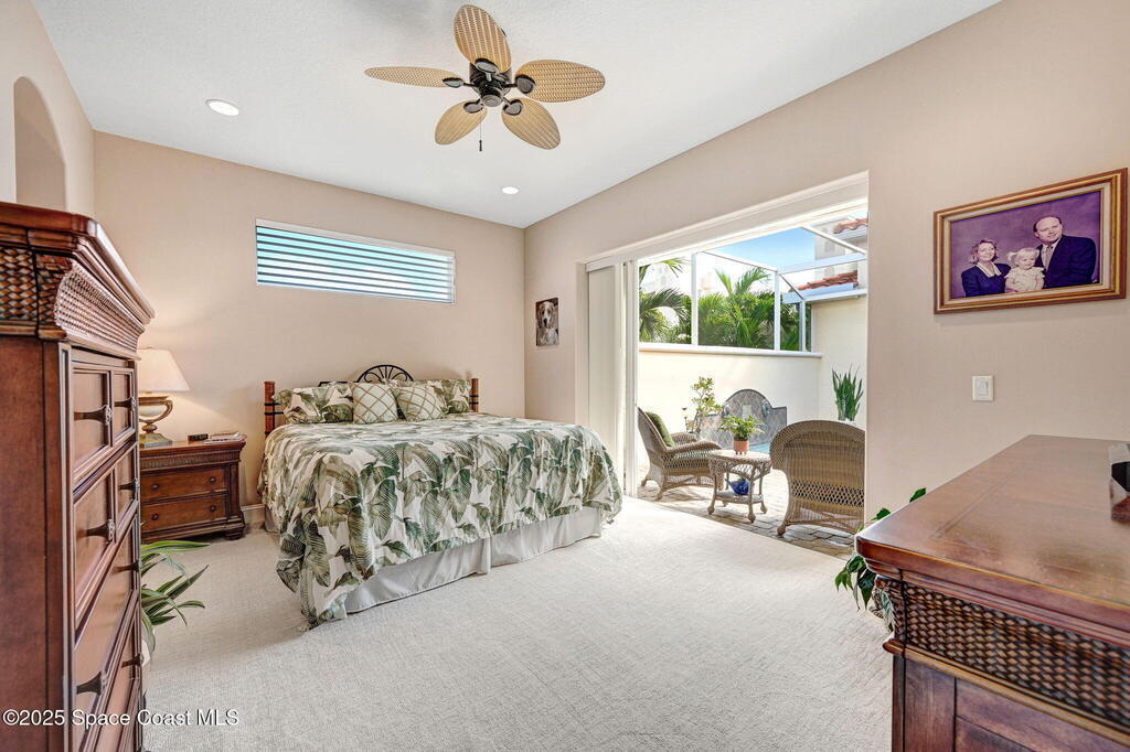Walk through the double doors into this 3-bedroom, 2-bathroom home and step right into the screened-in patio courtyard with a sparkling dipping pool, the heart of the home! This peaceful, private space connects to the kitchen, living room, and primary suite, perfect for relaxing, entertaining, or soaking in the Space Coast lifestyle. Watch the sunrise with your morning coffee, unwind at sunset with a cocktail, and even catch a rocket launch right from your courtyard!The primary suite features a 5-piece bathroom with a soaking tub, stand-up shower, and his-and-her closets. Two additional bedrooms provide space for guests, an office, or hobbies. Close to the community pool yet completely private, with a 2-car garage and a location just minutes from Cape Canaveral cruise ports, Kennedy Space Center, the beach, the Indian and Banana Rivers, and all the dining, shopping, and activities the Space Coast has to offer.