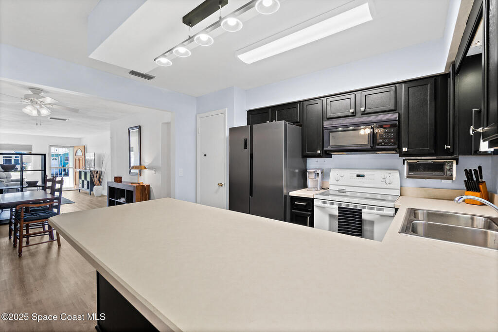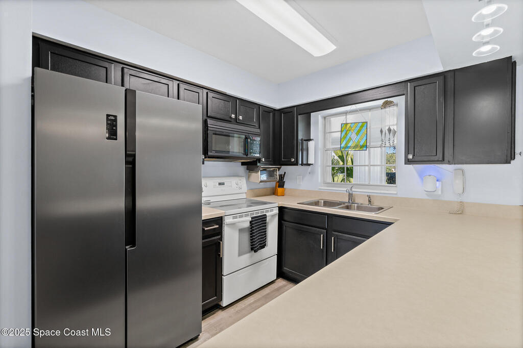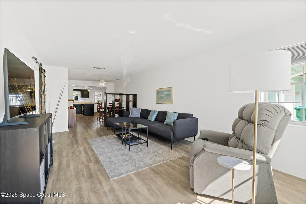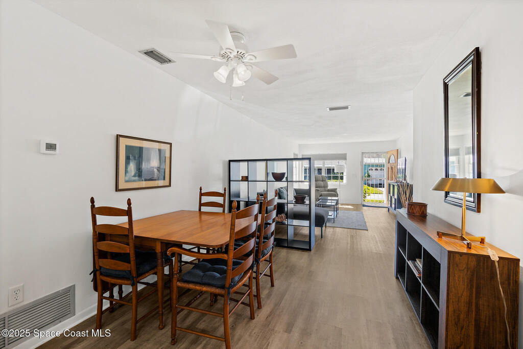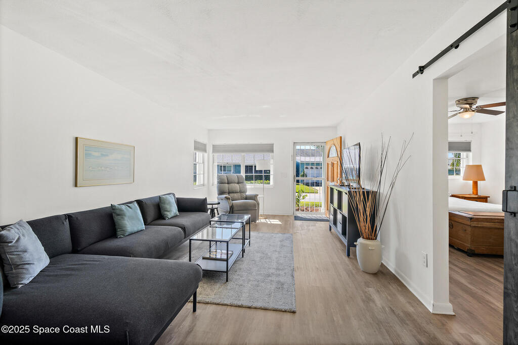 Sought after one-story townhome in a prime location. Welcome to 410 Emerald Dr S, a charming coastal retreat nestled in on of South Indian Harbour Beach desirable areas. This beautiful maintained home blends relaxed FL living with modern comforts - just minutes from the beach, river, parks and dining venues. Step inside to find a light filled, open living area with fresh neutral decor, LVP flooring, and large windows. The kitchen features ample solid wood cabinetry and a casual breakfast bar. The large tiled sunroom provides extra space and leads to the beautiful common pool area. The home boasts two large bedrooms and two bathrooms. The home also has an extra long one car garage and plenty of guest parking. Accordion hurricane shutters. A-rated schools and close to Canova Beach Dog Park, Several Restaurants, Publix, Aldi. Walmart, Gleason, Oars & Paddles Park, Eau Gallie Blvd with direct path to I-95. Come see why locals love Indian Harbour Beach - your coastal lifestyle starts here