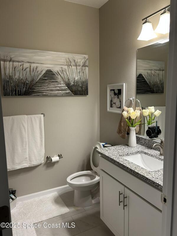 Experience comfort, style, and convenience in this beautiful 2nd-floor home, ideally located just 3 miles from The Shoppes at Viera with nearby golf, dining, A-rated schools, and easy I-95 access. The attached one-car garage includes a 220 outlet for EV parking. Inside, enjoy custom tile flooring throughout, an open layout with vaulted ceilings, and a designer kitchen featuring granite countertops and state-of-the-art stainless-steel appliances. The primary suite offers a walk-in closet and dual-sink vanity beneath a large mirror. Step onto the east-facing balcony to take in peaceful waterfront and sunrise views. Available furnished if desired--your perfect retreat awaits!