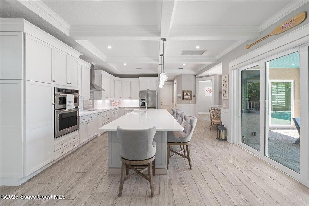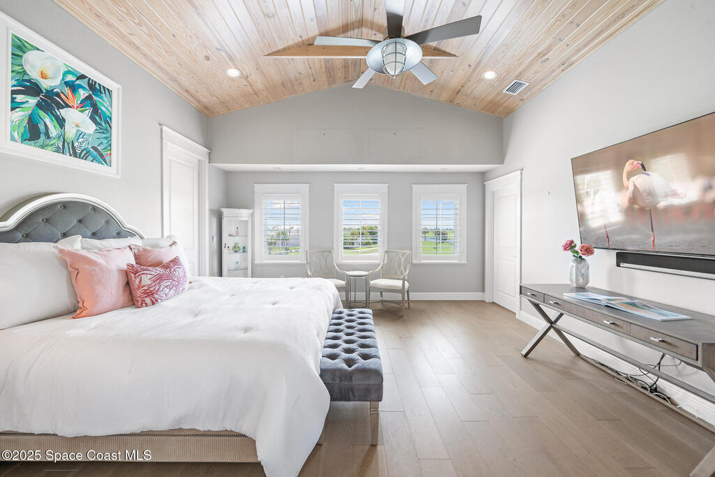 GORGEOUS EXECUTIVE COCOA BEACH POOL HOME FOR LEASE!!! Built in 2017 and backing to the Cocoa Beach Golf Course, this 2,863 sq ft luxury home blends coastal charm with elevated modern living. Enjoy 3 bedrooms & 3.5 baths, including two private en suites--one on the main level and one upstairs paired with a secondary living space for privacy and multigenerational living. Soaring vaulted, coffered, and tongue-and-groove ceilings add warmth and character. The gourmet kitchen features premium stainless appliances, double oven, convection cooktop, beverage fridge, farmhouse sink & large quartz island. Step outside to a private tropical retreat with saltwater pool, heated spa & lush landscaping. Fully furnished with 2-car garage + extra paver parking. Pool & lawn care included. Walk or golf-cart to Cocoa Beach Country Club, and you're just about 1 mile from the heart of downtown Cocoa Beach--restaurants, shops, events & public beach access. Also listed for sale at $1.31M. Seeking annual lease.