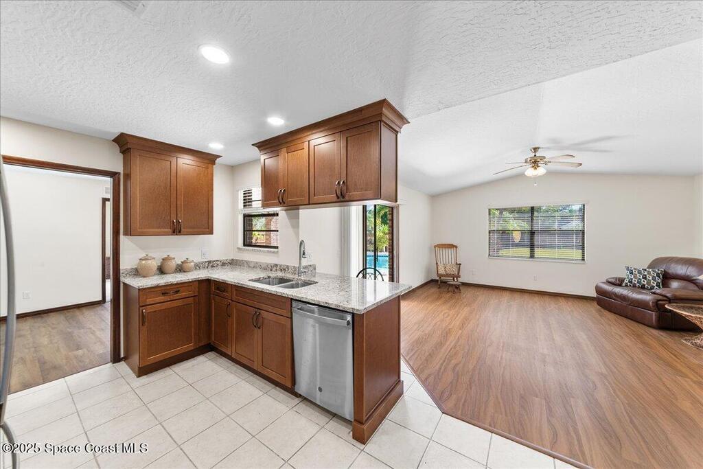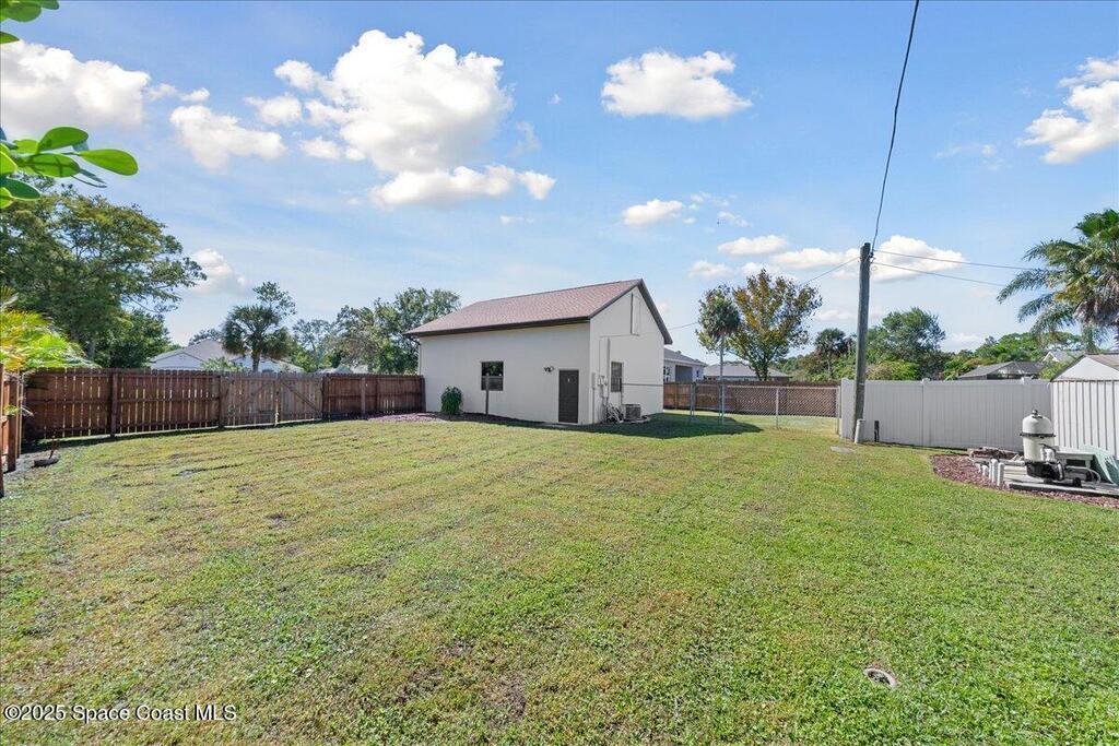 Recently remodeled pool home situated on 1/2 acre w/ over 1,300 sq ft detached garage & loft is perfect for a home business owner, hobby enthusiast or even turn into a MIL suite. You'll love the spacious lot with a large fenced yard, perfect for pets, entertaining, or simply enjoying the outdoors. Located in a quiet neighborhood surrounded by beautiful new construction, this home provides the perfect blend of tranquility and growth. The primary bedroom offers a peaceful retreat overlooking the tropical back yard, while the additional bedrooms provide flexibility for family or guests. Kitchen includes plenty of storage with soft close cabinets & level 3 granite counters w/ built in breakfast bar. Attached garage is additional under air space, providing easy workspace/office potential. The detached garage has it's own private driveway located off Dolores, the neighboring road, loft is under air. Located just outside of Lockmar, you'll enjoy convenient shopping areas and I95 access