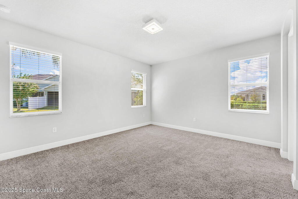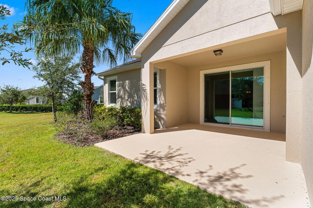 Tucked away at the quiet end of a cul-de-sac, this gorgeous end-unit townhome is located in the highly desirable, maintenance-free community of Loren Cove in Viera. Bright and open, the spacious tiled kitchen and living areas flow seamlessly to a private covered porch overlooking peaceful surroundings--ideal for relaxing or entertaining. The kitchen features a large breakfast bar, cozy nook, and stainless-steel appliances including a gas range, refrigerator, built-in microwave, and dishwasher. All three bedrooms offer plush carpeting, while the primary suite showcases a luxurious garden tub, dual-sink vanity, and separate walk-in shower. Natural gas feeds the range oven & a tankless, gas hot water heater. The laundry room with washer and dryer sits conveniently between the kitchen and two-car garage. Residents enjoy a playground just steps away and full access to the resort-style Addison Village Club with pools, fitness center, and more.