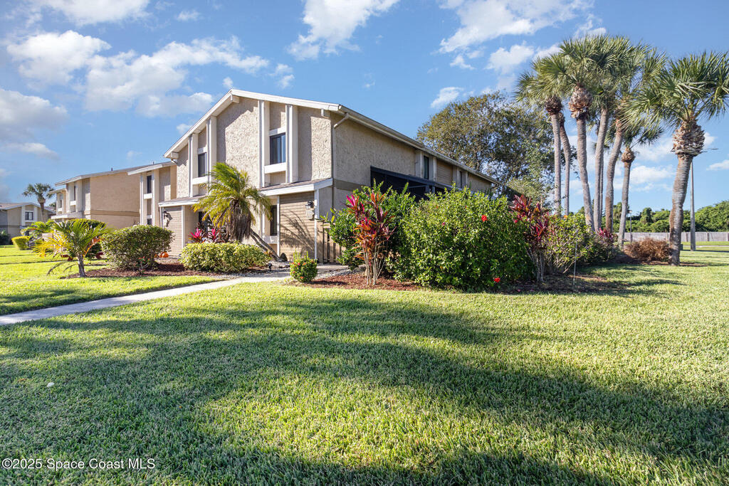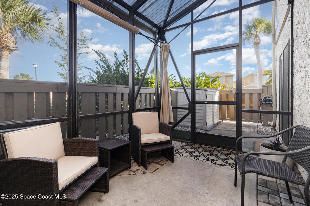 This charming 3 bedroom 2 bathroom, 2 story townhome is an end/corner unit, with a privacy gate and a fully screened in front patio. There is 1 bedroom and a full bathroom on the 1st floor, with 2 more bedrooms and a full bathroom upstairs. Primary bedroom has walk in closet and a sink and vanity in room. Butcher block counters in kitchen, laundry inside unit. The Hoa includes ground maintenance, community pool, tennis courts, clubhouse and structure. First level is 716 square feet and upper level 561. Large storage closet under the stairs and storage bin outside the patio. Assigned parking for this unit #54.This complex is in a great area, close to major shopping, schools, to I-95 and is only 15 minutes to the beach.