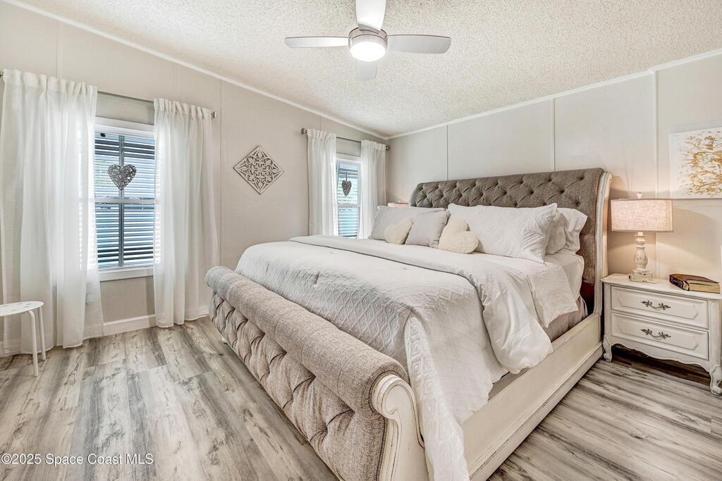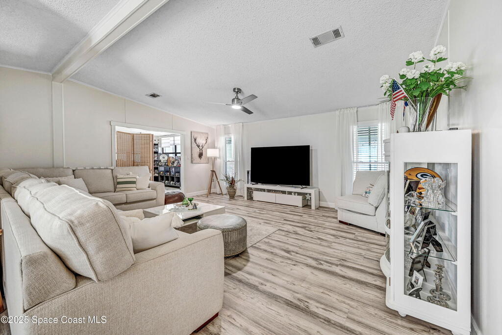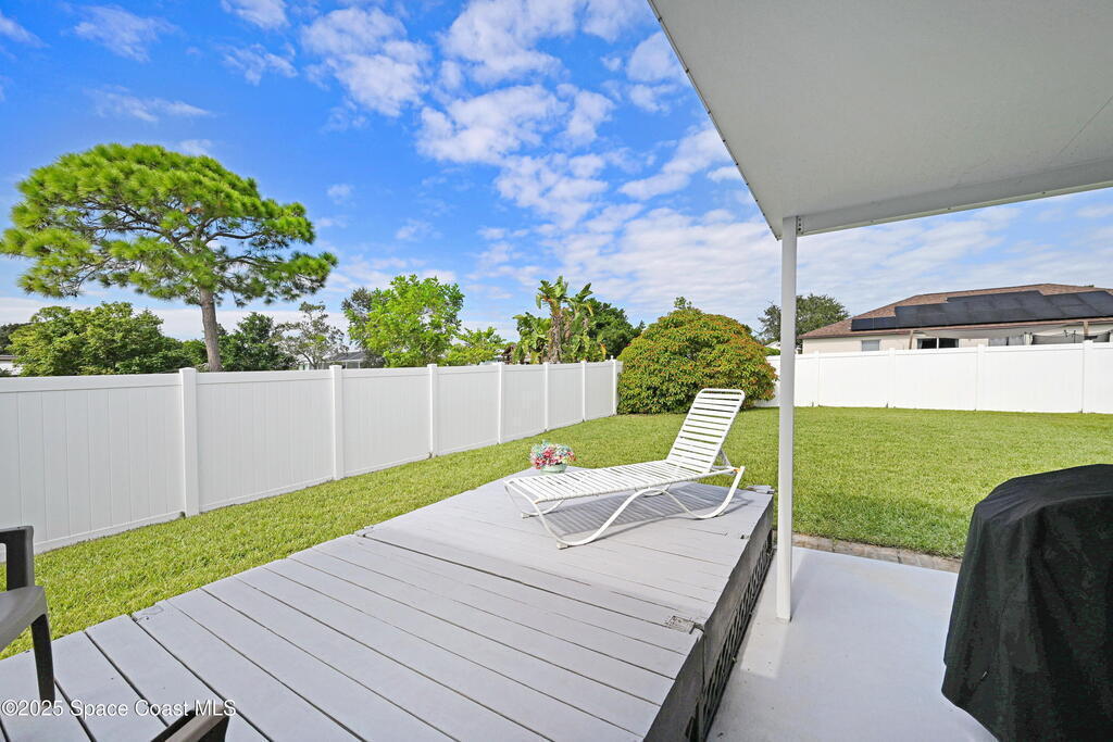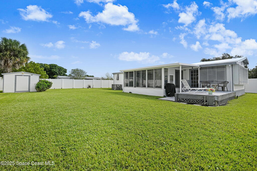 PRIDE OF OWNERSHIP AT ITS FINEST! Located just minutes from the Indian River, Golf Courses, Marinas, Restaurants, Shops, Hospital, 15 min. to Wabasso Beach, 25 min. to Melbourne Beach & 1 hour to Orlando Airport. This immaculately maintained 2BR plus Flex Rm, 2Bath, 1.5Car Garage sits on a spacious .25 acre in a neighborhood of distinction - with estate sized homes & lots with no HOA provides room to breathe. Enjoy a bright & open floor plan that features a concrete subfloor with brand-new luxury vinyl plank flooring, 5'' baseboards, chair railing, motorized blinds in Flex Room, double pane windows, & storm shutters with interior control for hurricane protection. Major updates include a 2022 roof, 2020 A/C & 2022 water heater. Enjoy a deck perfect for sunbathing, backyard w/room for pool & boat storage, versatile porch with glass windows & screens, double-wide driveway, shed, 6' vinyl privacy fence, & generator hookup. The lush green yard features a sprinkler system on a private well!