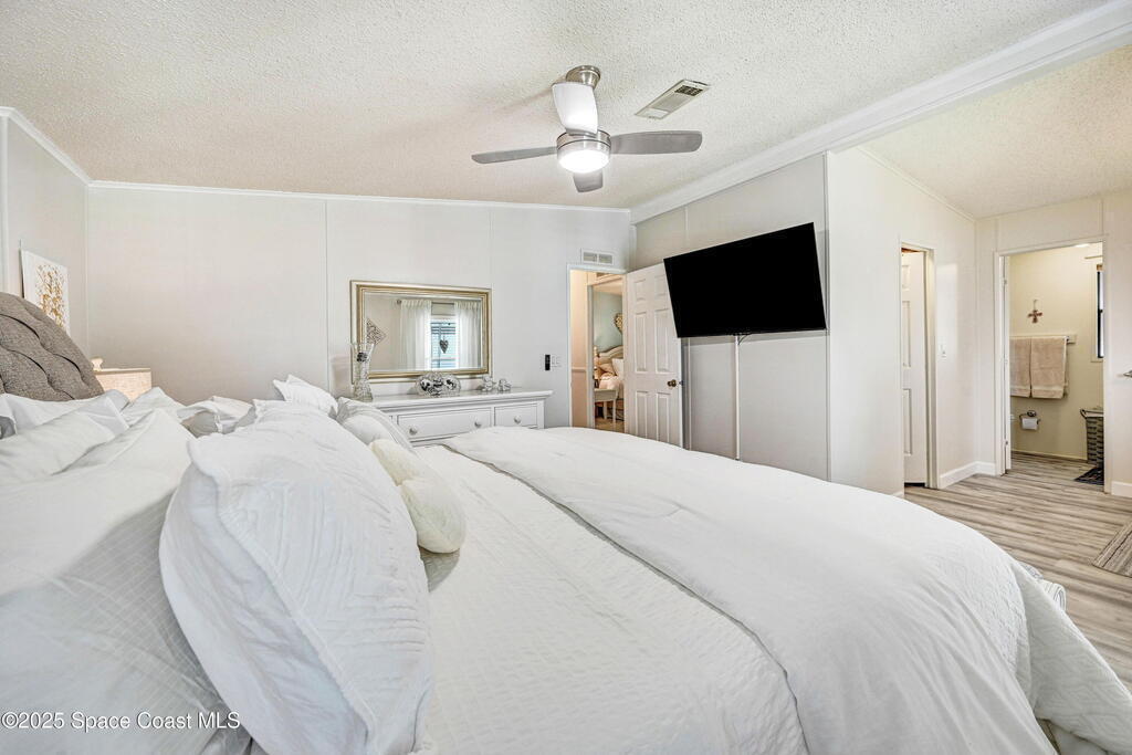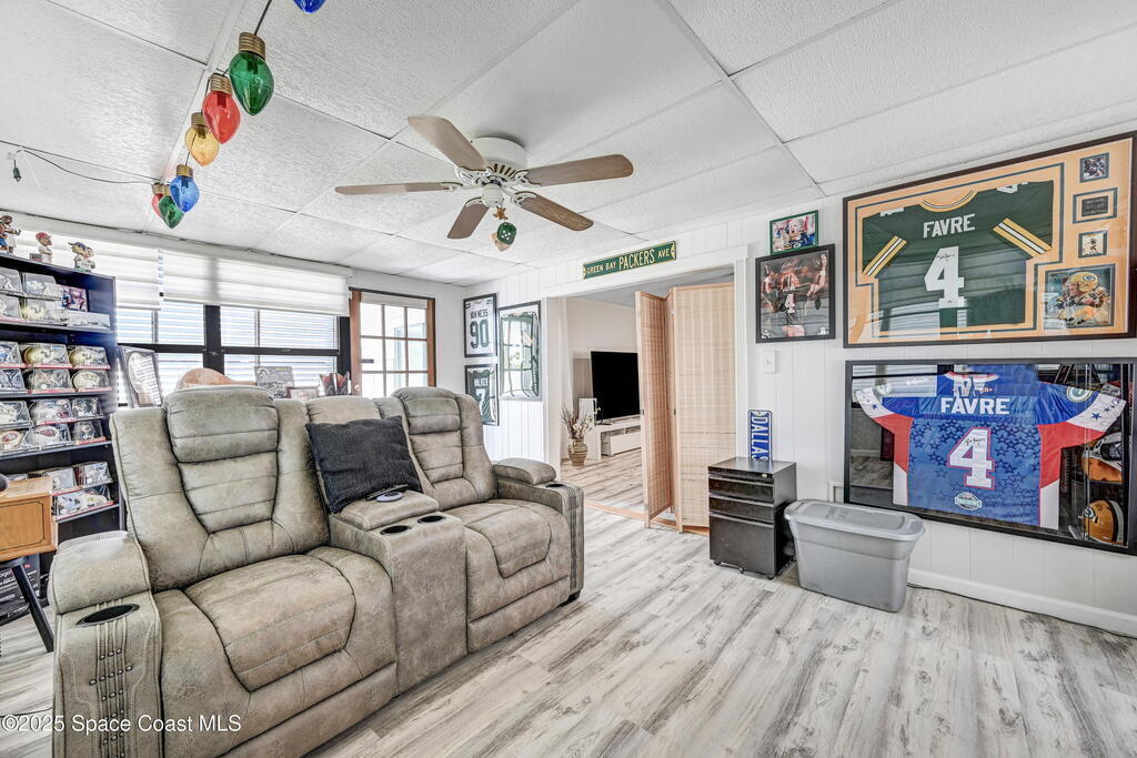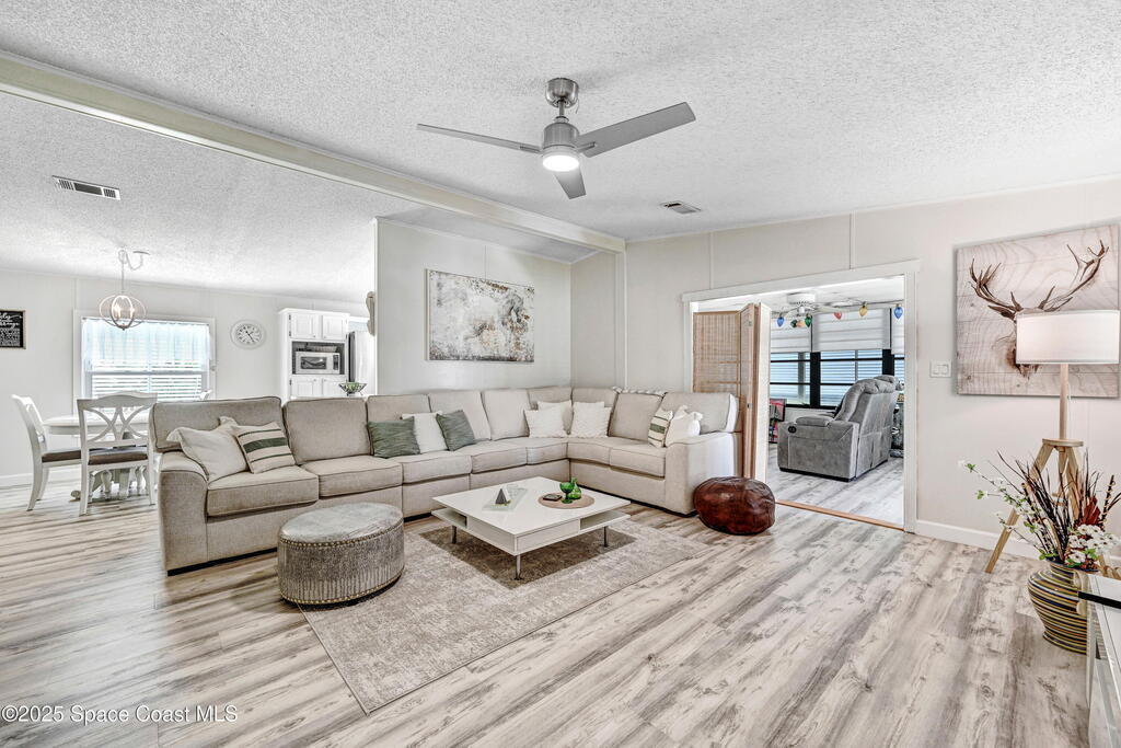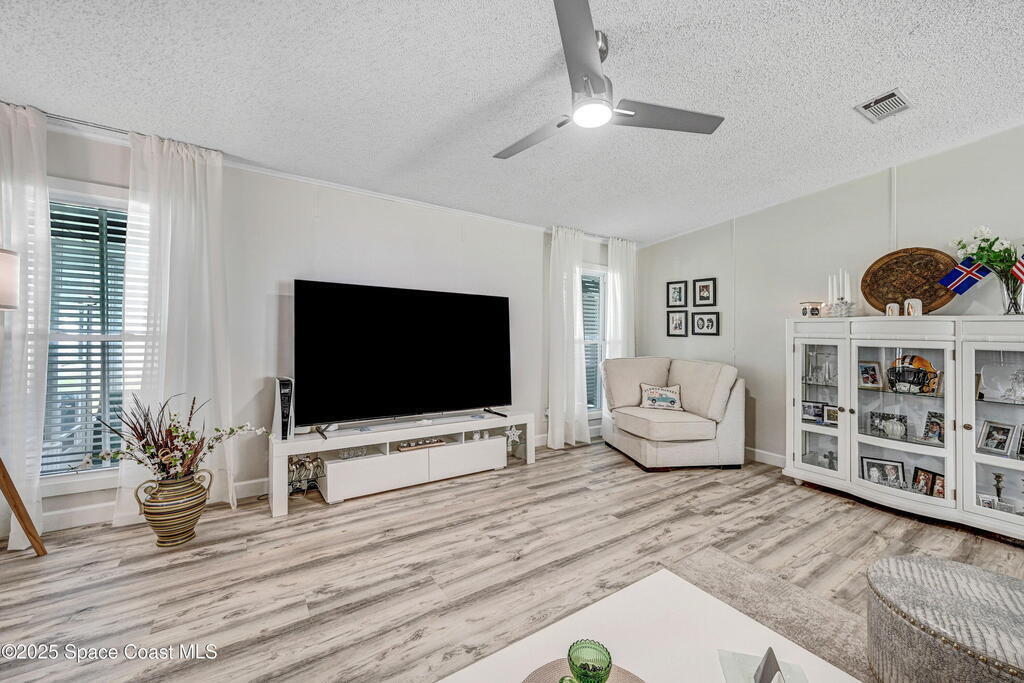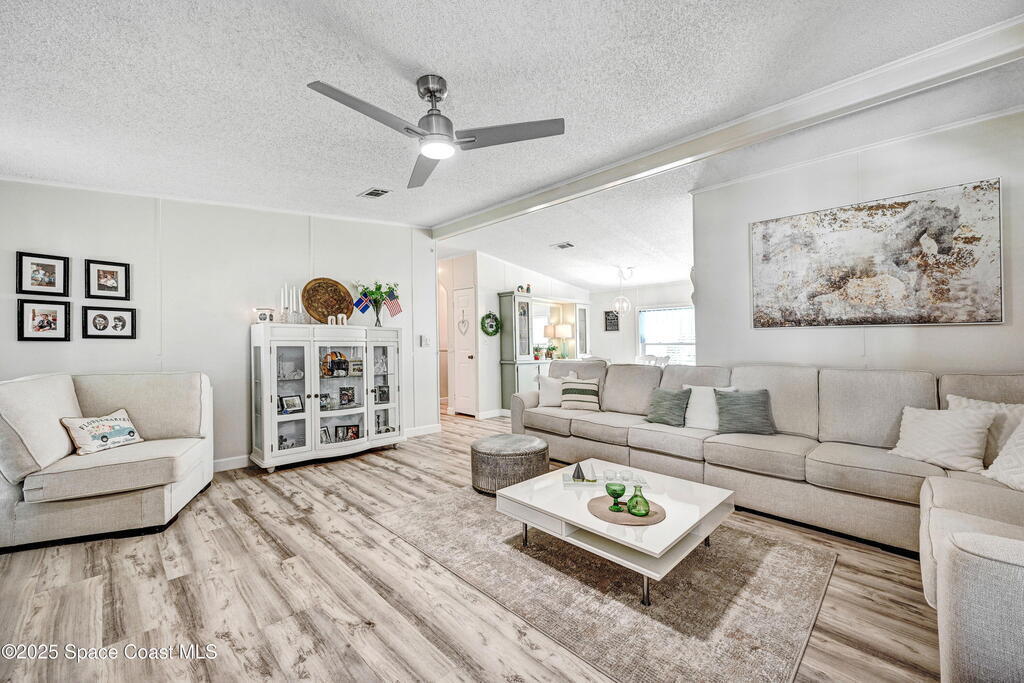 PRIDE OF OWNERSHIP AT ITS FINEST! Located just minutes from the Indian River, Golf Courses, Marinas, Restaurants, Shops, Hospital, 15 min. to Wabasso Beach, 25 min. to Melbourne Beach & 1 hour to Orlando Airport. This immaculately maintained 2BR plus Flex Rm, 2Bath, 1.5Car Garage sits on a spacious .25 acre in a neighborhood of distinction - with estate sized homes & lots with no HOA provides room to breathe. Enjoy a bright & open floor plan that features a concrete subfloor with brand-new luxury vinyl plank flooring, 5'' baseboards, chair railing, motorized blinds in Flex Room, double pane windows, & storm shutters with interior control for hurricane protection. Major updates include a 2022 roof, 2020 A/C & 2022 water heater. Enjoy a deck perfect for sunbathing, backyard w/room for pool & boat storage, versatile porch with glass windows & screens, double-wide driveway, shed, 6' vinyl privacy fence, & generator hookup. The lush green yard features a sprinkler system on a private well!