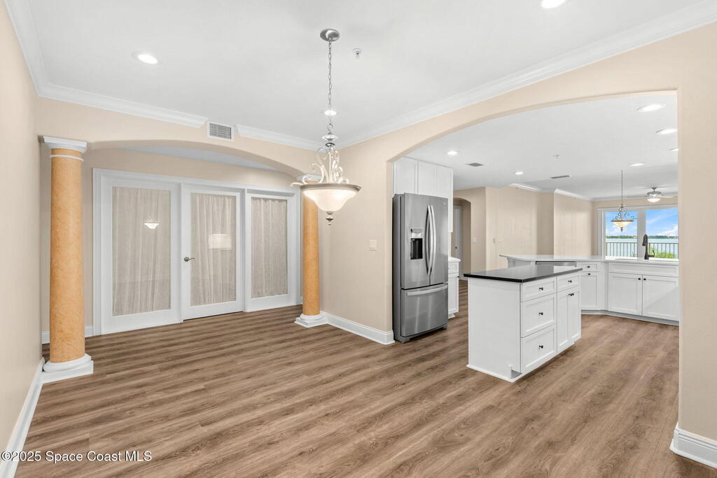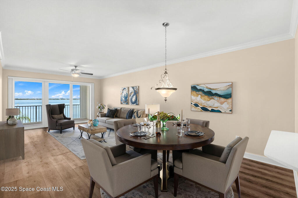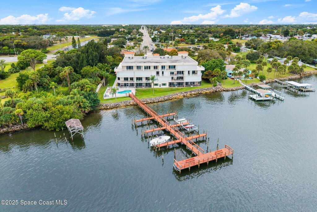 Remodeled Kitchen and Master Bath. New flooring throughout. Sliders were replaced in 2022, and new hurricane shutters were installed in 2024. Discover the elegance in this 3-bedroom penthouse, perched high above the landscape with direct Indian River views. Perfectly blending modern sophistication and comfort, this top-floor gem offers an idyllic retreat with privacy, convenience, and panoramic views. This stunning condominium has a private 2-car garage. (MILESTONE INSPECTION COMPLETE AND PASSED)