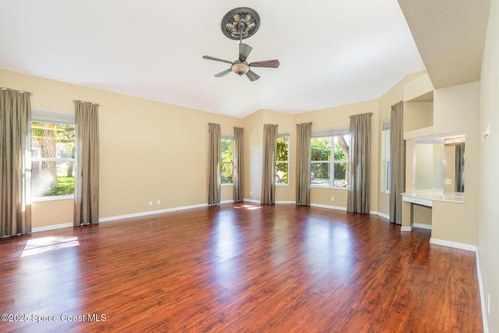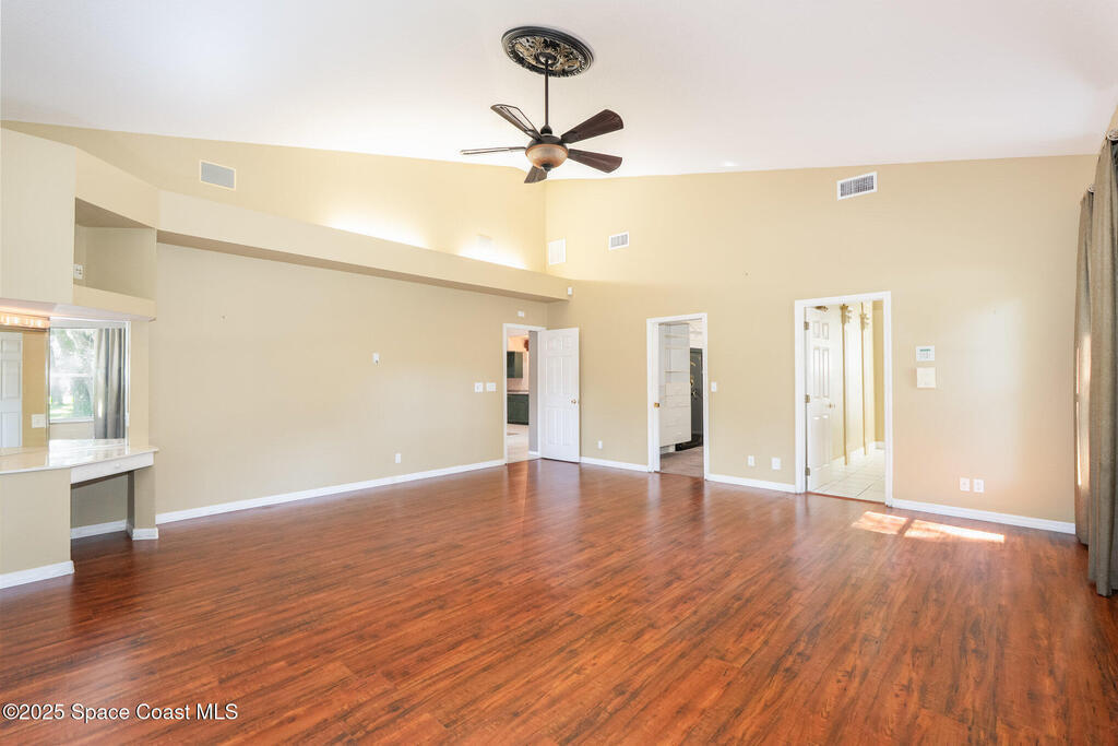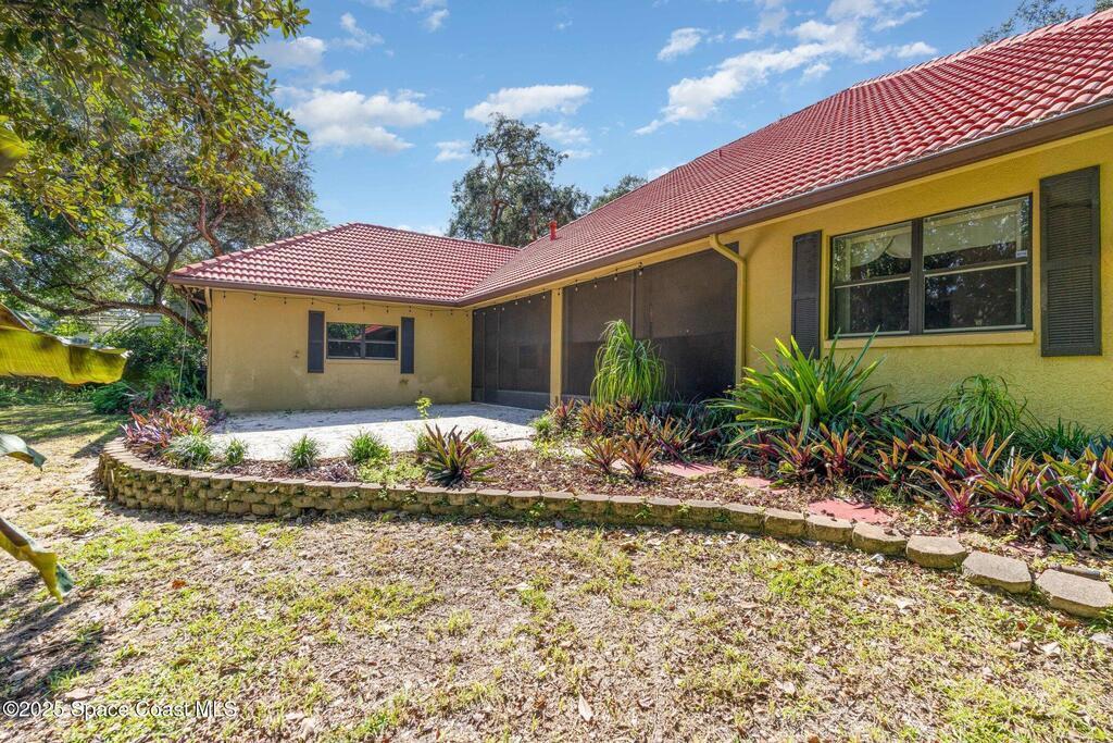 Spacious 4-bedroom, 3-bath split-plan home offering over 3,000 sq. ft. of comfortable living space. The open-concept layout features a center-island kitchen with an eat-in area, perfect for family gatherings or entertaining. A cozy fireplace anchors the main living area, creating a warm and inviting atmosphere. Enjoy both a large screened porch and an open-air paver patio overlooking a peaceful wooded backyard -- ideal for relaxing or outdoor dining. Additional highlights include a tile roof, circle driveway, built-in safe, and an indoor laundry room for everyday convenience. A truly inviting home combining generous space, thoughtful design, and natural surroundings. Close to shopping, entertainment, waterways, and interstates plus NASA, SpaceX, BlueOrigin, ULA, etc. are a short commute.
