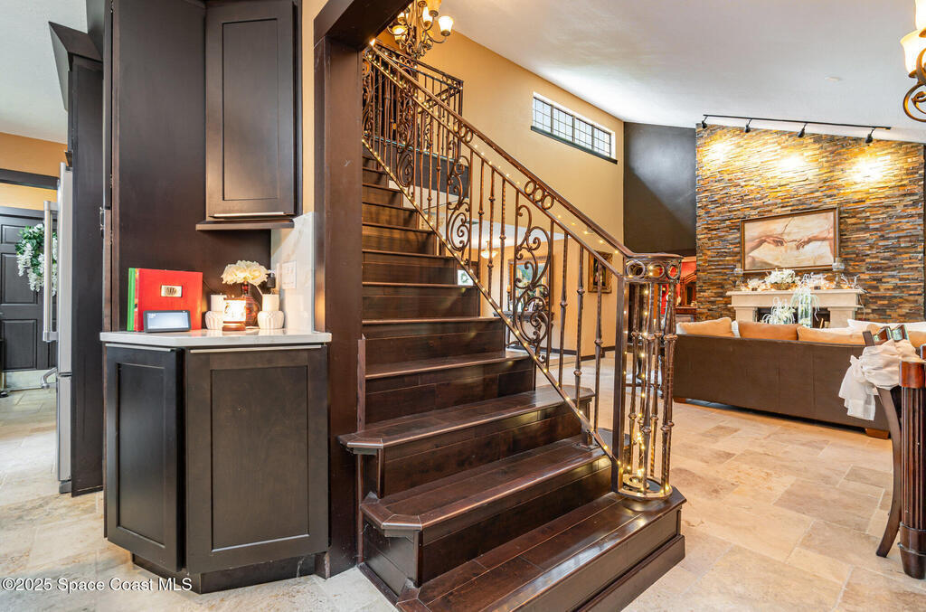 Welcome to your luxurious Florida Oasis. Discover timeless elegance and resort-style living in this meticulously designed West Melbourne sanctuary. From travertine marble floors and pool deck to a gourmet kitchen, home features onyx, granite, and quartz finishes, every detail reflects luxury and tranquility. Step outside to a stunning pool, outdoor kitchen, and lush oversized yard with fruit trees--perfect for entertaining or unwinding. The Florida room offers a cozy fireplace and bar, while the lavish first floor primary suite features dual vanities, a soaking tub, and walk-in shower. This is more than a home--it's a lifestyle of elegance, comfort, and tropical charm.