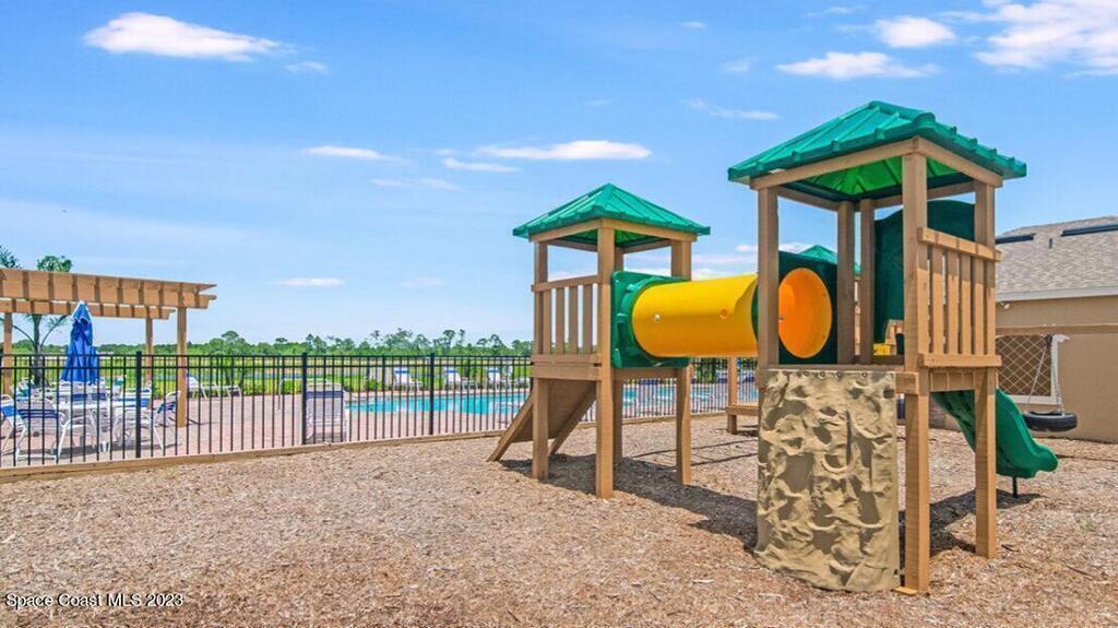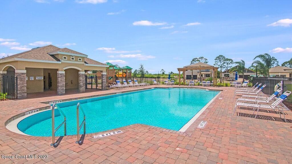 4/2/2 house located in gated community of Bayside Lakes! This one-story model home layout optimizes living space with an open concept kitchen that overlooks the great room, dining area, and outdoor covered lanai. The owner's suite, located at the back of the home for privacy, has an Ensuite bathroom. At the front of the home, two bedrooms share the second bathroom. A flex room is located near the laundry room. This home features granite countertops, white cabinets, upgraded stainless appliances, and washer and dryer . Large open floor plan with tile in main living areas and carpet in bedrooms. 2 car garage. The community has a pool, Cabana, and tot lot. In addition you have access to all the amenities of Bayside Lakes Community Center.