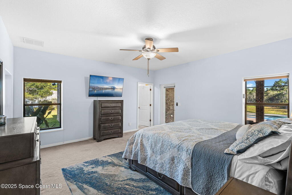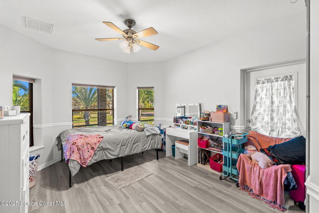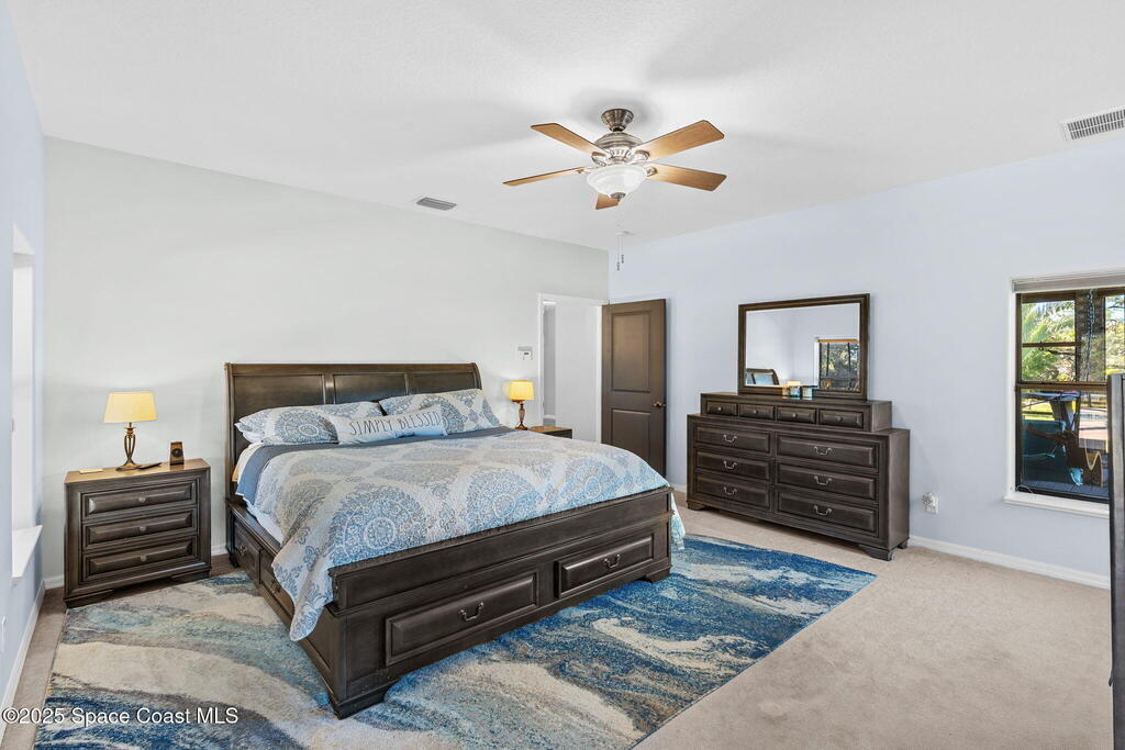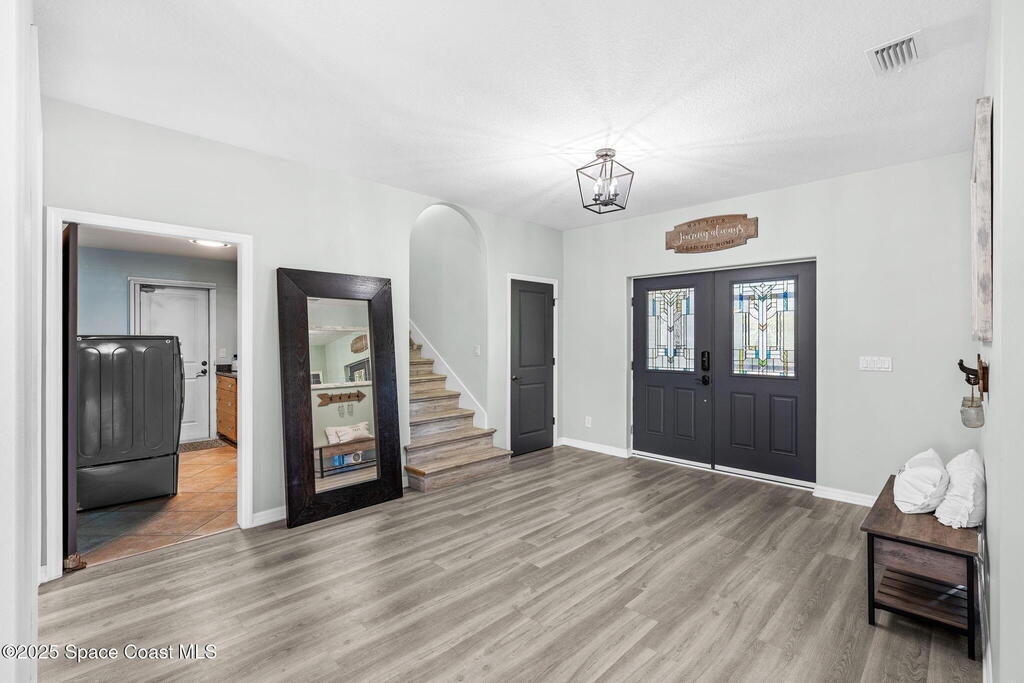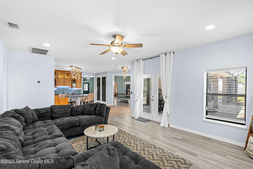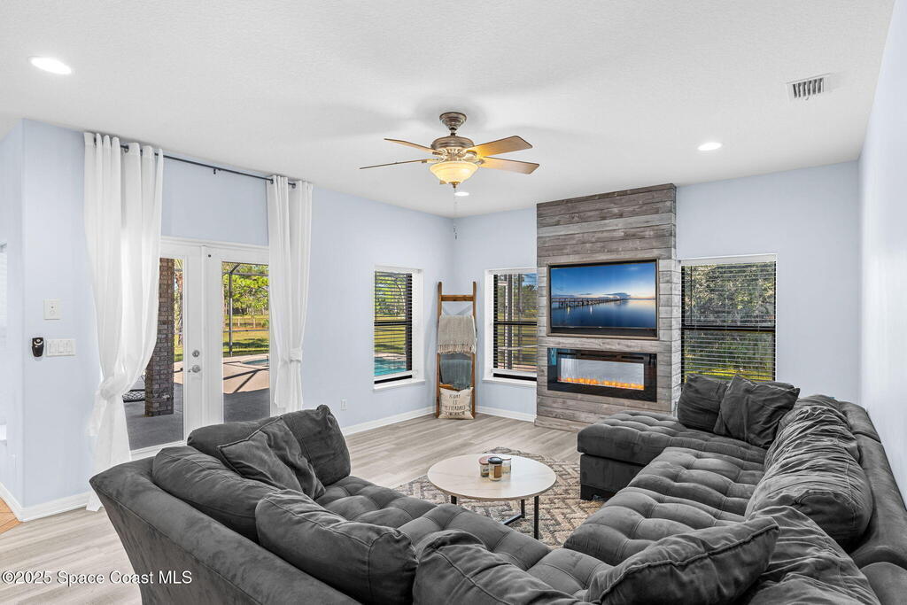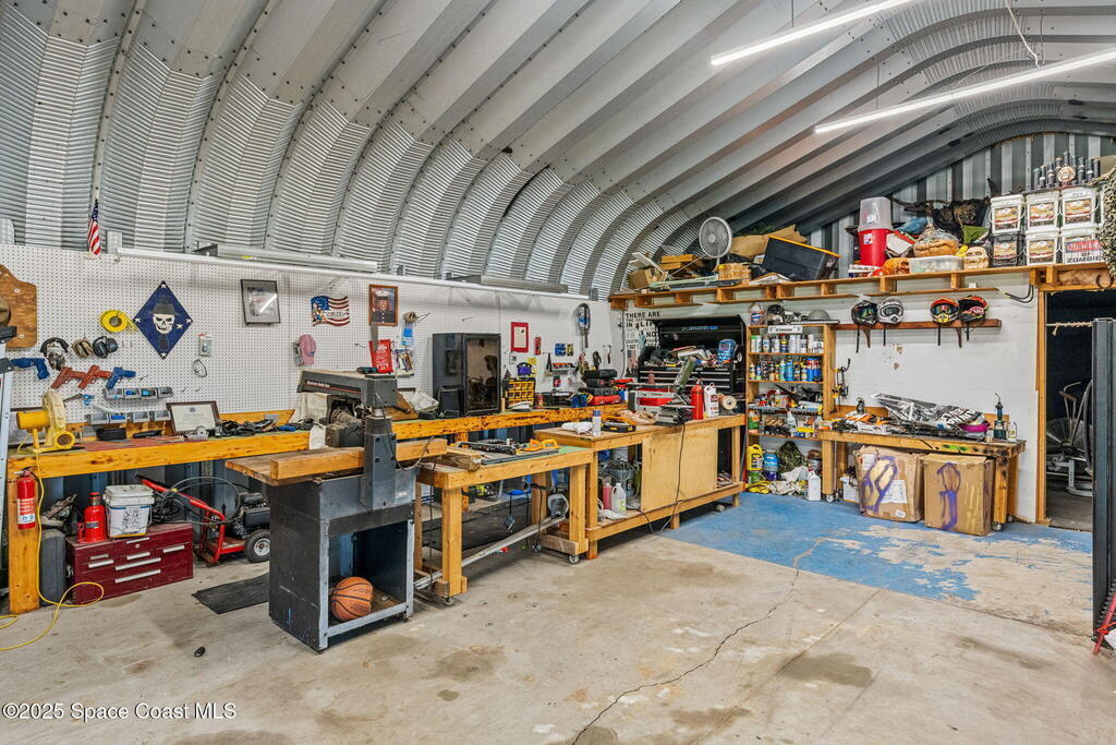 Private 2.5-Acre Estate in Grant-Valkaria! This charming 4-bed, 3-bath home offers the perfect blend of privacy, space, and quality. Built with reinforced concrete and featuring a new metal roof and hurricane shutters, this home is built to last. At its heart is a stunning kitchen with Viking appliances, custom wood cabinetry, granite counters, and a central island that opens to the living area. The spacious primary suite includes dual walk-in closets, double vanities, a soaking tub, and a glass-block walk-in shower. Upstairs, a private guest suite features a balcony and full bath. Enjoy the screened saltwater pool and oversized covered porch, perfect for entertaining or relaxing in total privacy. The 1,160 sq. ft. metal outbuilding with roll-up door is ideal for a workshop, gym, or RV/boat storage. An upgraded hydrogen water system, dedicated office with scenic views, charming screened front porch, and attached 2-car garage complete this exceptional property!