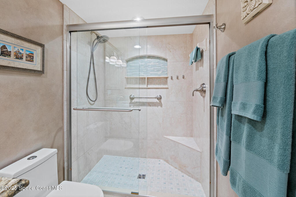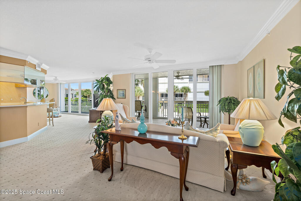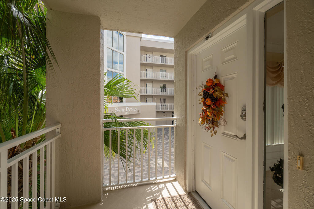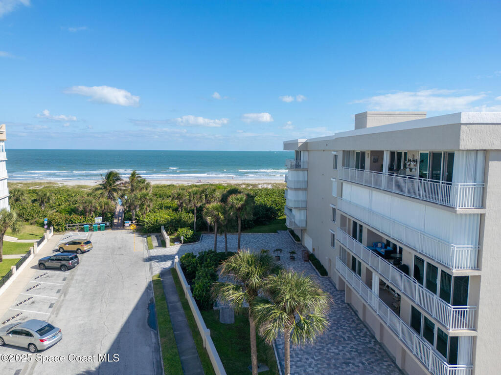 Oceanfront Community Northeast Ocean Views from Balcony Private Beach Access Heated Community Pool Underground Garage with Storage. This End-Unit 3 Bed / 2 Bath condo in Sand Dunes Oceanfront offers Atlantic Ocean views from the spacious balcony and direct private beach access just 1 minute away! Carpet extends throughout the main living areas and bedrooms for comfort. The kitchen features a breakfast bar, newer appliance, tile floors and generous counter space. The primary suite opens to a balcony through sliders, the en-suite bath includes granite counters, vanity area, and tiled walk-in shower. A guest bath offers a tiled tub/shower combo. A third bedroom includes built-ins ideal for a home office. In-unit laundry with sink and storage adds convenience. One-month rental minimum allows flexible use. Close to Port Canaveral (~ 2 mi), Cocoa Beach Pier (~ 2.5 mi), and Kennedy Space Center (~ 12 mi). Virtual walkthrough and video tour available!