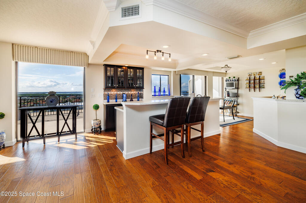 Experience luxury coastal living in this rare, renovated penthouse at the iconic 2100 Tower in world-famous Cocoa Beach. This spacious 3-bedroom, 2.5-bath residence offers 2,543 sq. ft. of refined comfort with sweeping ocean and river views from every room. Enjoy breathtaking sunsets and rocket launches from the wraparound balcony. Upgrades include stainless steel appliances, custom cabinetry, title, and two new HVAC units. The secured building offers resort-style amenities--private beach access, heated pool, fitness center, tennis and pickleball courts, clubhouse, and grilling area. Perfectly located next to Sidney Fischer Park and across the street from Publix, shops, and dining, this residence blends elegance with convenience. Less than an hour from Orlando Airport, this penthouse captures the best of Cocoa Beach living--sun, surf, and sophistication.