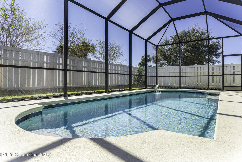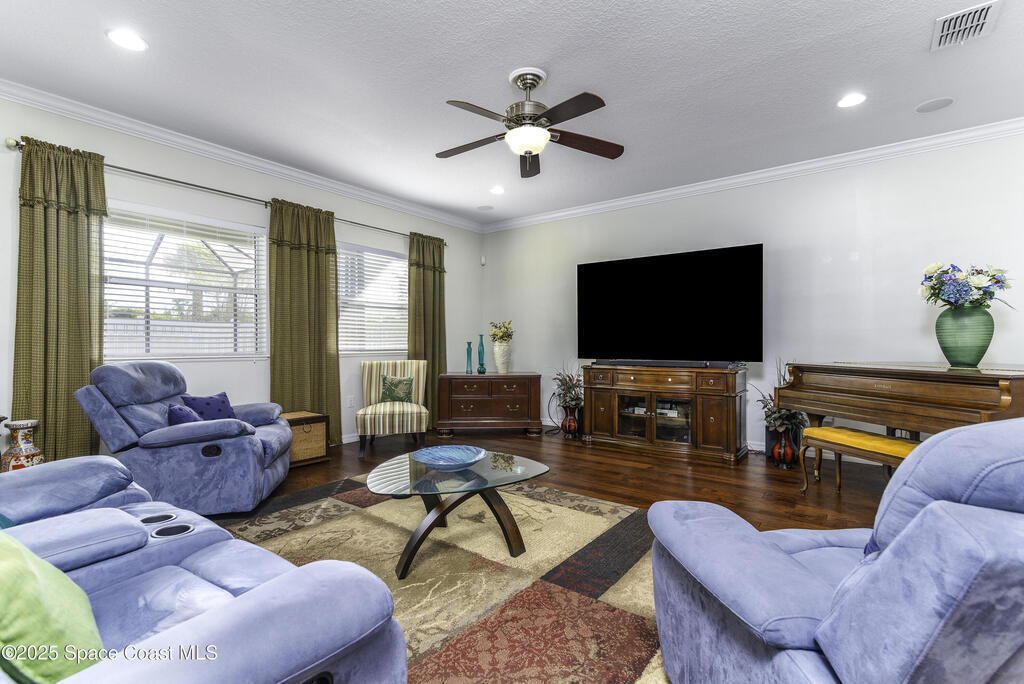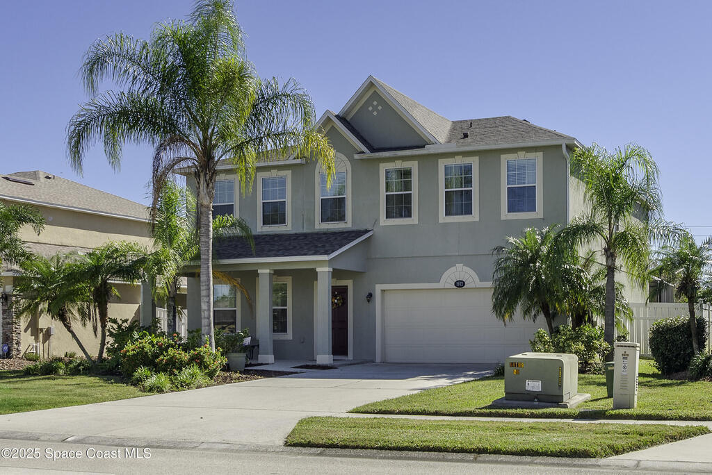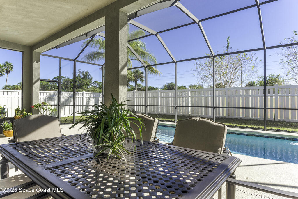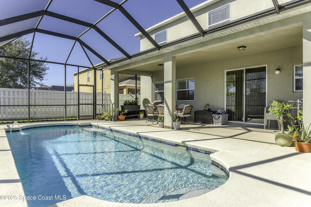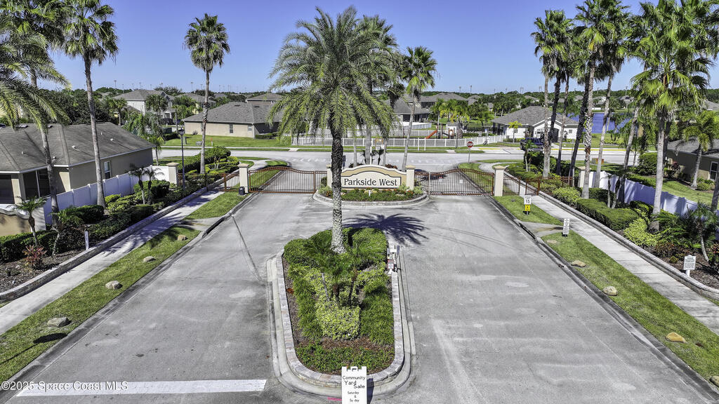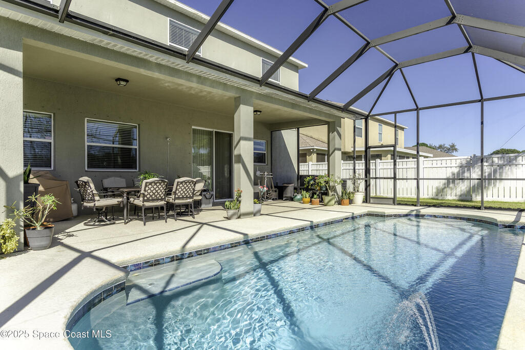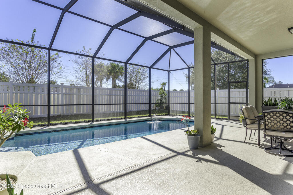 Roomy, refined and ready to impress - beautifully maintained 4 Bedroom, 3.5 Bath, 3,420 sqft home in gated Parkside West in Palm Bay's thriving NW corridor. Recent updates include a newer roof, A/C systems, pool pump, water heater and security system for peace of mind. Inside, enjoy hand-scraped hardwood floors, crown molding & a spacious layout designed for entertaining. The island kitchen has real wood cabinets, granite countertops and two pantries. An impressive 28' x 13' primary suite provides flexible space for your own serene escape with a cozy reading nook or quiet home office, plus a spa-like bath. A second large ensuite adapts beautifully to your needs, ideal for multigenerational living, an entertainment room, or a guest retreat. A durable PVC fence encloses the backyard, creating a private oasis to unwind on the screened patio or enjoy a swim in the saltwater pool. With sidewalks for safe strolling, a neighborhood playground, and nearby access to shopping, dining & the 200-