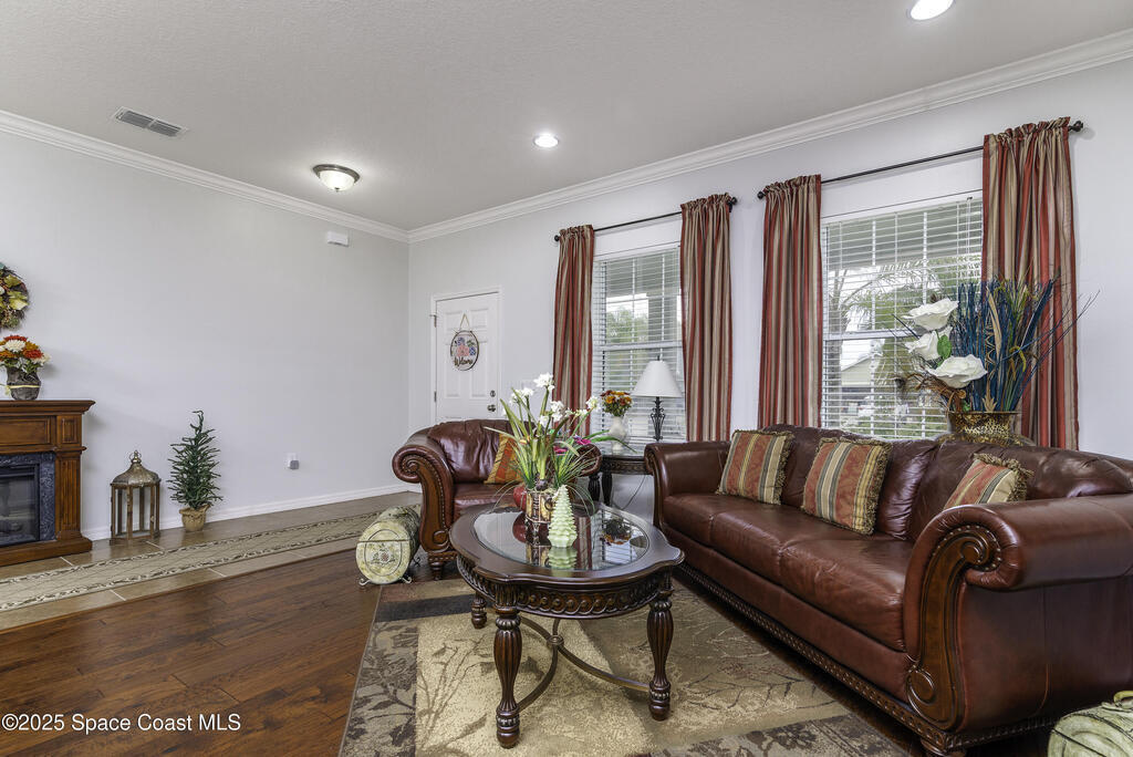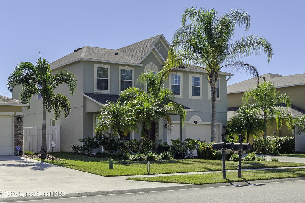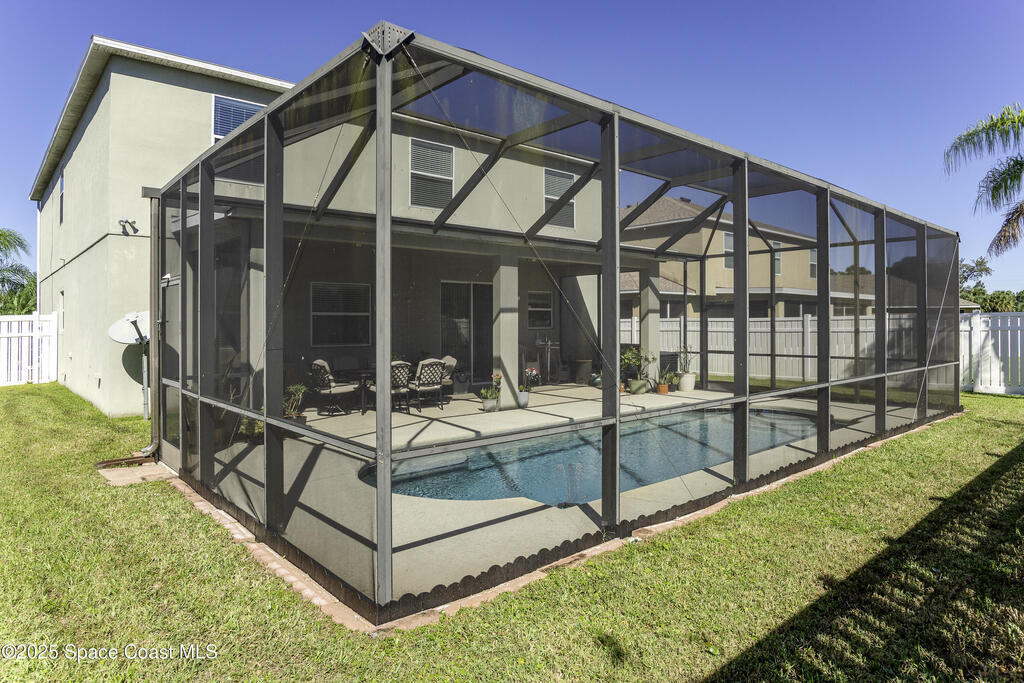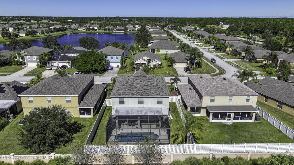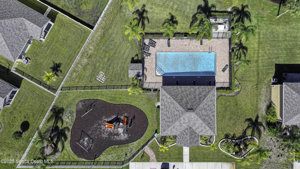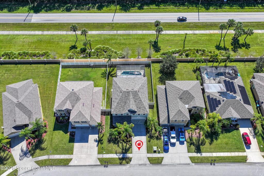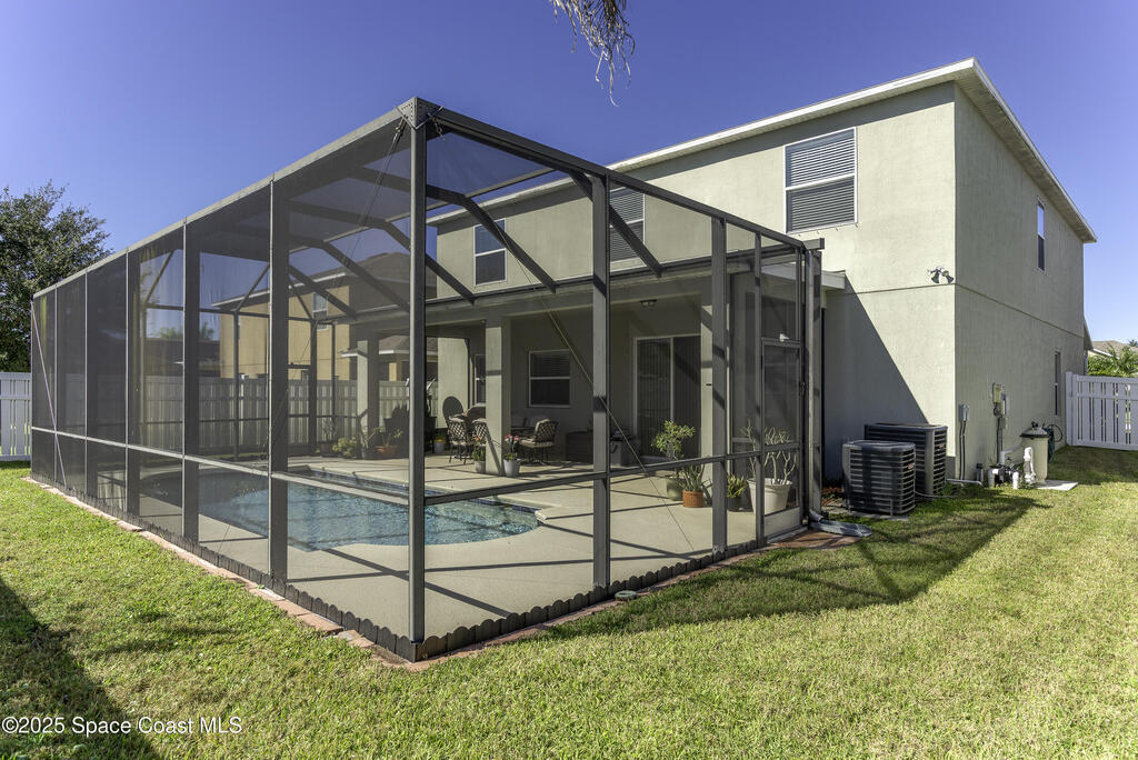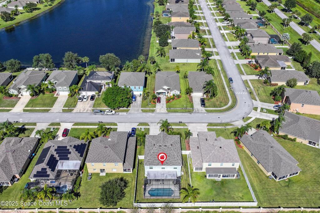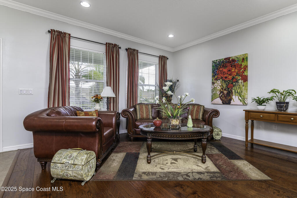 Roomy, refined and ready to impress - beautifully maintained 4 Bedroom, 3.5 Bath, 3,420 sqft home in gated Parkside West in Palm Bay's thriving NW corridor. Recent updates include a newer roof, A/C systems, pool pump, water heater and security system for peace of mind. Inside, enjoy hand-scraped hardwood floors, crown molding & a spacious layout designed for entertaining. The island kitchen has real wood cabinets, granite countertops and two pantries. An impressive 28' x 13' primary suite provides flexible space for your own serene escape with a cozy reading nook or quiet home office, plus a spa-like bath. A second large ensuite adapts beautifully to your needs, ideal for multigenerational living, an entertainment room, or a guest retreat. A durable PVC fence encloses the backyard, creating a private oasis to unwind on the screened patio or enjoy a swim in the saltwater pool. With sidewalks for safe strolling, a neighborhood playground, and nearby access to shopping, dining & the 200-