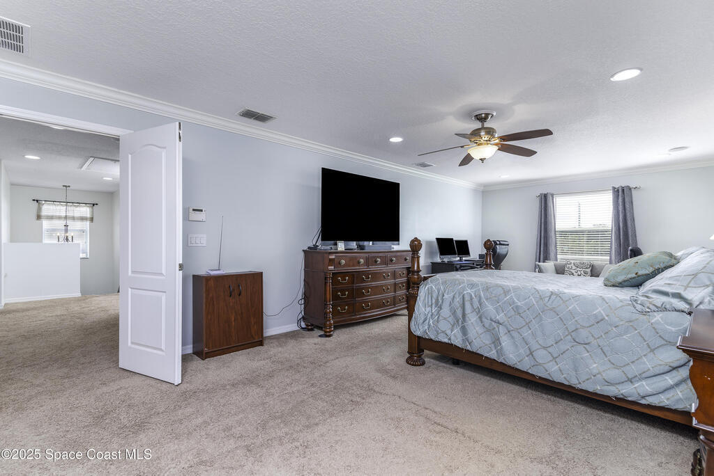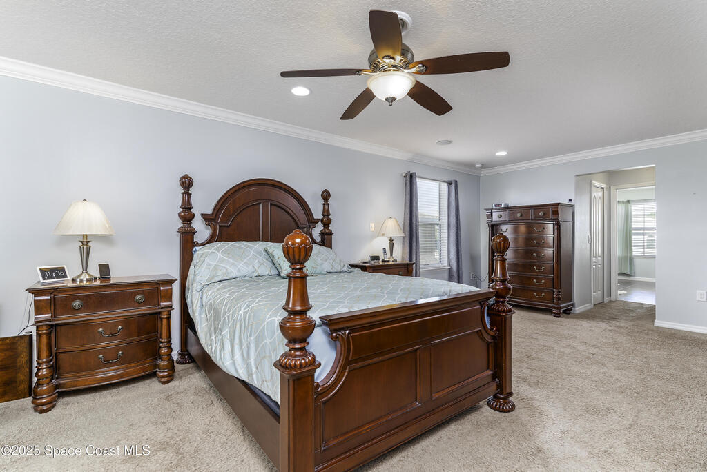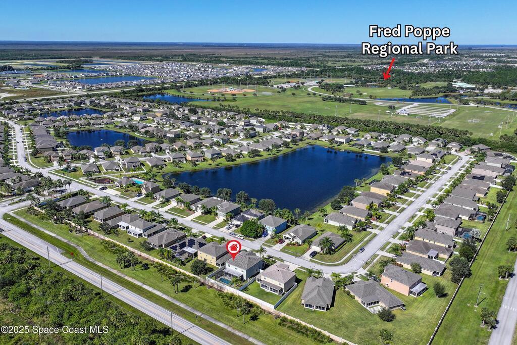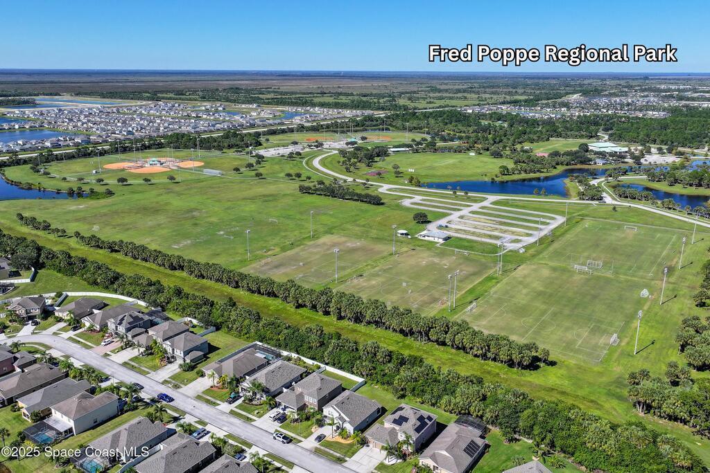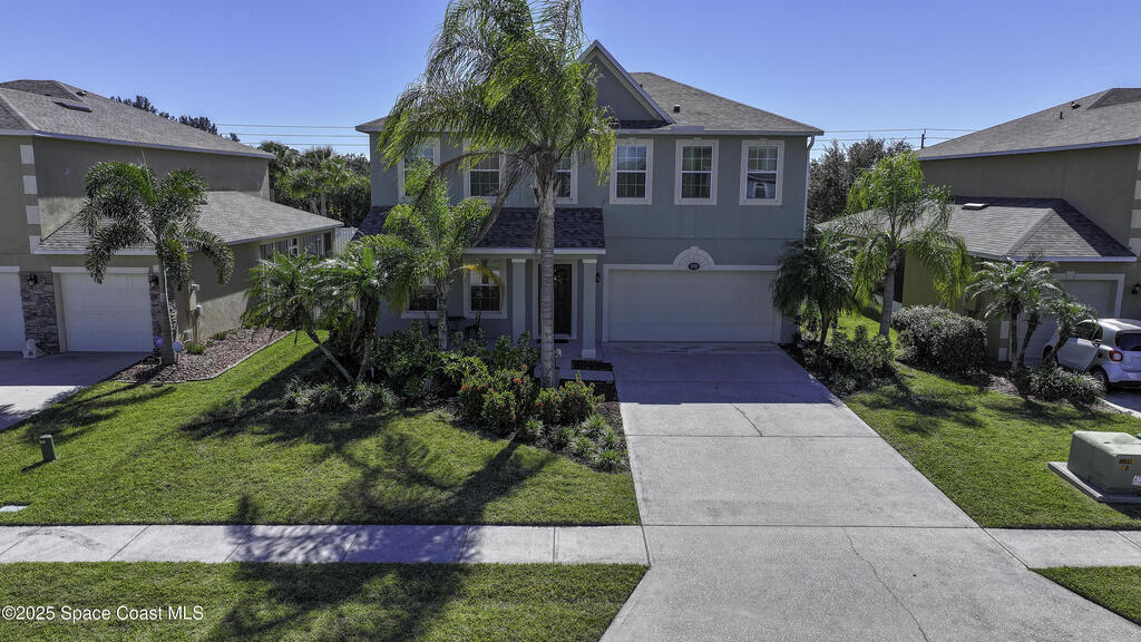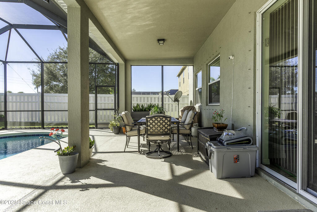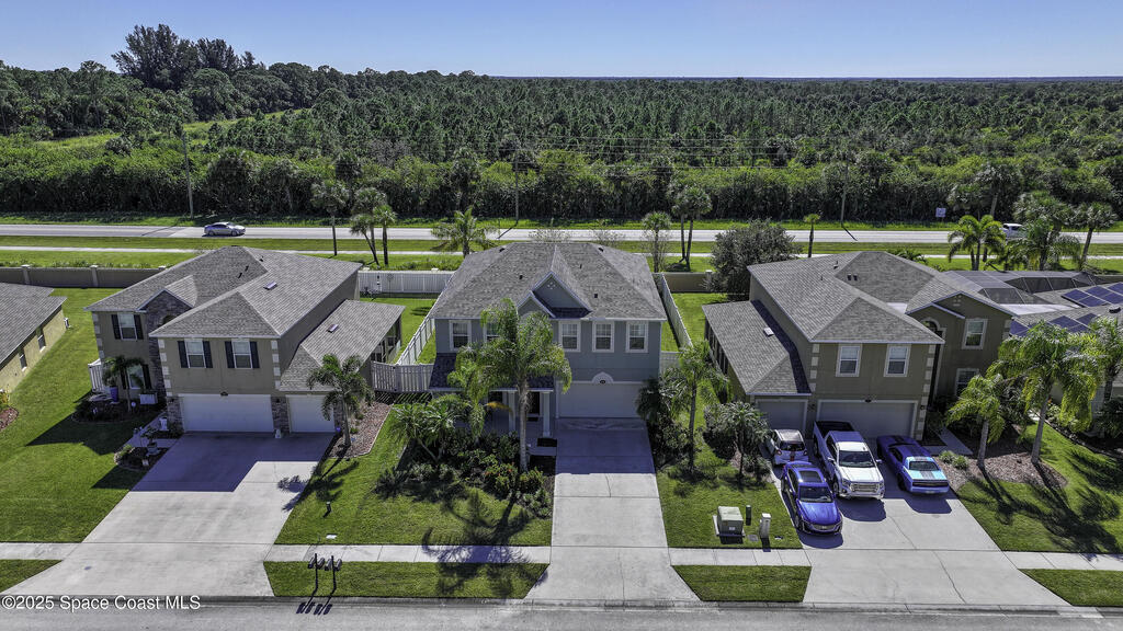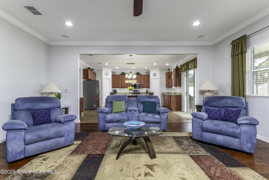 Roomy, refined and ready to impress - beautifully maintained 4 Bedroom, 3.5 Bath, 3,420 sqft home in gated Parkside West in Palm Bay's thriving NW corridor. Recent updates include a newer roof, A/C systems, pool pump, water heater and security system for peace of mind. Inside, enjoy hand-scraped hardwood floors, crown molding & a spacious layout designed for entertaining. The island kitchen has real wood cabinets, granite countertops and two pantries. An impressive 28' x 13' primary suite provides flexible space for your own serene escape with a cozy reading nook or quiet home office, plus a spa-like bath. A second large ensuite adapts beautifully to your needs, ideal for multigenerational living, an entertainment room, or a guest retreat. A durable PVC fence encloses the backyard, creating a private oasis to unwind on the screened patio or enjoy a swim in the saltwater pool. With sidewalks for safe strolling, a neighborhood playground, and nearby access to shopping, dining & the 200-