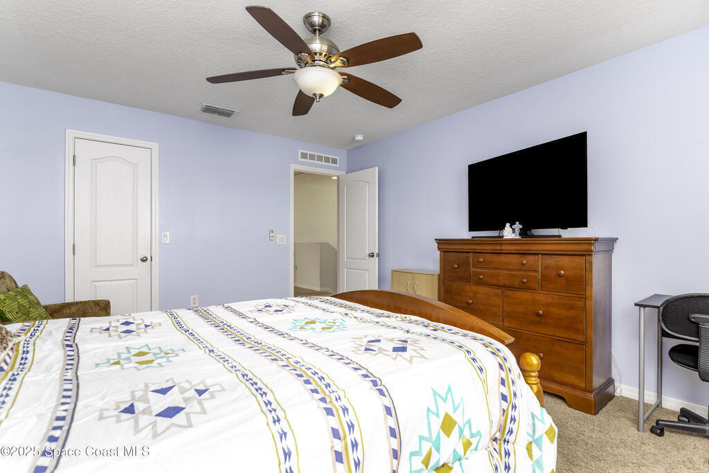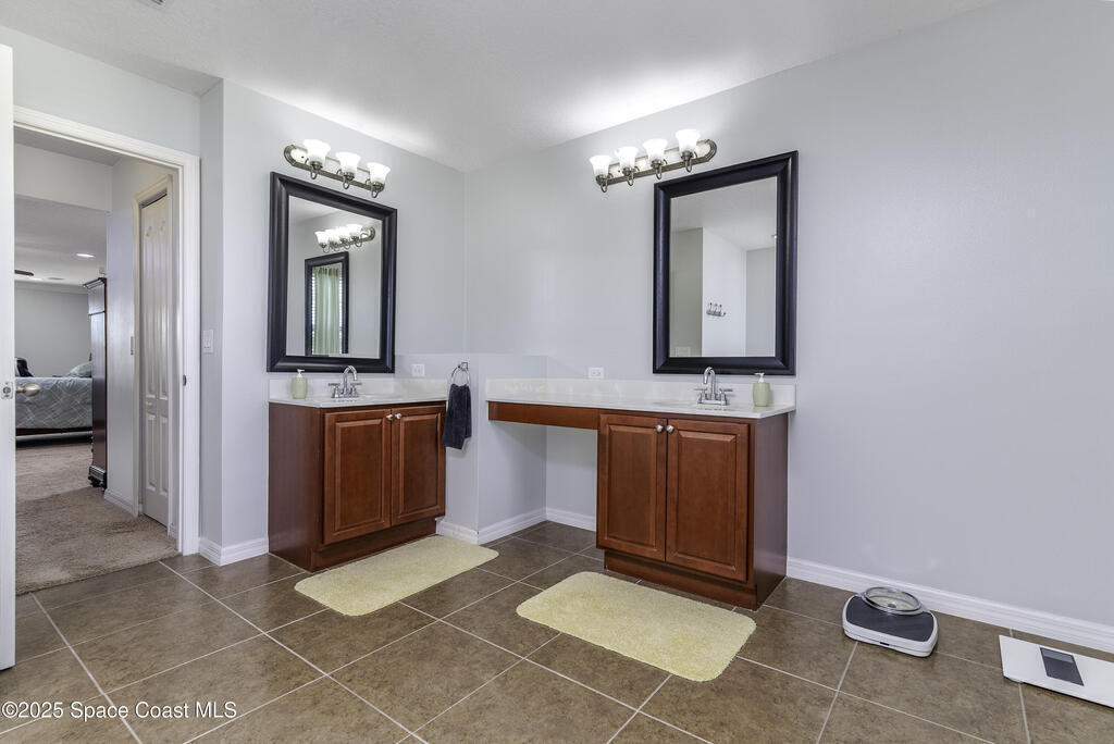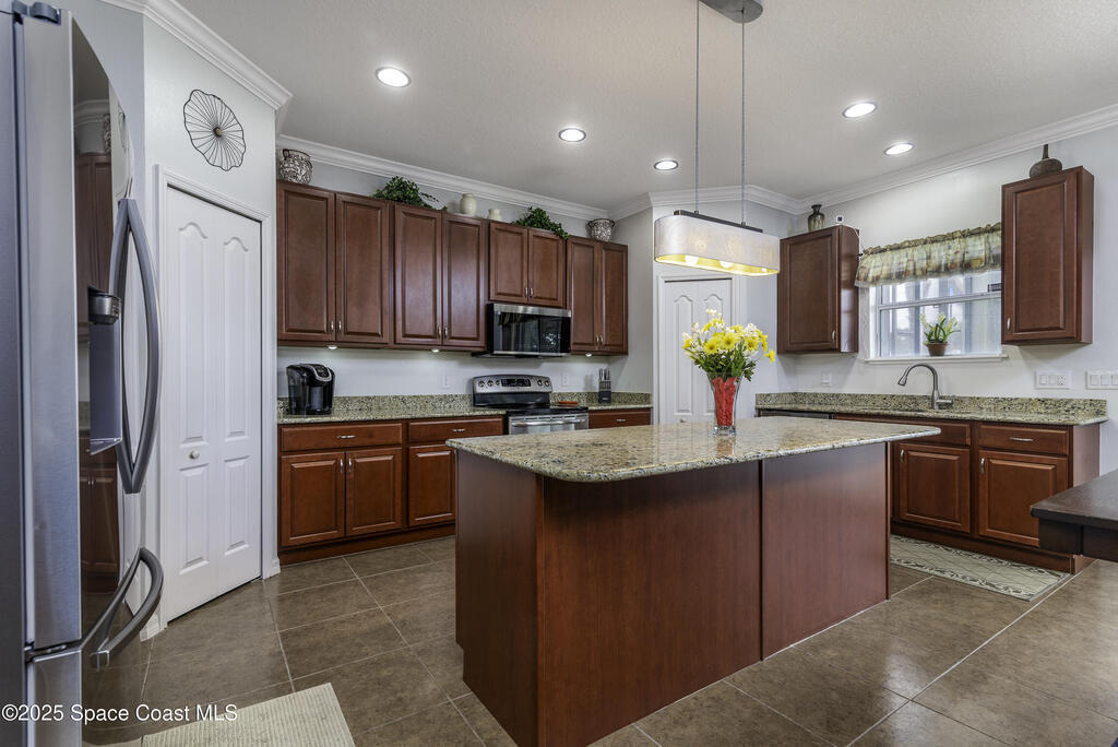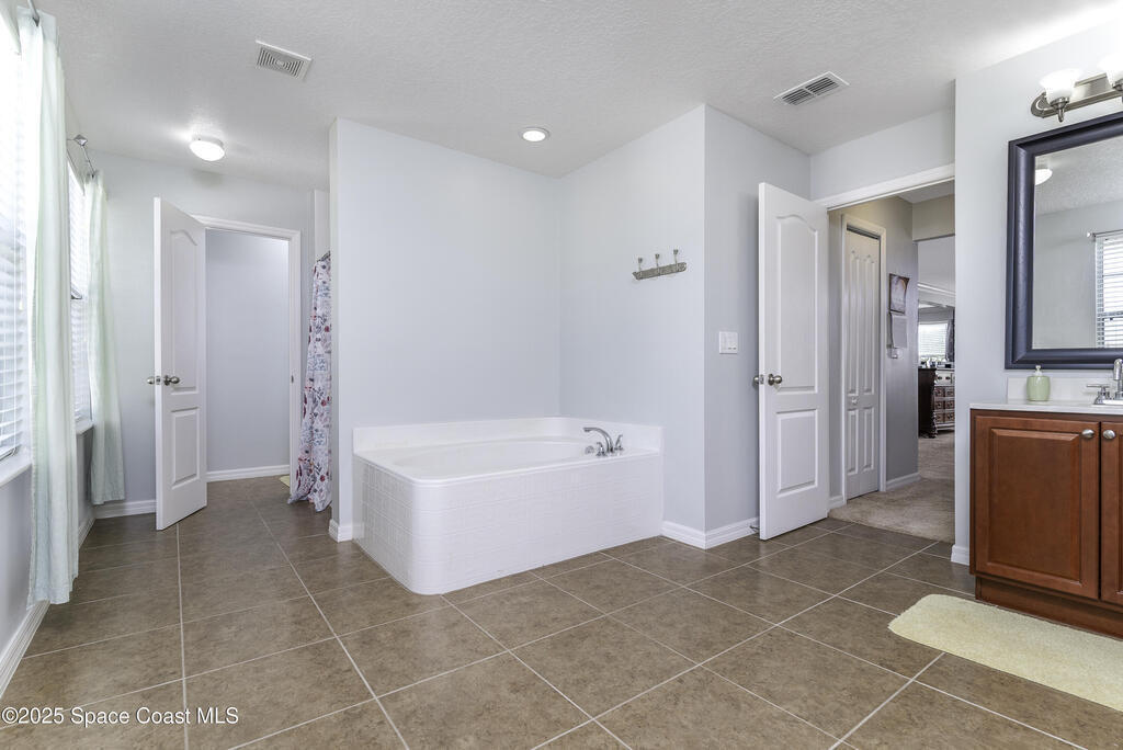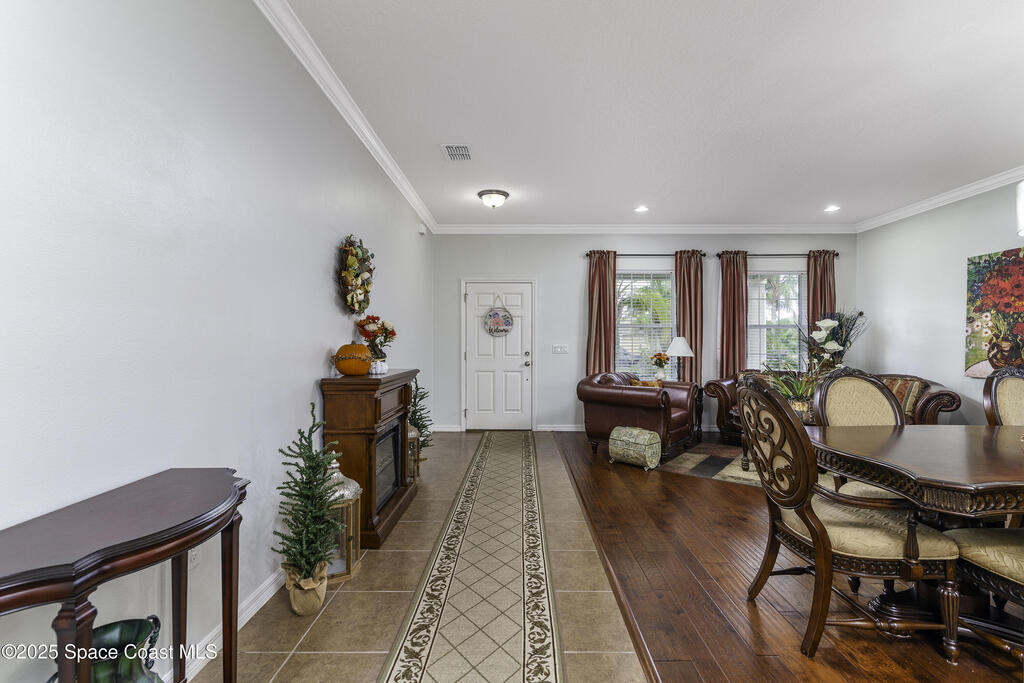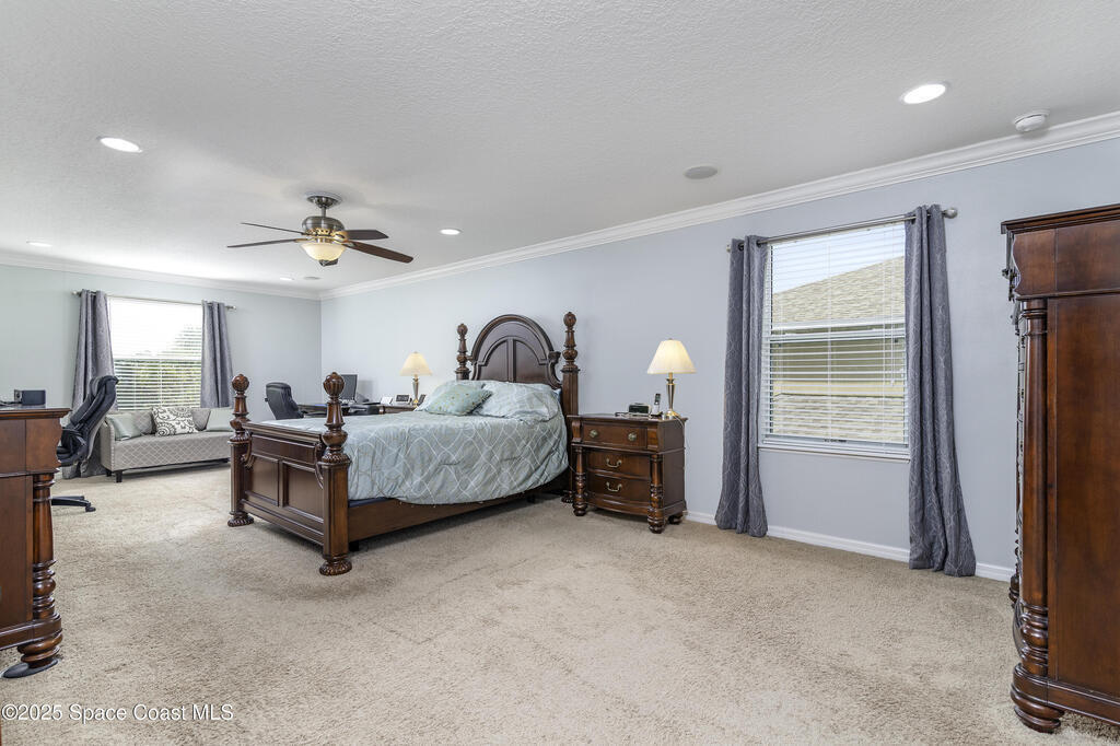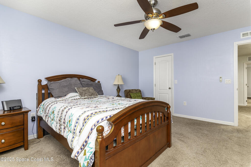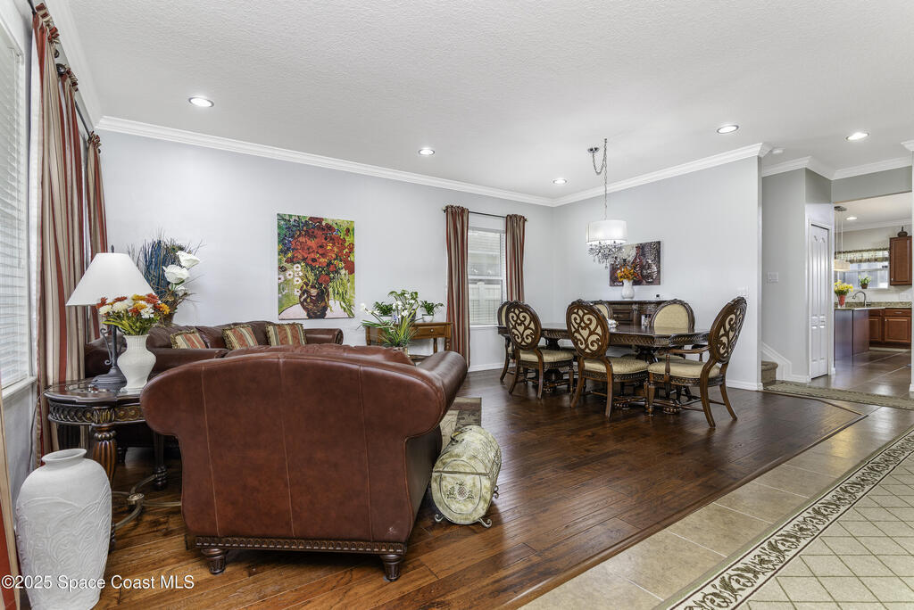 Roomy, refined and ready to impress - beautifully maintained 4 Bedroom, 3.5 Bath, 3,420 sqft home in gated Parkside West in Palm Bay's thriving NW corridor. Recent updates include a newer roof, A/C systems, pool pump, water heater and security system for peace of mind. Inside, enjoy hand-scraped hardwood floors, crown molding & a spacious layout designed for entertaining. The island kitchen has real wood cabinets, granite countertops and two pantries. An impressive 28' x 13' primary suite provides flexible space for your own serene escape with a cozy reading nook or quiet home office, plus a spa-like bath. A second large ensuite adapts beautifully to your needs, ideal for multigenerational living, an entertainment room, or a guest retreat. A durable PVC fence encloses the backyard, creating a private oasis to unwind on the screened patio or enjoy a swim in the saltwater pool. With sidewalks for safe strolling, a neighborhood playground, and nearby access to shopping, dining & the 200-