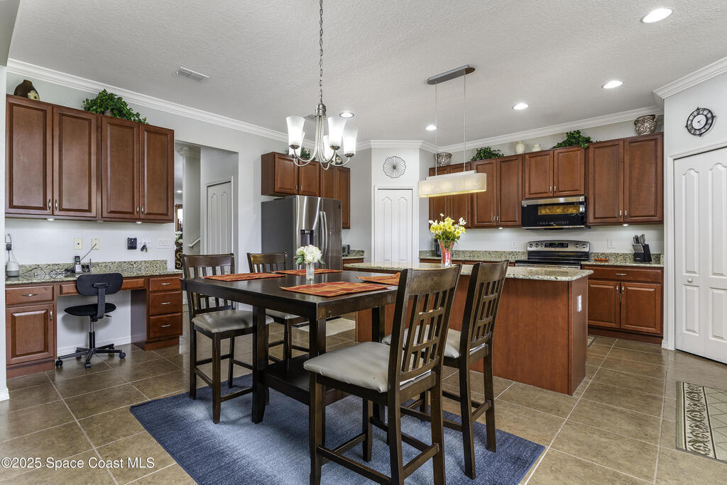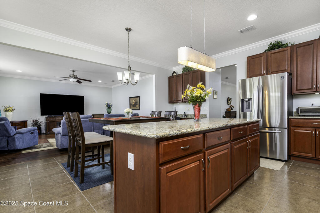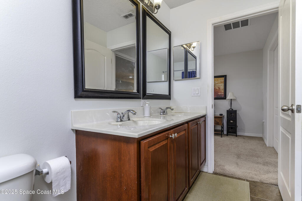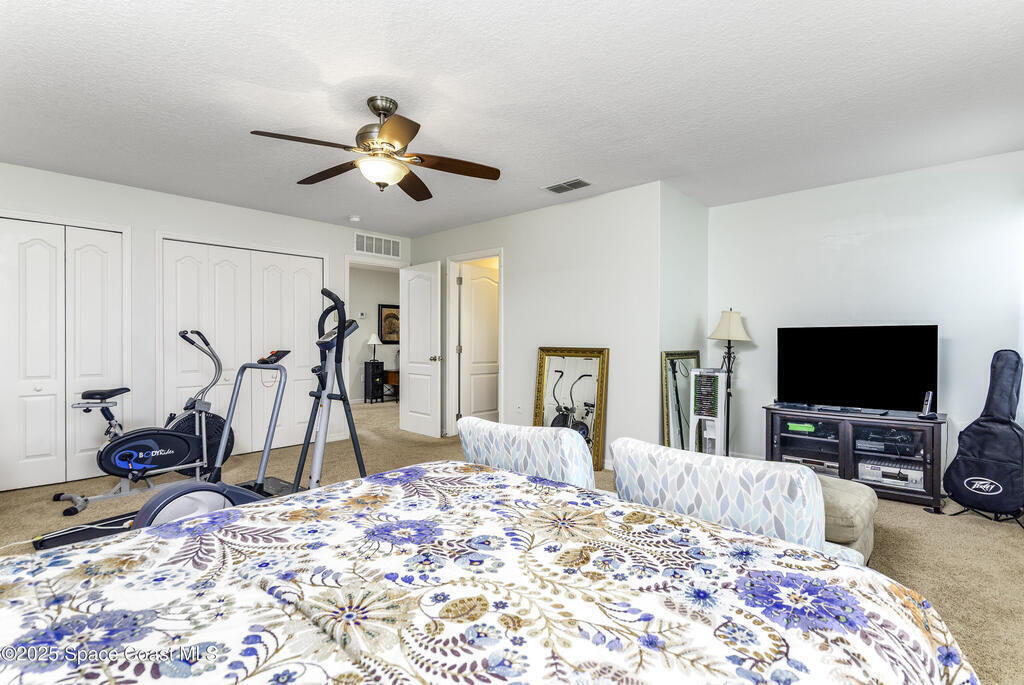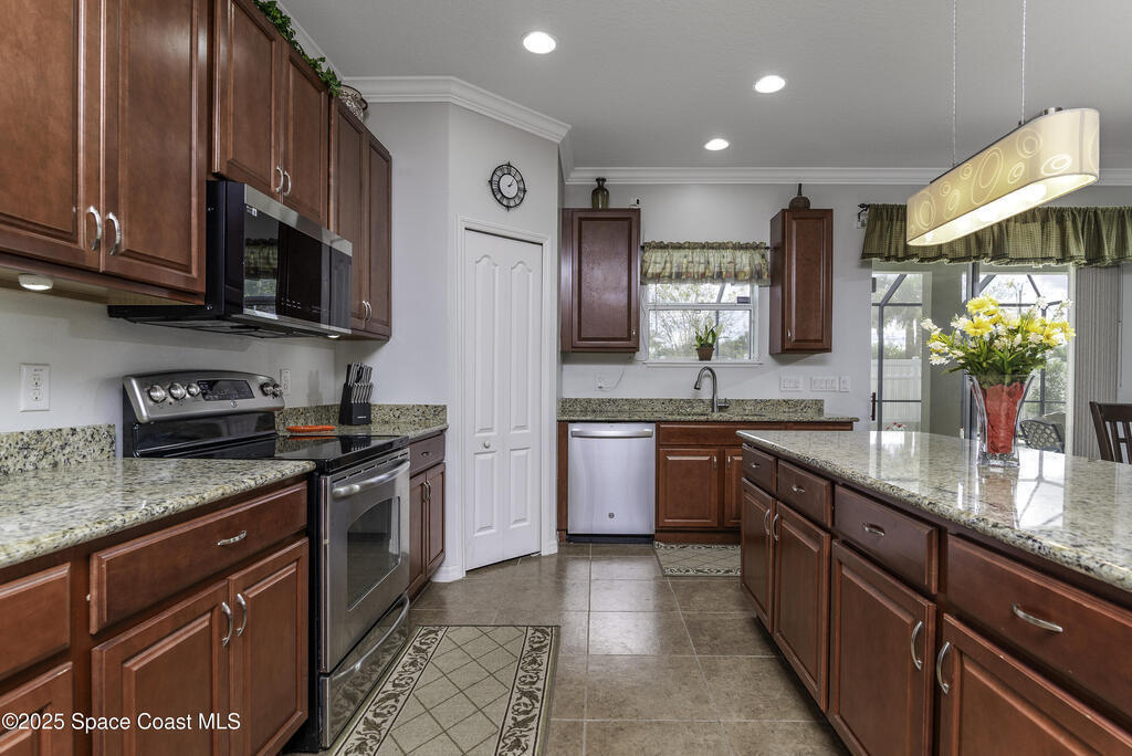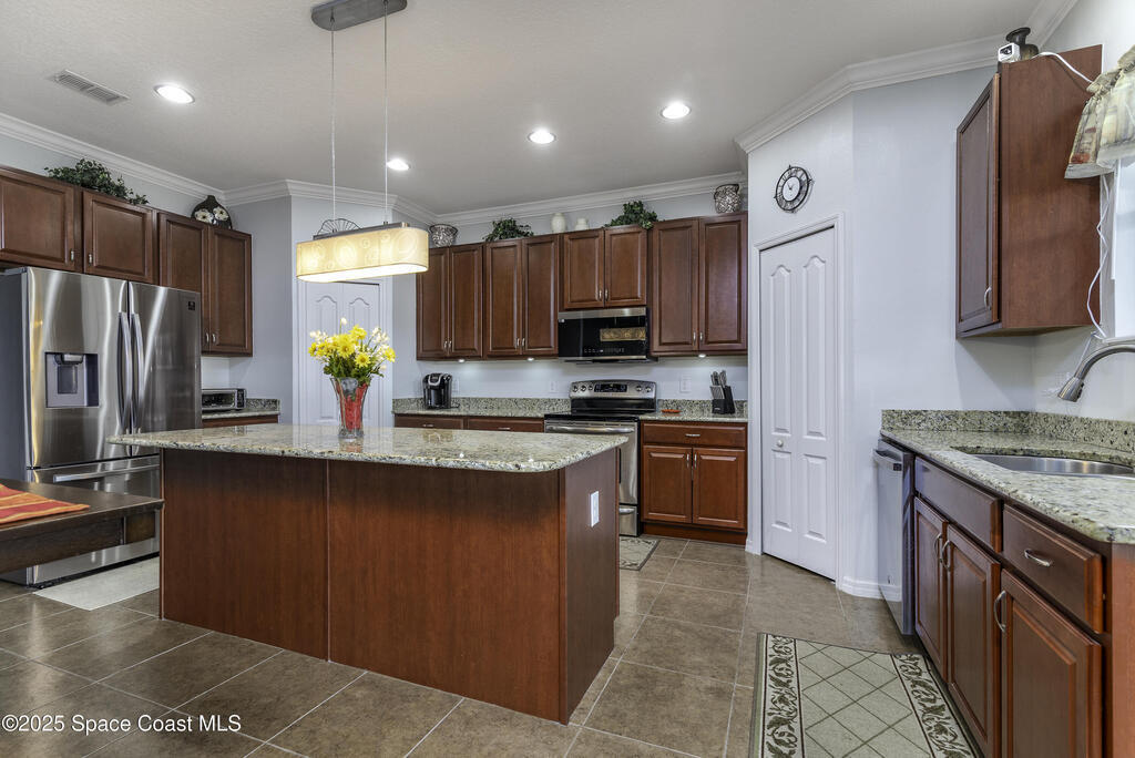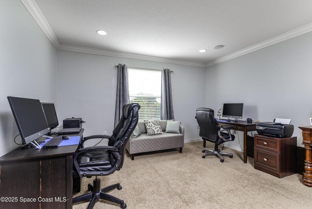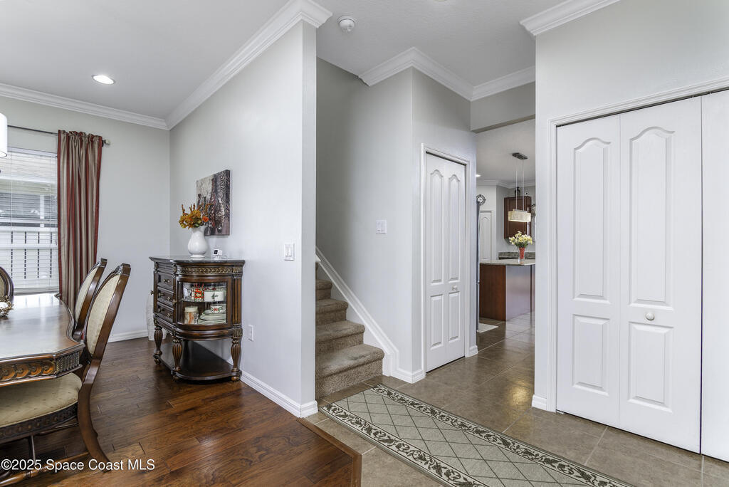 Roomy, refined and ready to impress - beautifully maintained 4 Bedroom, 3.5 Bath, 3,420 sqft home in gated Parkside West in Palm Bay's thriving NW corridor. Recent updates include a newer roof, A/C systems, pool pump, water heater and security system for peace of mind. Inside, enjoy hand-scraped hardwood floors, crown molding & a spacious layout designed for entertaining. The island kitchen has real wood cabinets, granite countertops and two pantries. An impressive 28' x 13' primary suite provides flexible space for your own serene escape with a cozy reading nook or quiet home office, plus a spa-like bath. A second large ensuite adapts beautifully to your needs, ideal for multigenerational living, an entertainment room, or a guest retreat. A durable PVC fence encloses the backyard, creating a private oasis to unwind on the screened patio or enjoy a swim in the saltwater pool. With sidewalks for safe strolling, a neighborhood playground, and nearby access to shopping, dining & the 200-