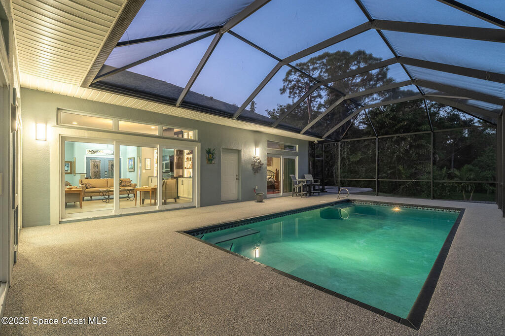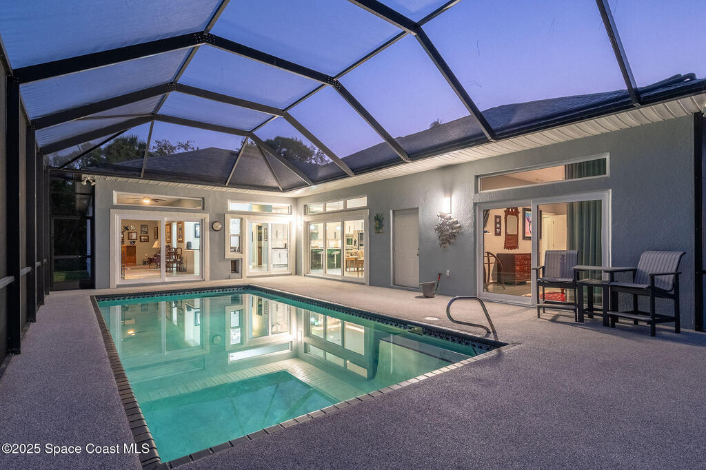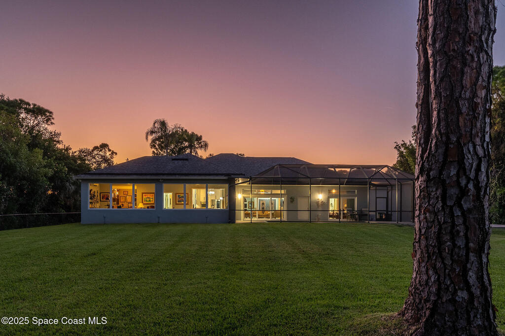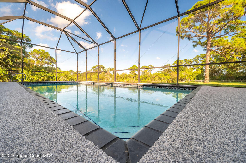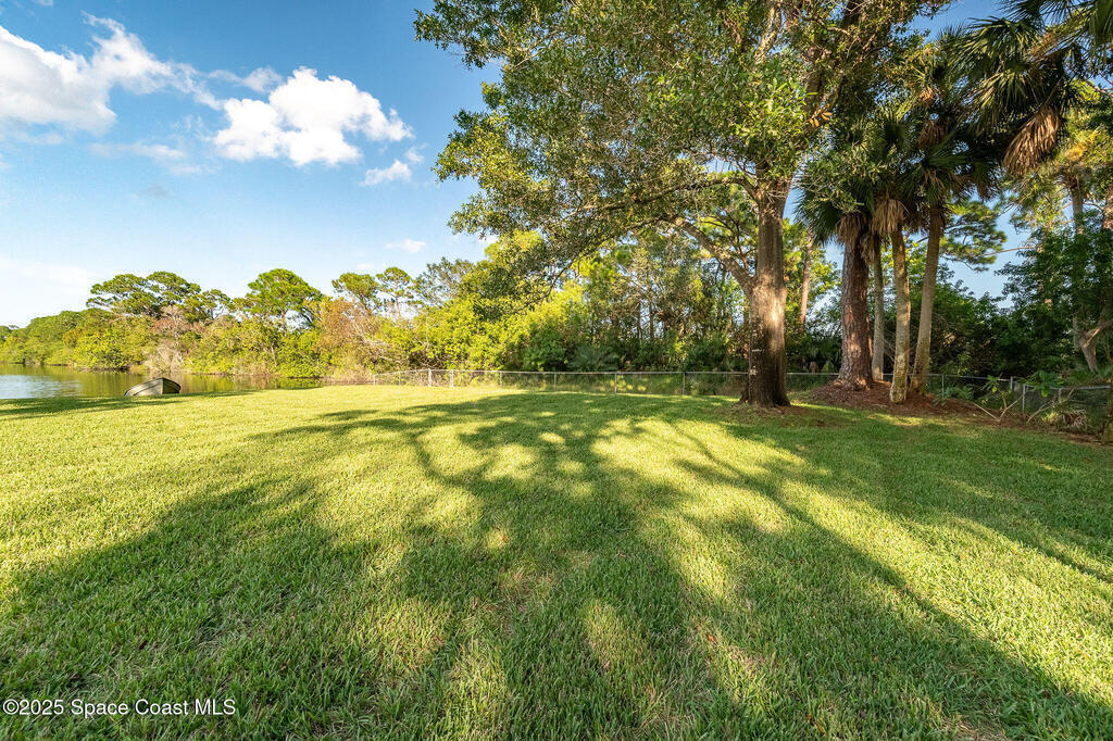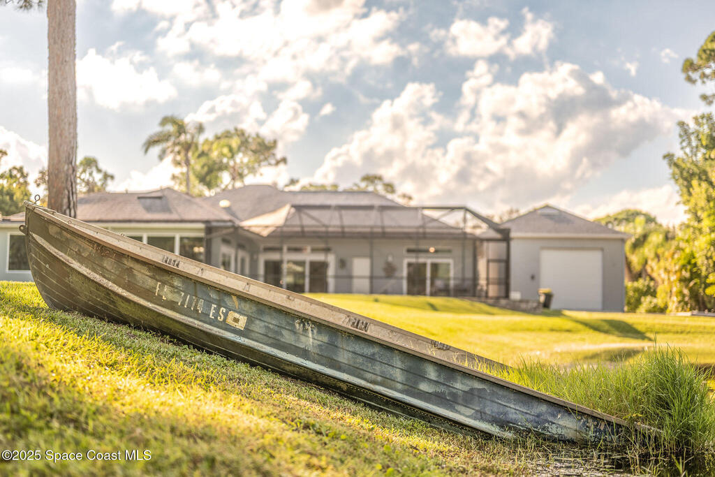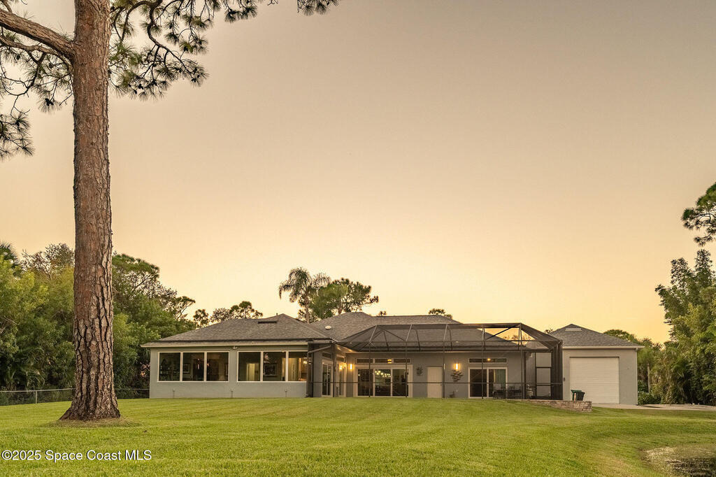 Discover refined lakefront living on 1.28 acres in The Trails, one of North Merritt Island's most sought-after communities. This 5-bedroom, 3.5-bath residence was fully remodeled in 2017 and offers luxury finishes, modern systems, and exceptional craftsmanship throughout. The interior showcases porcelain tile flooring in main areas, hardwood upstairs, and a chef's kitchen with StarMark soft-close cabinetry, glass-front uppers, under-cabinet lighting, and a full suite of Thermador appliances including double wall ovens, six-burner gas range, and dishwasher, plus a stainless French-door refrigerator and Sharp microwave drawer. Spa-inspired bathrooms feature frameless zero-threshold showers and granite or quartz counters. Additional highlights include a custom office with built-ins, an enclosed Florida room with mini-split A/C, Ecobee Smart Thermostat, tankless propane water heater, and newer Trane HVAC. The property features a 2-car attached garage and a 2022 constructed 2-bay RV