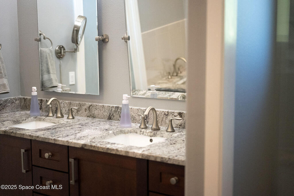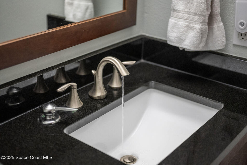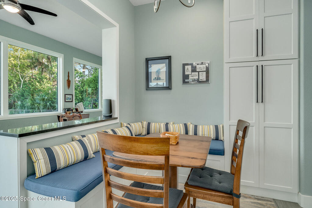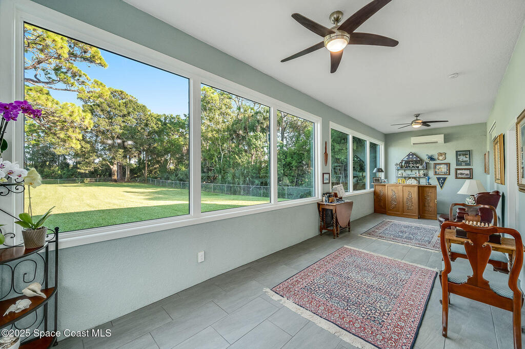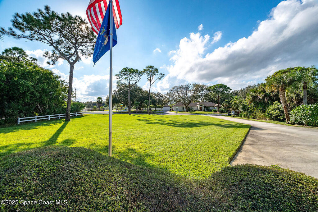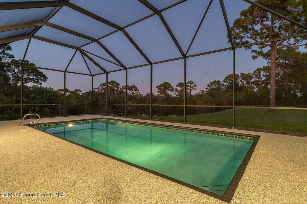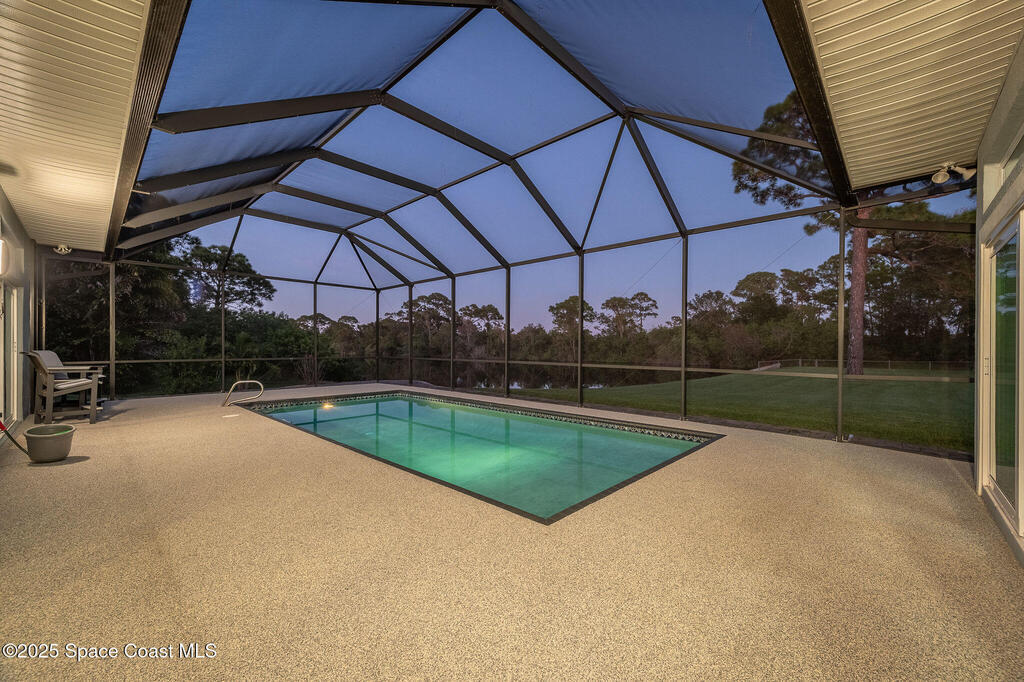Discover refined lakefront living on 1.28 acres in The Trails, one of North Merritt Island's most sought-after communities. This 5-bedroom, 3.5-bath residence was fully remodeled in 2017 and offers luxury finishes, modern systems, and exceptional craftsmanship throughout. The interior showcases porcelain tile flooring in main areas, hardwood upstairs, and a chef's kitchen with StarMark soft-close cabinetry, glass-front uppers, under-cabinet lighting, and a full suite of Thermador appliances including double wall ovens, six-burner gas range, and dishwasher, plus a stainless French-door refrigerator and Sharp microwave drawer. Spa-inspired bathrooms feature frameless zero-threshold showers and granite or quartz counters. Additional highlights include a custom office with built-ins, an enclosed Florida room with mini-split A/C, Ecobee Smart Thermostat, tankless propane water heater, and newer Trane HVAC. The property features a 2-car attached garage and a 2022 constructed 2-bay RV