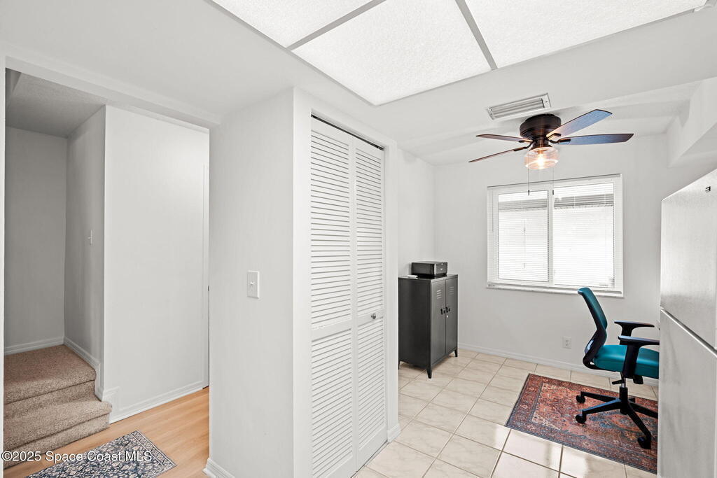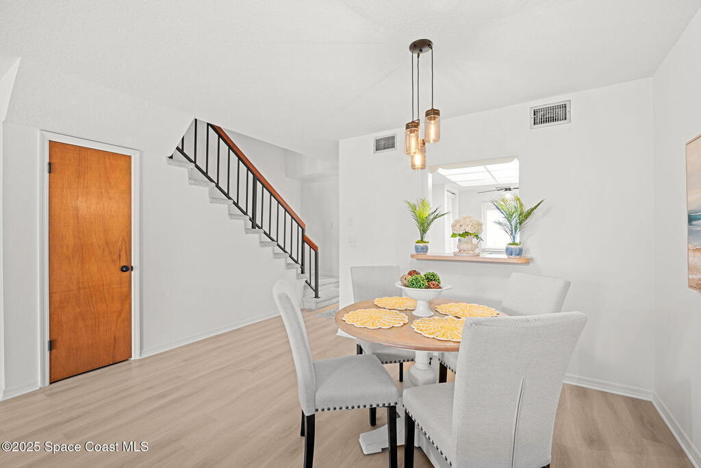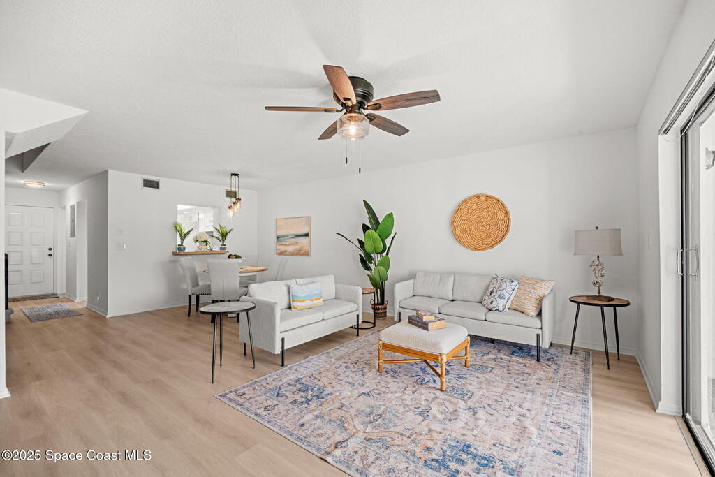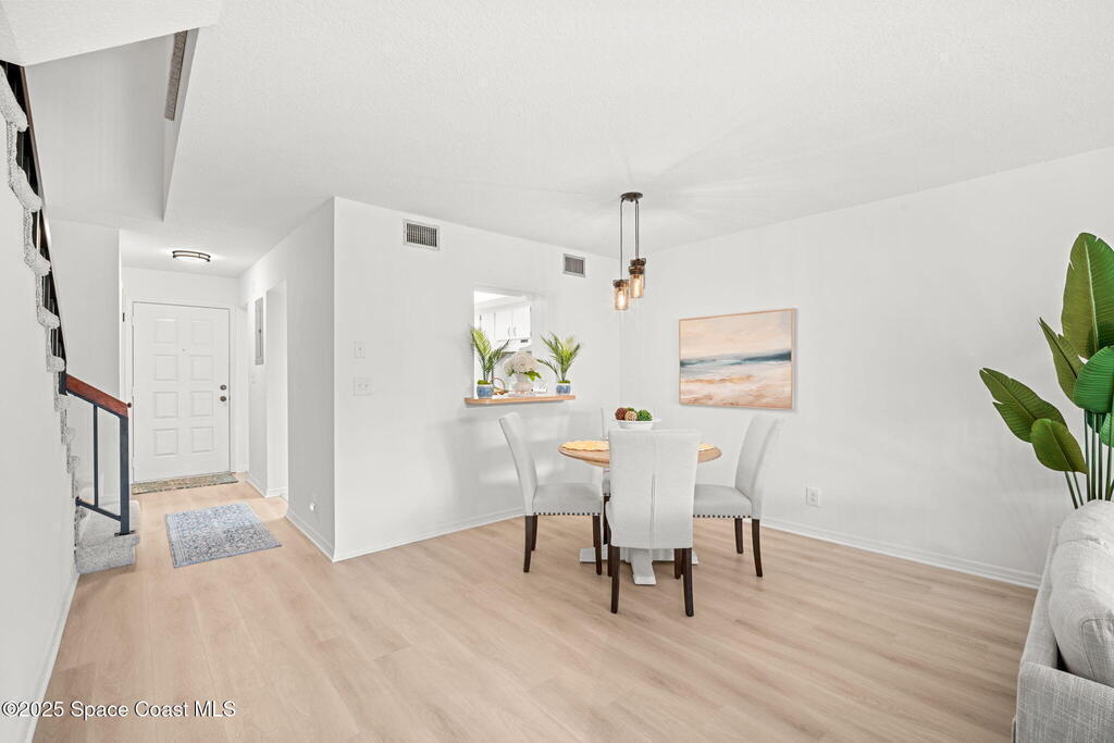 Welcome to easy coastal living in Indian Harbour Beach! Ideally located just one block from the beach, local shops, and restaurants, this beautifully maintained 2-bedroom, 2.5-bath townhouse offers the perfect blend of comfort and convenience. The main living area features LVP flooring throughout, with tile in the kitchen and a bright, open layout ideal for entertaining. Upstairs, you'll find two spacious primary suites, each with its own ensuite bath for added privacy. Enjoy outdoor living on the front porch or screened lanai, and take advantage of the community pool and expansive open green spaces. Complete with a 1-car garage and a low-maintenance lifestyle, this home captures the best of beachside living--relaxed, inviting, and just steps from the sand.