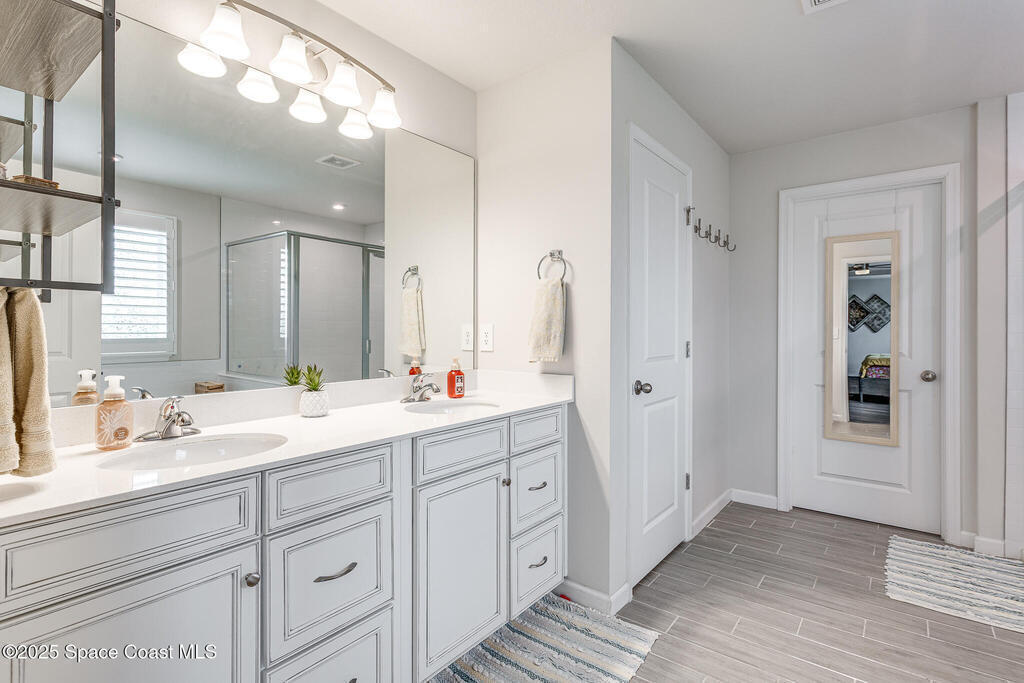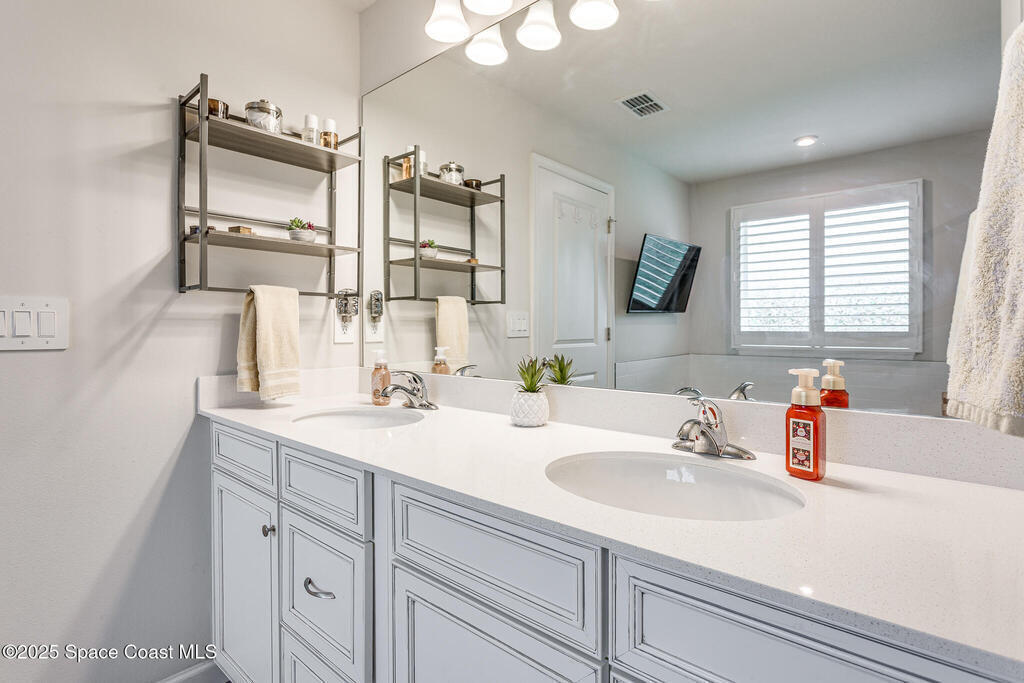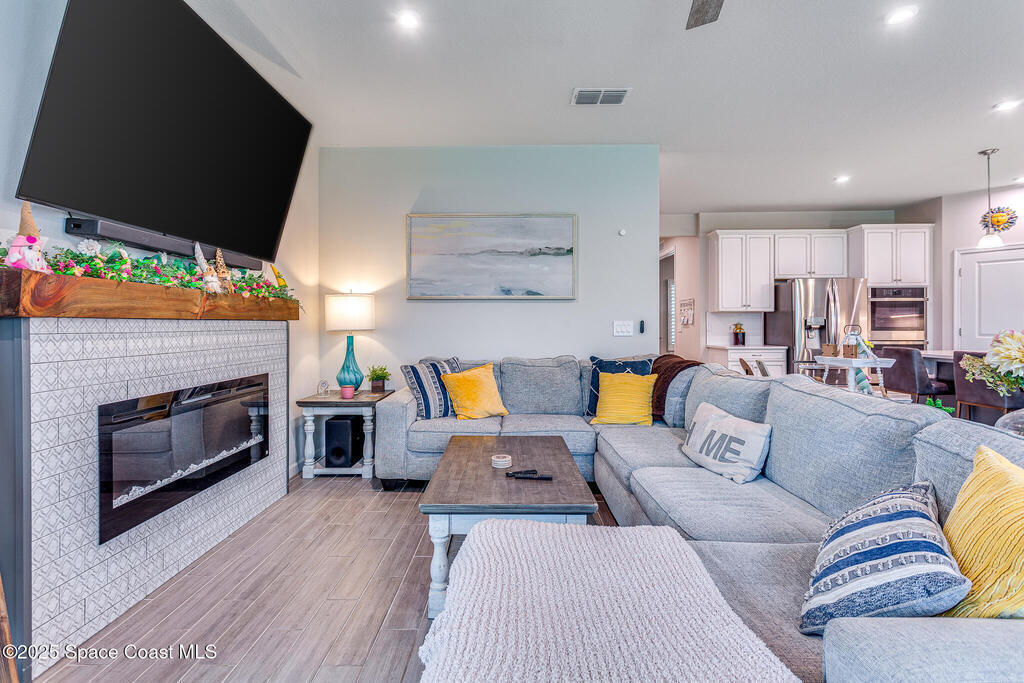 Discover a rare blend of luxury, smart living, and peaceful preserve views--all just minutes from the Indian River! Built in 2022, this elegant two-story home offers a modern open floor plan centered around an oversized quartz island, top-tier smart appliances, and a striking electric color-changing fireplace. Plantation shutters and soft-close cabinetry add timeless quality throughout. A French-door office creates the perfect workspace, while a first-floor guest suite provides ideal privacy for visitors or multi-generational living. Upstairs, unwind in a spacious loft retreat and a stunning primary suite featuring dual shower faucets, a sunken tub, and generous closet space. Enjoy serene outdoor living with a large preserve-backing yard and the convenience of an EV charging station in the garage. Located in a desirable community with a pool, clubhouse, tennis, and pickleball, this home offers comfort, style, and Florida living at its finest!