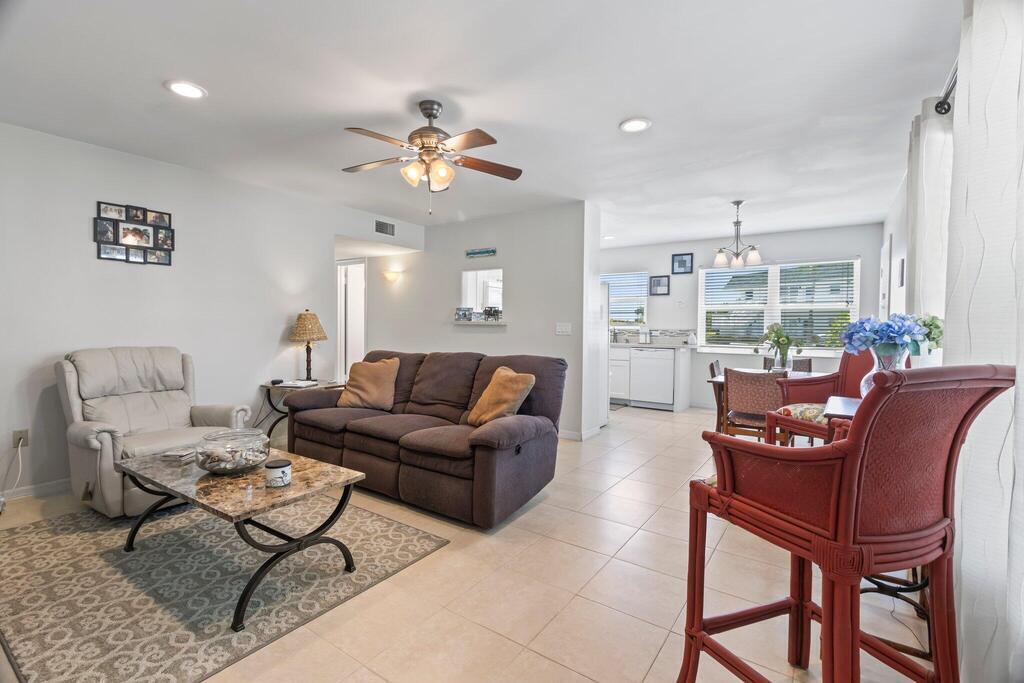 Enjoy water views from every room from this sought-after first floor 2/2 corner unit in desirable 55+ community! Updated kitchen and baths, tile floors throughout, impact windows. Community features pool, clubhouse, shuffleboard, dock for fishing/relaxing. Restaurants and specialty shops just around the corner on Royal Palm Pointe. Only minutes from the bridge and all the island has to offer...restaurants, museum, theater and beaches!
