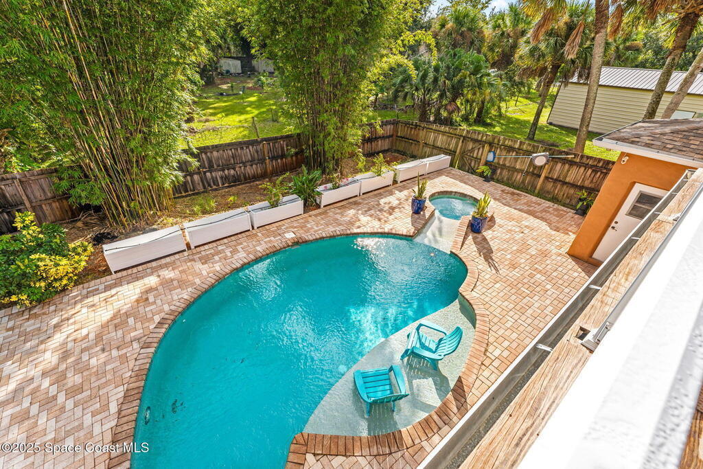 Welcome to your own Cocoa sanctuary-a ONE-ACRE blend of style, space, and pure Florida freedom! This isn't just a home, it's a lifestyle. Featuring 5 bedrooms (including 2 master suites), 3 full baths, and 2 half baths, this custom estate is built to impress. Inside, vaulted ceilings and an open layout with tile and carpet flooring set the tone for effortless living. The entertainer's dream kitchen shines with granite countertops, breakfast bar, wine cooler, ice maker, and bar fridge. Step outside to your private inground pool, framed by a wood fence for total privacy. The 25x35 workshop with 10' ceilings, 100-amp electric, and A/C is the ultimate creative retreat. Next level perks include central vac, smart thermostat, smart doorbell, surround sound, and manual awnings. Watch rockets light up the sky and live minutes from I-95, beaches, and boundless adventure!