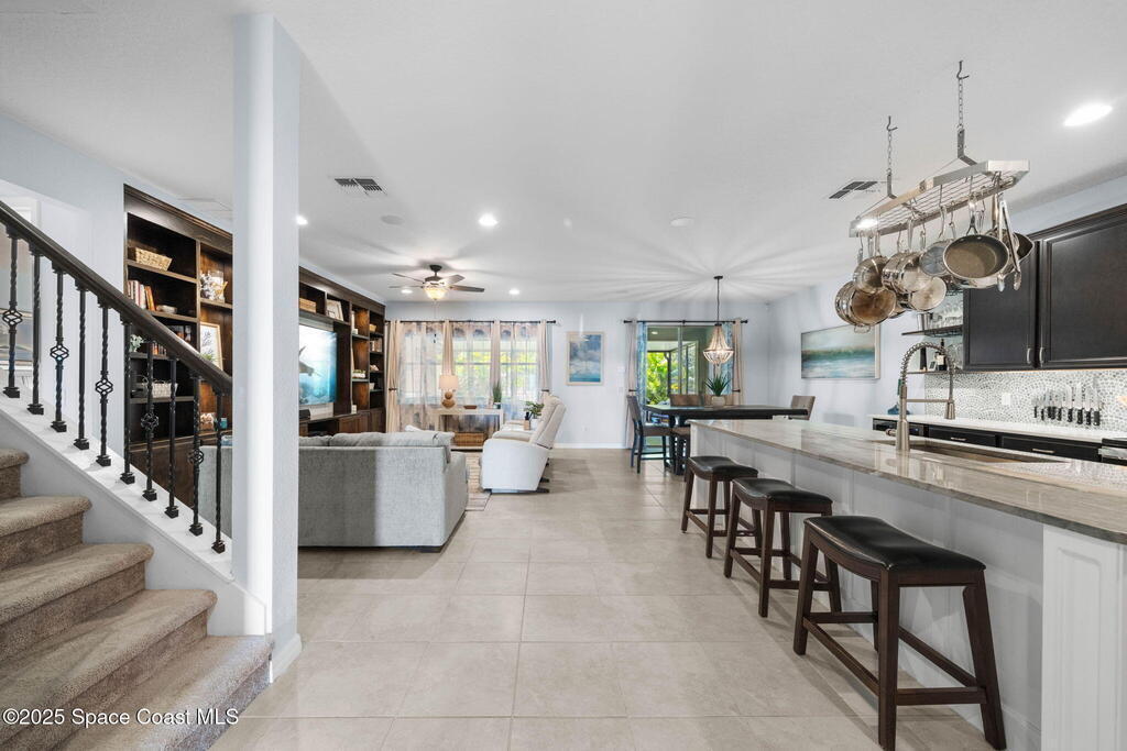 Welcome to this stunning 2019-built two-story home, perfectly situated in one of Saint Cloud's most sought-after communities -- just a short walk from top-rated schools. This beautifully maintained residence offers 4 spacious bedrooms plus a versatile flex room, and 2.5 bathrooms, blending comfort, functionality, and modern style. The primary suite is conveniently located downstairs, offering privacy and ease of access. Enjoy cooking and entertaining in the updated kitchen, featuring stylish finishes and an open-concept layout that flows seamlessly into the living and dining spaces. Upstairs, a large loft provides additional living space -- perfect for a playroom, media area, or home office. Step outside to a fully fenced backyard with lush landscaping and an expanded back patio. Enjoy resort-style amenities including a sparkling pool, clubhouse, fitness center, dog park, 1/2 basketball court, community dock and boat slips available!