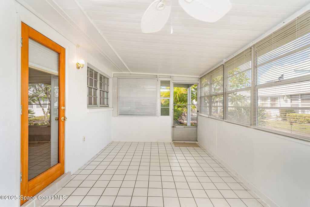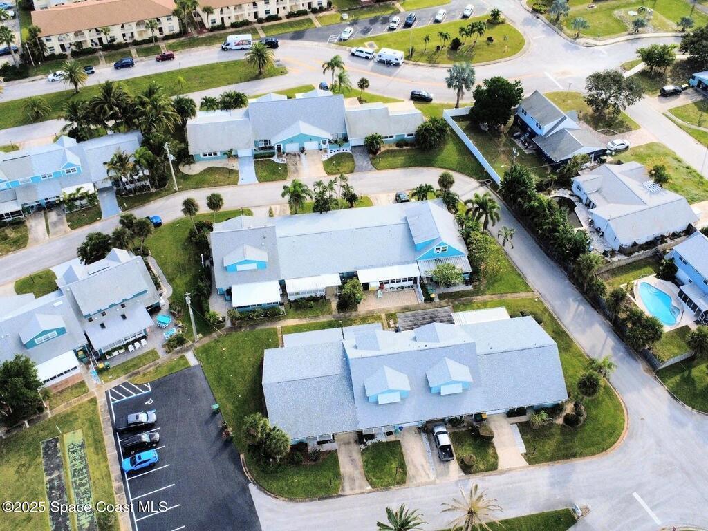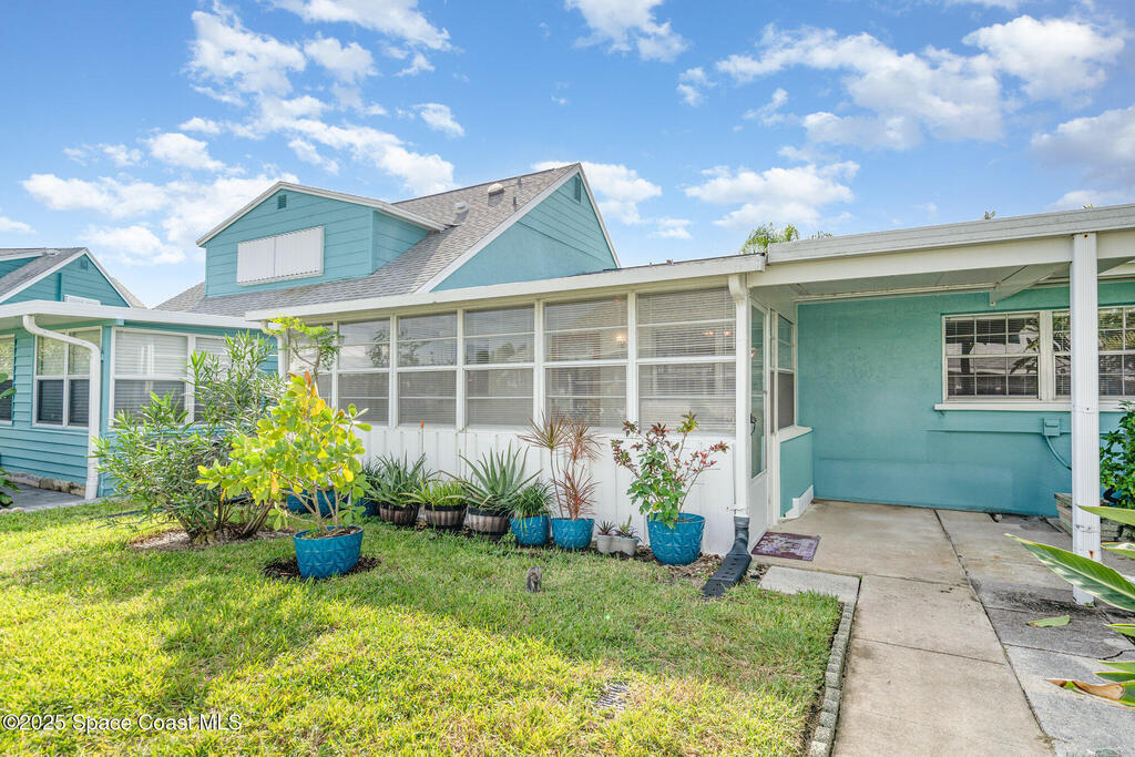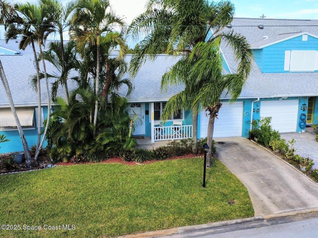 Come check out this sweet beachside townhouse in Indian Harbour Beach! Only one block to the Atlantic Ocean and beach access, this move-in ready townhouse is perfect for someone wanting to live here as their primary residence, second home or investment opportunity. This townhouse is one-story so there are no stairs! Featuring amply sized bedrooms and bathrooms, tile and oak parquet flooring throughout (no carpet), large screened back patio, attached 1 car garage, washer/dryer, AC 2021, HW Heater 2017, Roof 2019. Awesome location in a highly desired, maintained community with pool and lounge area, large covered gazebo and plenty of parking for your guests. HOA is low and attractive $185 a month which includes lawn care, landscaping, community pool, and exterior maintenance. Plenty of dining, parks, shopping, beach access points nearby and quick access to Eau Gallie causeway and I-95. ***Leases not allowed in the first year of ownership***