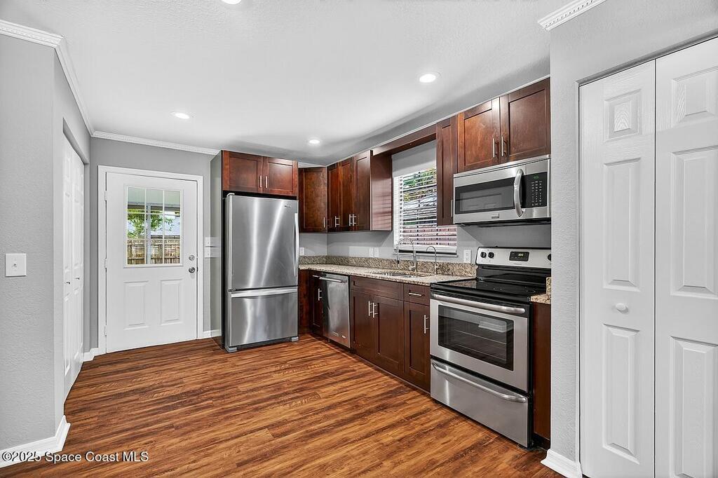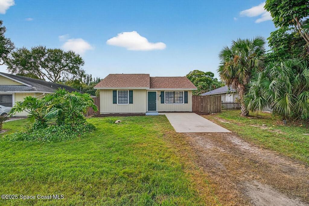 Welcome home to this adorable 2/2 in a desirable location in Vero Beach w/ just a 20 minute ride to the beach! 2025 roof! From the minute you walk through the door there is a warm & comfortable atmosphere. The vaulted ceilings add extra dimension & natural light. Fresh interior/exterior paint gives off a crisp, happy vibe. The kitchen is adorned w/ hardwood shaker cabinetry, granite counters & SS appliances. New ceiling fans, lighting & blinds throughout are completed & taken off your ''to-do'' list. There is a spacious screened & covered patio overlooking a fenced backyard. FHA after 12/30