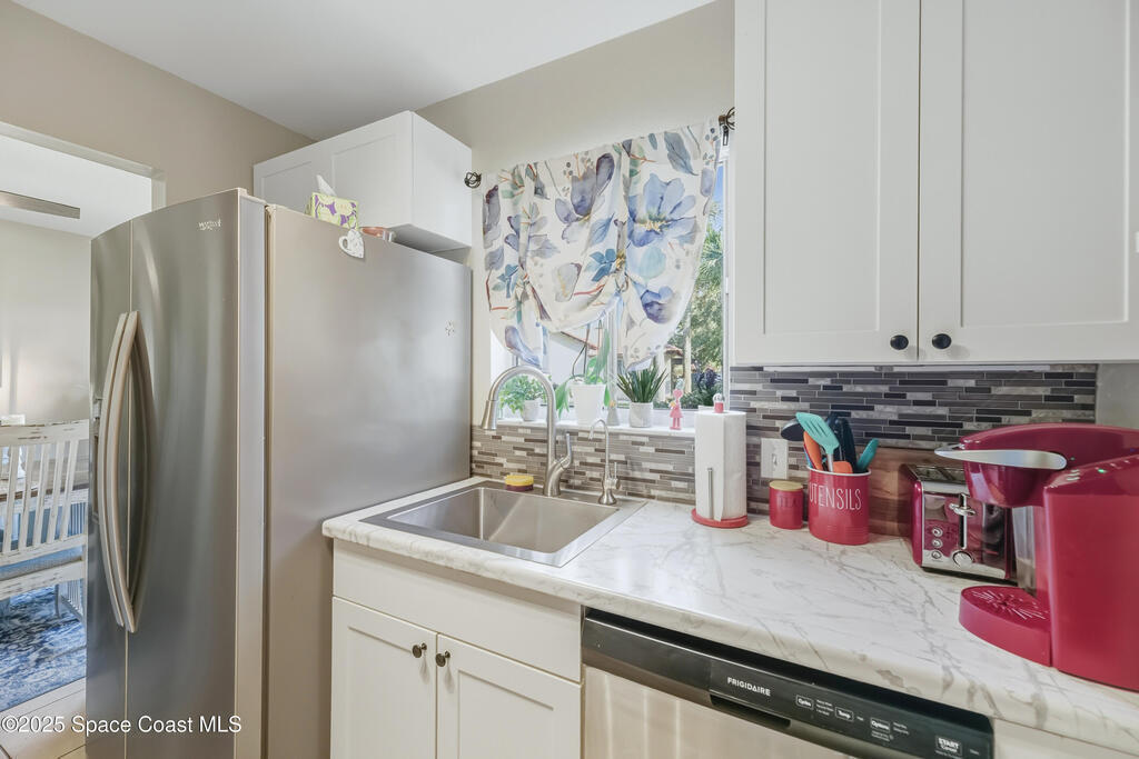 Welcome to this beautifully maintained end-unit townhouse in a sought-after, resort-style community! Enjoy multiple recent upgrades including new washer & dryer, kitchen sink and refrigerator, garage door keypad, reverse osmosis filtration system, fresh interior paint, and a newly added back patio perfect for outdoor relaxation. Roof 2024, Impact Slider 2021, New Panel & Breakers 2020, AC 2020, Water Heater 2025. This end unit offers extra privacy with a large grassy area between neighboring homes and sits along tree-lined streets that create a peaceful atmosphere. Conveniently located near shopping, hospitals, restaurants and easy access to I-95 for commuters. The community features fantastic amenities including a heated pool, tennis court, shuffleboard, and clubhouse. Move-in ready and easy to love!