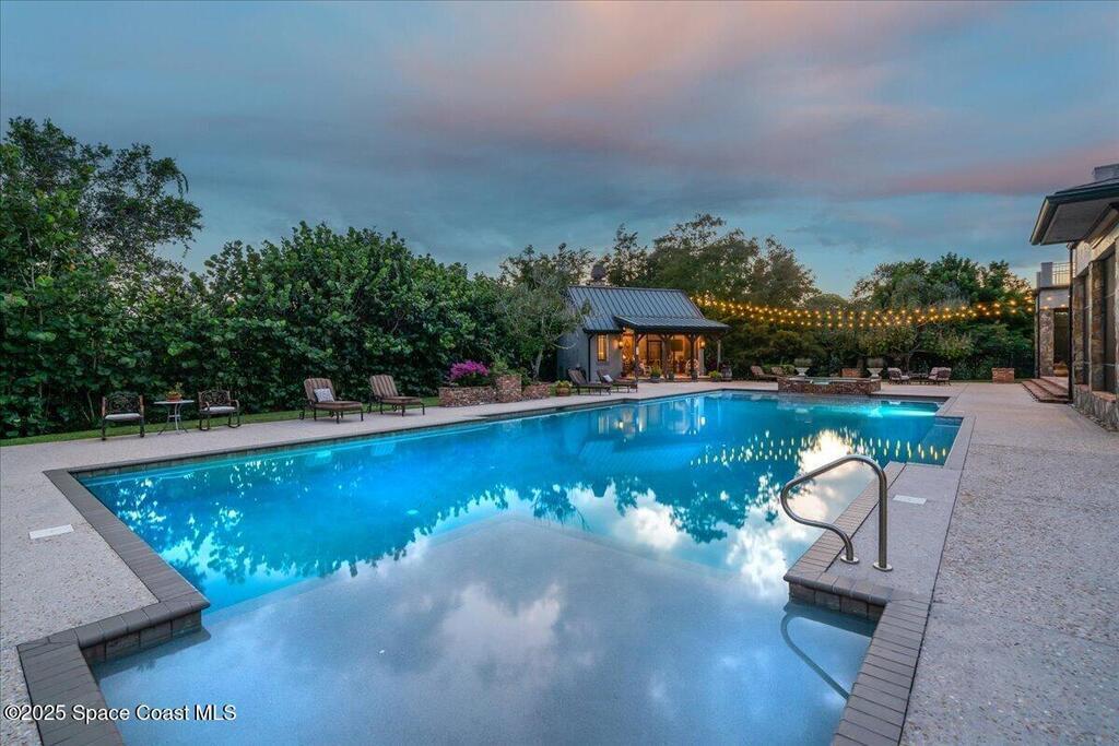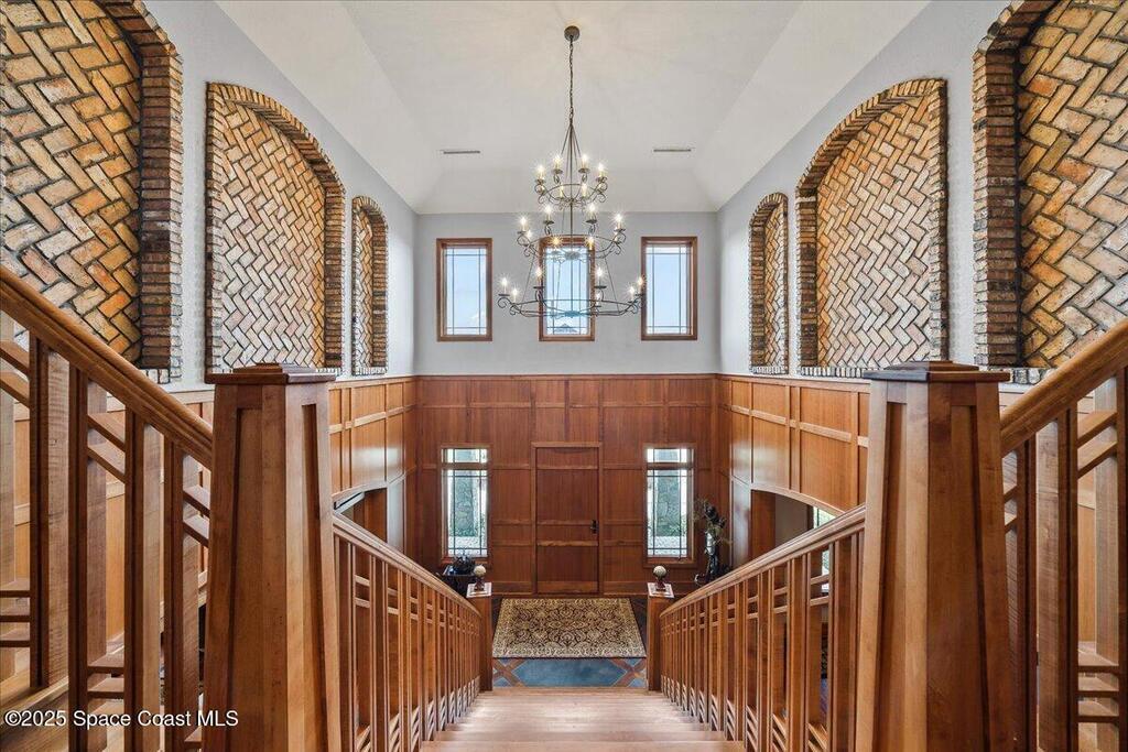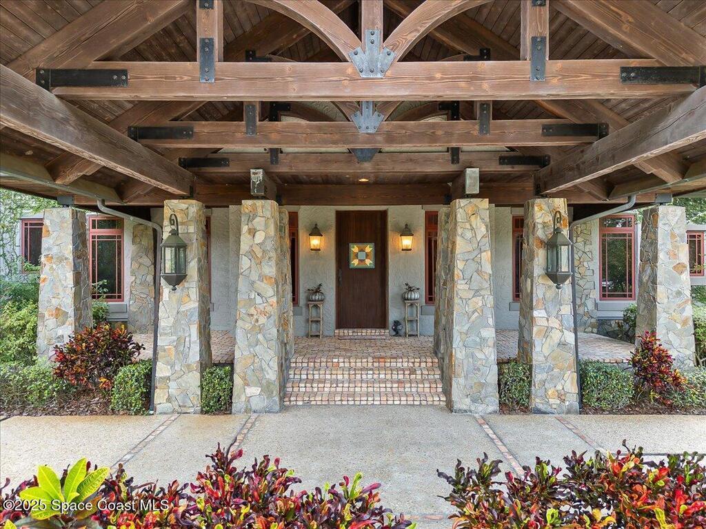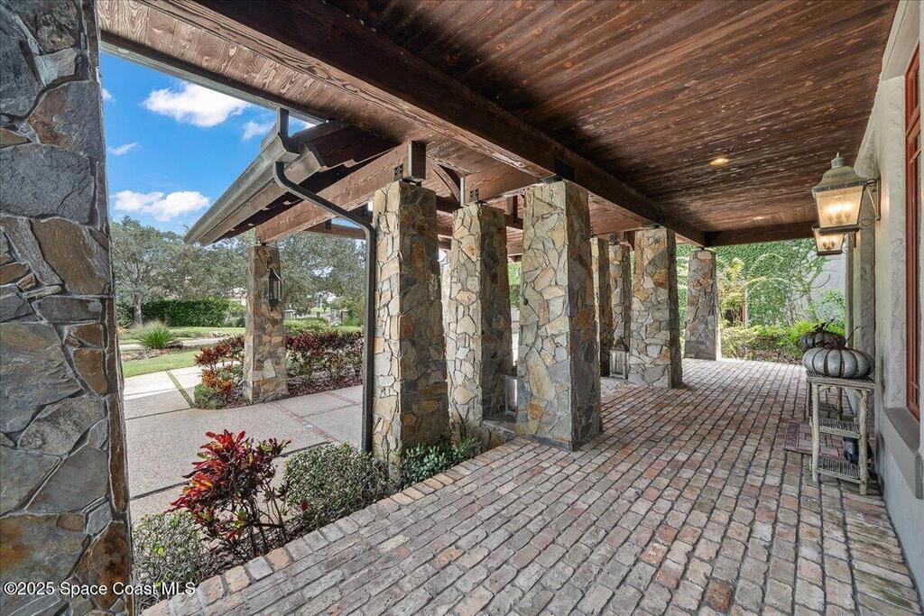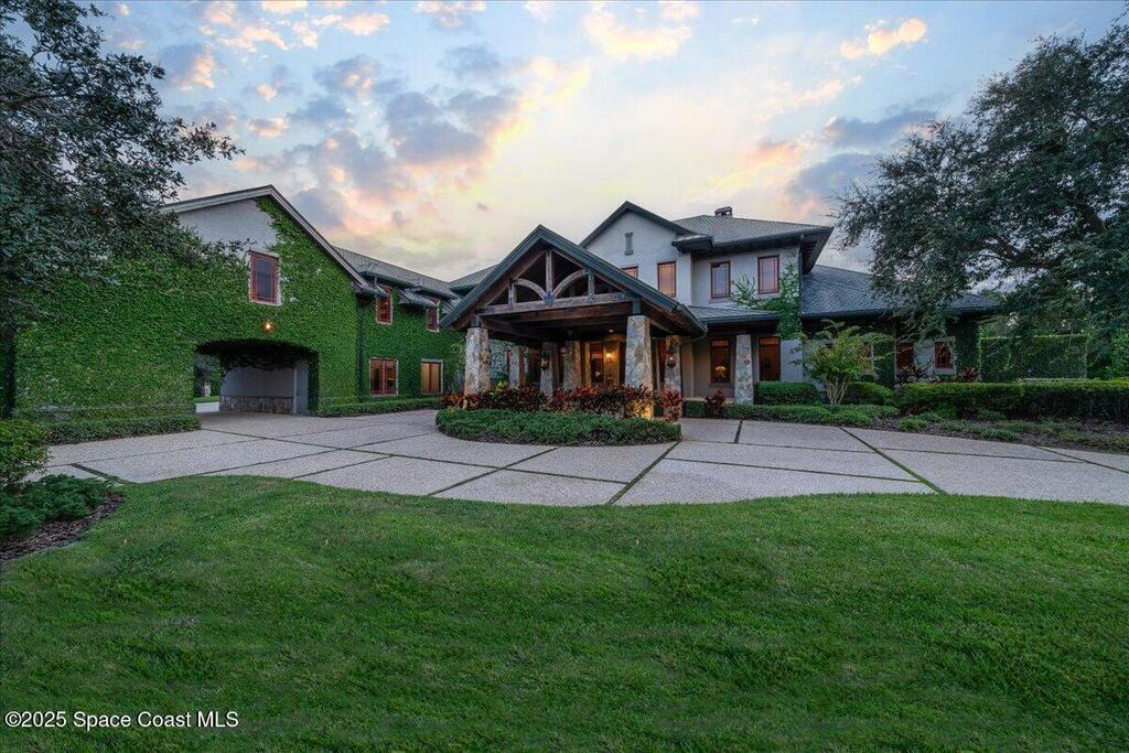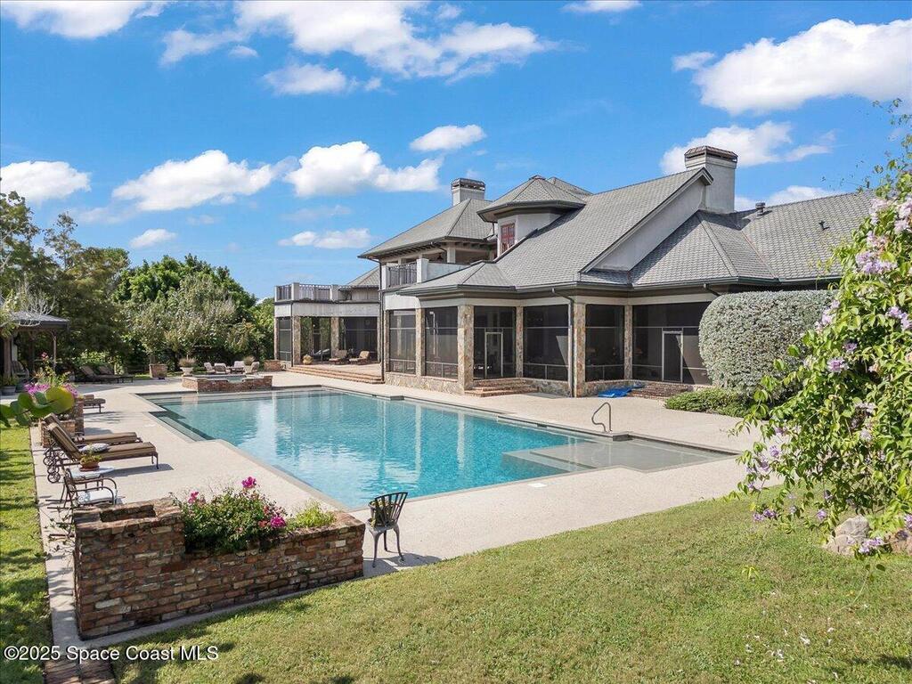 Welcome to 586 Wethersfield Place, an unparalleled luxury sanctuary nestled in the heart of Melbourne, Florida. This exquisite property redefines opulence offering discerning buyers a unique blend of grandeur and privacy. A Masterpiece of Architectural Excellence and constructed with the utmost attention to detail, this property stands proudly on a solid concrete poured block foundation, meticulously reinforced with double steel rebar ensuring both strength and security. Imagine waking up to the serene views of a protected wildlife preserve while enjoying complete privacy on this north-south-oriented lot. The award-winning landscape, designed by Susan Hall, enhances the beauty of this estate with antique, reclaimed Chicago brick adding layers of history and character. Dive into relaxation with your own 85,000-gallon saltwater pool and spa, bathed in sunlight for 12 hours daily, yet cleverly designed to keep the home cool.