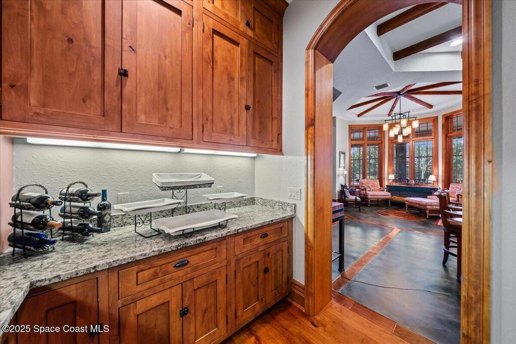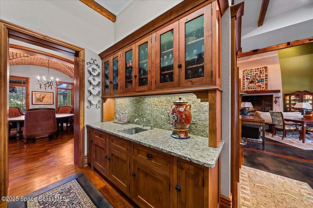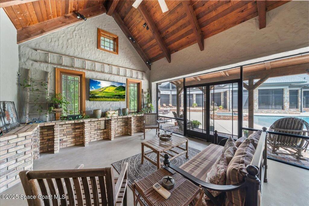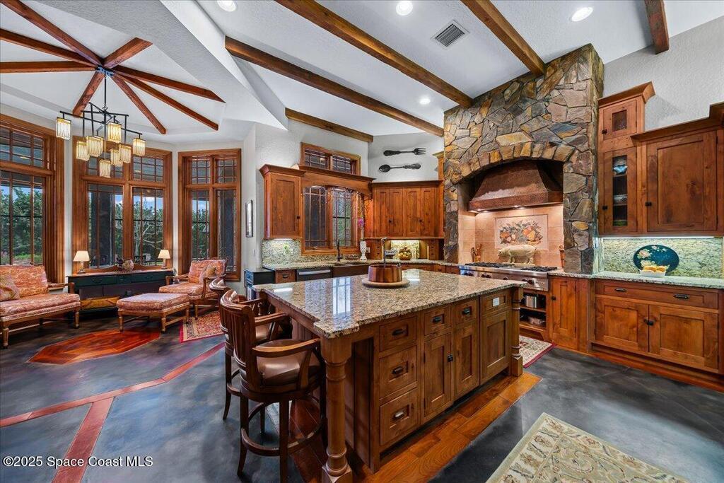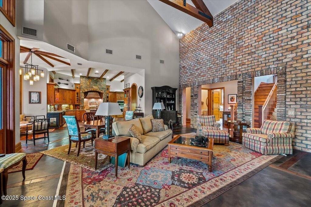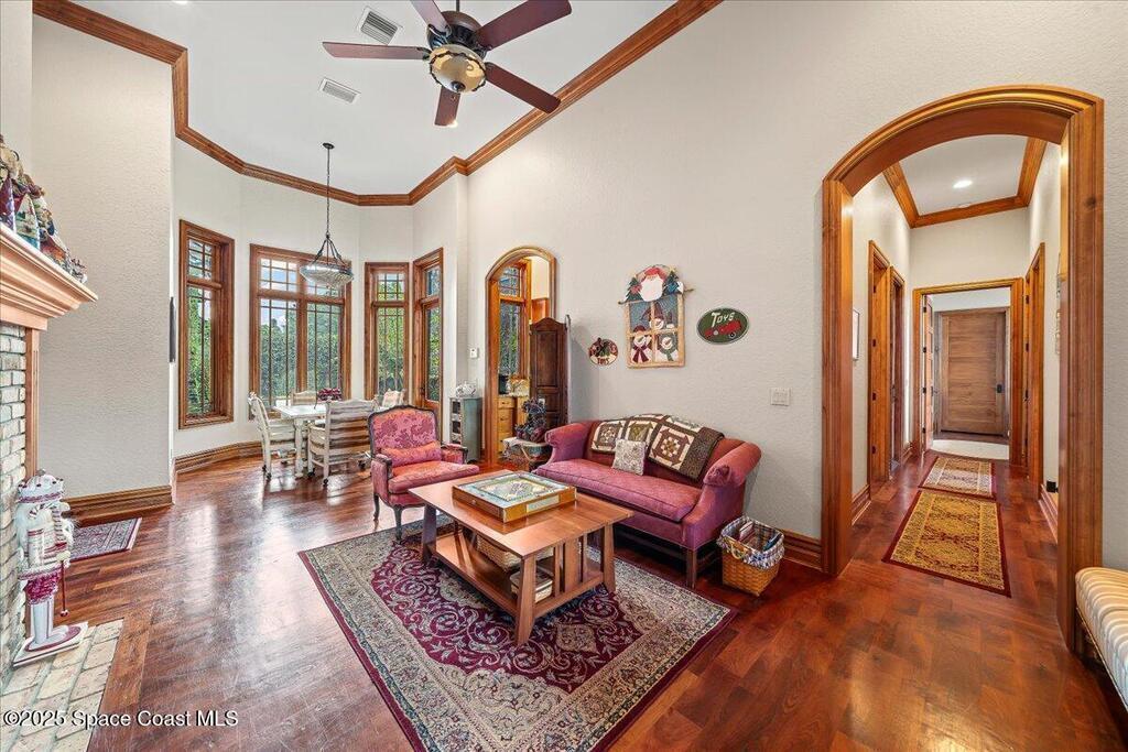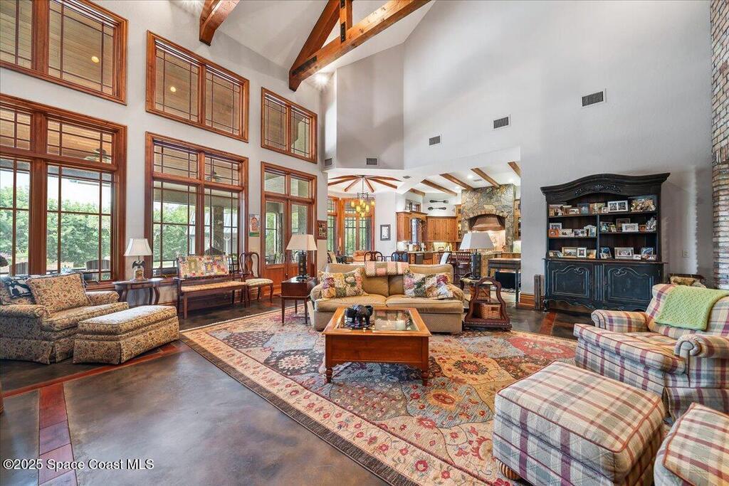Welcome to 586 Wethersfield Place, an unparalleled luxury sanctuary nestled in the heart of Melbourne, Florida. This exquisite property redefines opulence offering discerning buyers a unique blend of grandeur and privacy. A Masterpiece of Architectural Excellence and constructed with the utmost attention to detail, this property stands proudly on a solid concrete poured block foundation, meticulously reinforced with double steel rebar ensuring both strength and security. Imagine waking up to the serene views of a protected wildlife preserve while enjoying complete privacy on this north-south-oriented lot. The award-winning landscape, designed by Susan Hall, enhances the beauty of this estate with antique, reclaimed Chicago brick adding layers of history and character. Dive into relaxation with your own 85,000-gallon saltwater pool and spa, bathed in sunlight for 12 hours daily, yet cleverly designed to keep the home cool.