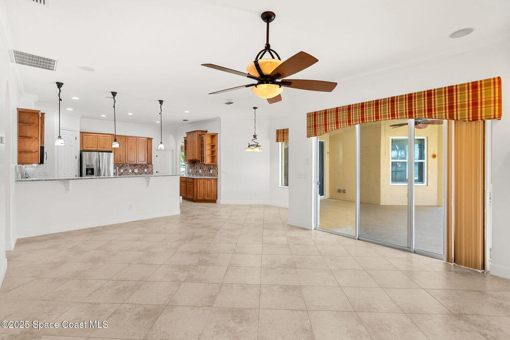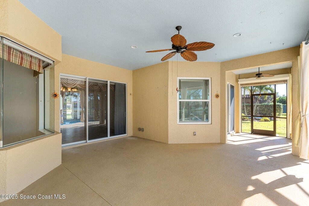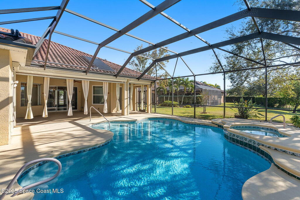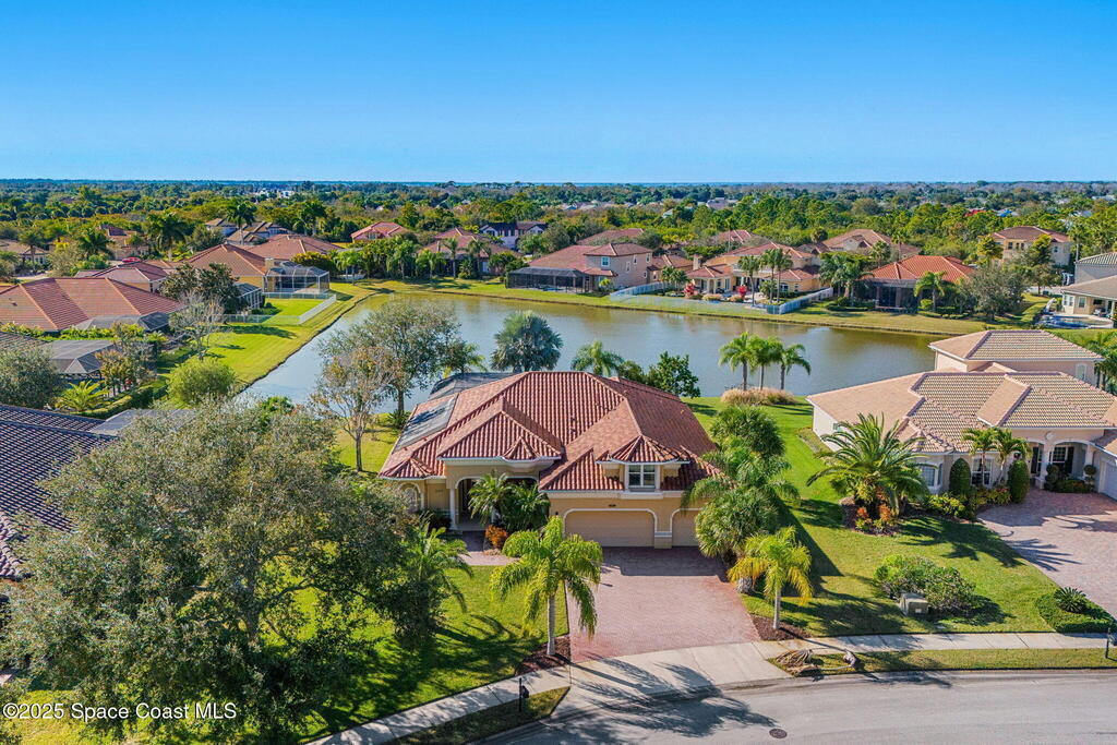 What you've waited for! A very rare opportunity to own your dream home in the prestigious gated community of Brisbane Isle of Suntree! Custom-built with over 3,000 sq ft of lakefront living & the broadest water view in the neighborhood. Exceptional outdoor living with gorgeous screened-in pool and solar-heated spa. Relax while you enjoy stunning nightly sunsets. Home boasts all the essential features for the discerning homebuyer: Concrete block construction, barrel tile roof, impact-rated windows and power-assisted roll down shutters, 3 Car garage and expansive bonus room ideal for guests, playroom, gym, or office. Beautiful kitchen showcases stainless steel appliances, granite countertops, stone backsplash, bar seating & island for food prep or entertaining. Primary suite overlooking the pool, features large walk-in closet, spa-like bath with shower & separate soaking tub, double sinks & private water closet. Layout features a separate in-law/guest wing with full bath & pool access.