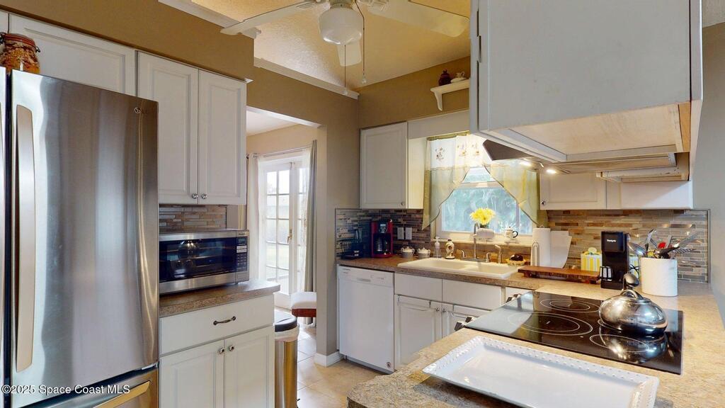 This 3BR/2BA home that has been completely upgraded and is PRICED TO SELL QUICKLY! Beautiful wood like tile floors throughout! Living room with bright picture window and vaulted ceilings and skylights. Delightful Kitchen with upgraded stainless appliances and plenty of countertops all open to the Family room with wood burning fireplace (could be converted to gas). Primary Bedroom with en suite has upgraded vanity and toilet. French doors leading to the large screened porch, which overlooks the spacious back yard. Big work shop/shed with electricity in the backyard is located just steps from the house. A/C - 2020, FRONT ROOF & SOLAR SYSTEM- 2019, WATER HEATER - 2022. WHOLE HOUSE SOLAR SYSTEM WITH ESS BATTERY TO STORE SOLAR POWER, conveys to buyer at no charge. This beauty will not last!!!