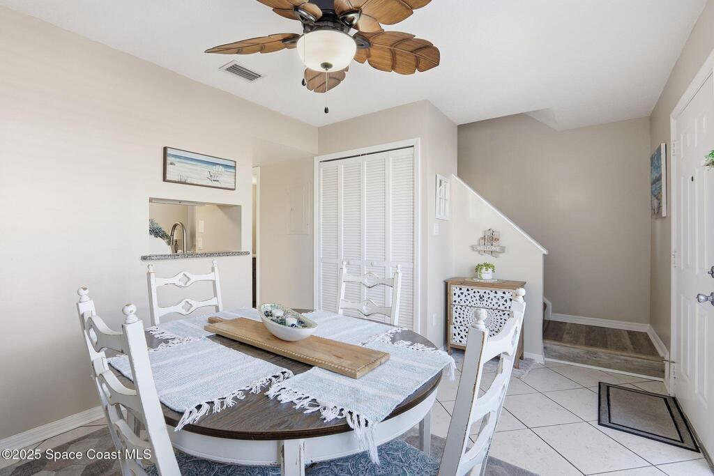 Bright & updated two bedroom, two and a half bath condo just steps from the ocean in beautiful Cape Canaveral Florida. Enjoy a modern kitchen, refreshed bathrooms, and a spacious great room with glass sliders opening to a charming paver patio. This resort-style community offers 3 pools, private beach access, tennis courts, a clubhouse, ocean observation deck and an exercise room-ideal for coastal living at it's finest!