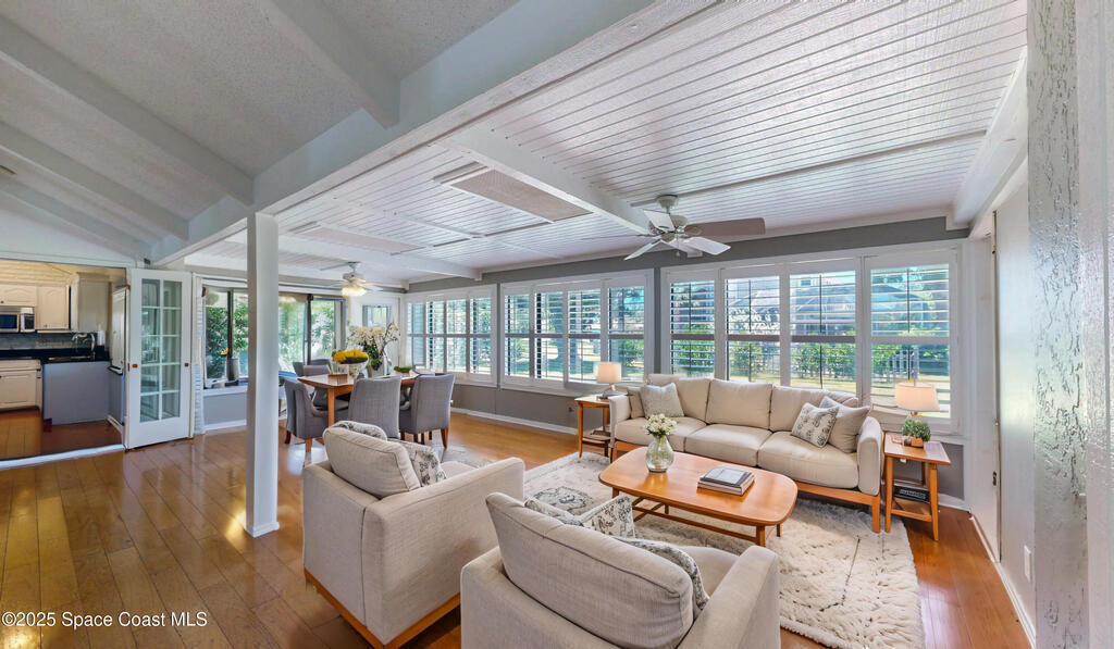 Beautiful Suntree Golf Course Home with Stunning 14th Green Views! Welcome to this exceptional residence located in the sought-after Suntree Golf Course Community of Melbourne.Enjoy Suntree Country Club's two premier golf courses (member's only), tennis courts, fitness facilities, and social events.Features 3 bed/3bath/meticulous landscaping and inviting French doors that open into a spacious and light-filled living area Inside, the living room serves as the home's centerpiece, featuring soaring 24-foot ceilings and a breathtaking white brick fireplace that extends floor to ceiling! Plantation shutters throughout the home provide timeless charm and allow natural light to fill the space while maintaining privacy.Adjacent to the living room is a formal dining room, ideal for hosting family gatherings. The kitchen boasts granite countertops, white cabinetry, and a separate breakfast area.