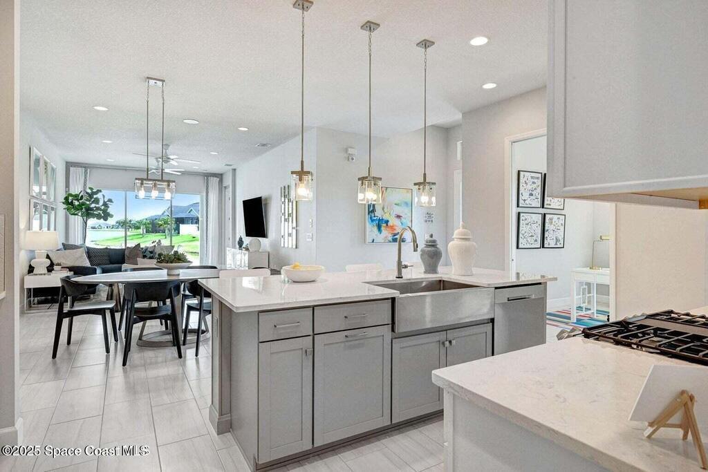Former MODEL HOME with amazing lake view! END Unit that has open and spacious living & dining area. Beautiful island kitchen with breakfast bar, pantry, 5 burner gas range with griddle, stainless apron sink & white quartz countertops. Tile flooring throughout main living areas. In ceiling speakers with volume controls throughout. Light and bright primary bedroom with lg. walk-in closet. Primary bath features dbl. sink vanity & walk-in shower. Laundry room. Tankless hot water heater. Covered patio & extended patio slab to back yard. Two car garage. TENANT receives FULL ACCESS to the nicest amenities around known as Addison Village Club!! Minutes to I-95, shopping & entertainment. NO PETS. Lawn care by HOA. Renters Insurance Required.