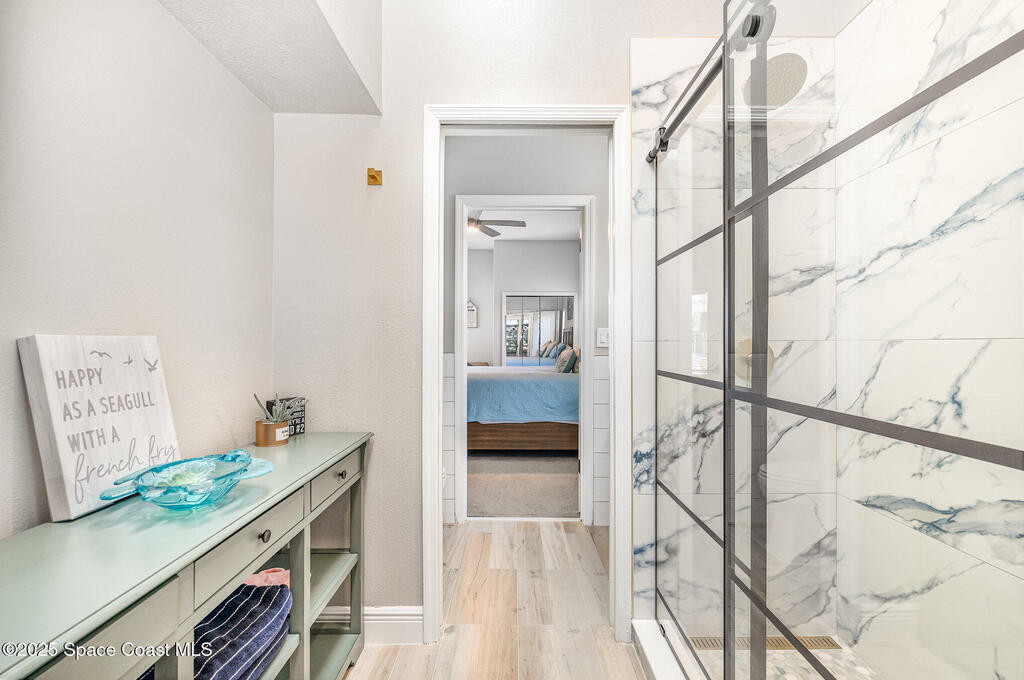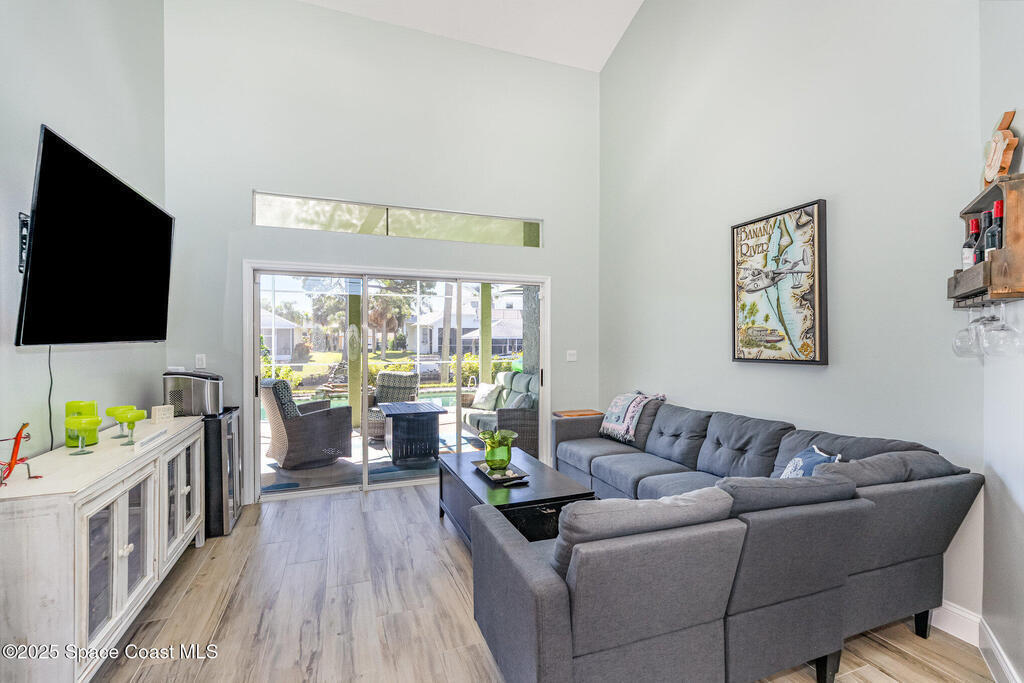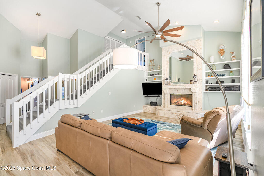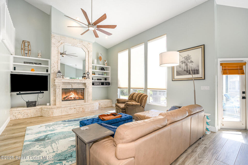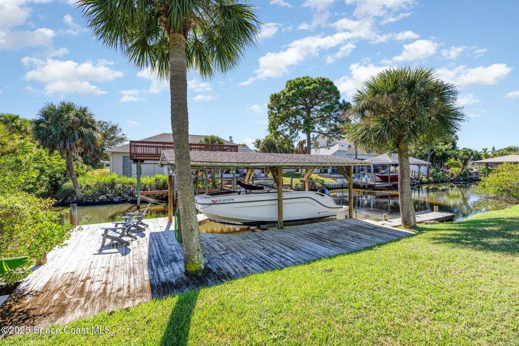 Direct river access. 3 car garage Home located on .35 acre, close to area of new custom homes. Masterfully renovated 5 bedroom, 3 full baths, plus half pool bath. 5th bedroom, ideal for office, hobby room or guest quarters with private entrance located off garage. Dedicated Master suite is upstairs. Porcelain tile flooring replaced on 1st level. Both downstairs bathrooms renovated. Custom eat in kitchen with granite counters. Family room with dramatic coquina fireplace. Formal dining room, living room, screened pool with waterfall. Upstairs Master suite with screened patio overlooking canal. Updated electrical panel & A/C compressor downstairs. Wood decking, dock & boat lift, lift max. 3,000 lbs.. No HOA