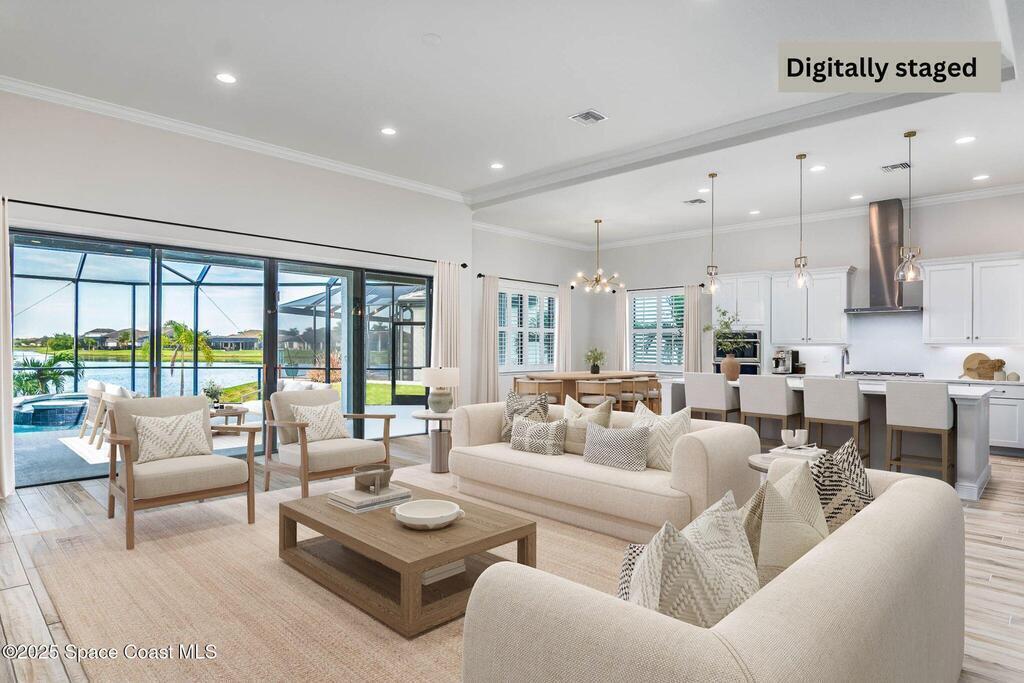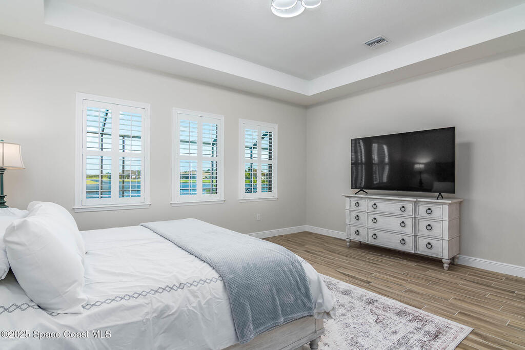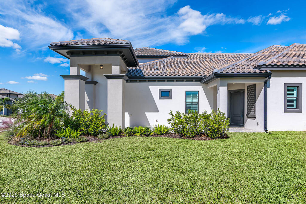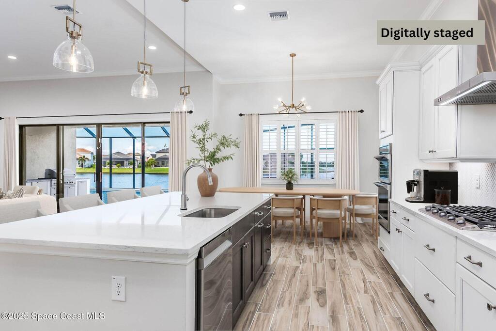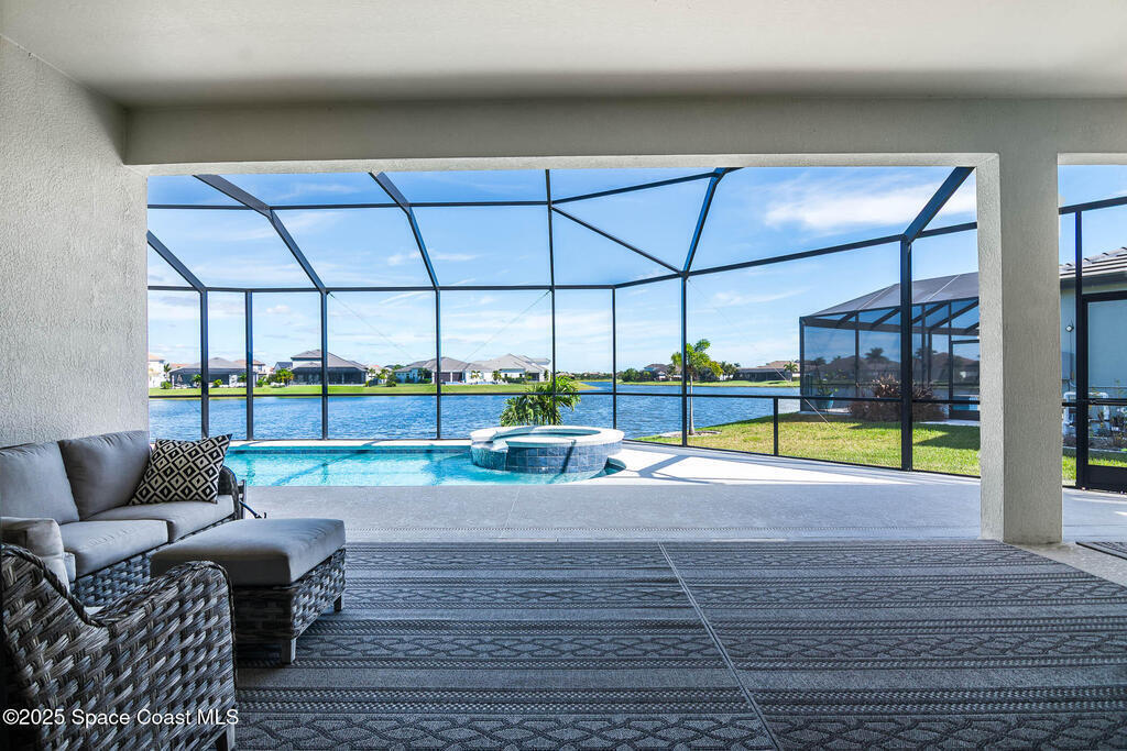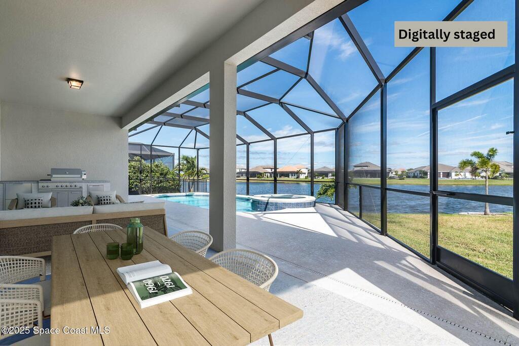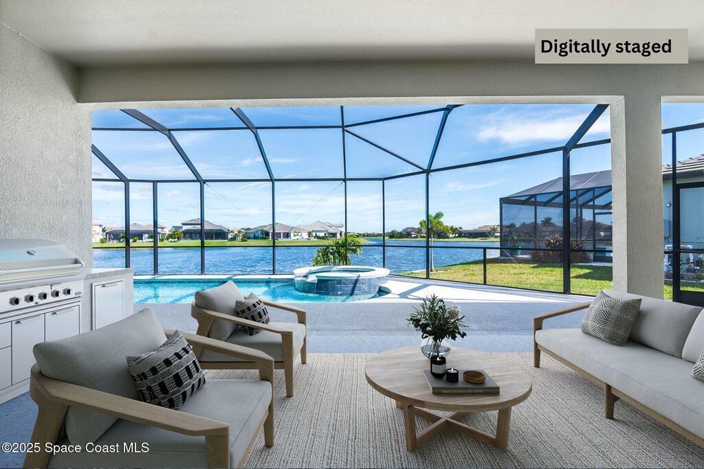 A new standard in Viera living! This home outshines new builds w/ customizations the builder no longer offers. Set on a quiet cul-de-sac, this 0.27-acre lakefront lot boasts an oversized front yard & extended tranquil water views. Enjoy a pool & spa from the supersized lanai, pre-plumbed for an outdoor kitchen. The gourmet kitchen is a chef's delight w/ wall ovens, gas cooktop, wine fridge, & a power pantry w/ 2nd refrigerator, dishwasher & sink. Upgrades include 3 HVAC zones for ultimate comfort, built-in wall pest defense & smart features like WiFi cameras, thermostats & garage door. Wood-look tile, tray ceilings & plantation shutters on impact windows add elegance. Every bdrm + bonus rm have a private bath & the owners' ste offers an oversized walk-in closet, large linen closet & dual showers. Set in an A-rated school district near top dining, golf, shops & just 15 min. to the beach. Here modern comfort & a remarkable lakeside setting blend to create the perfect place to come home!