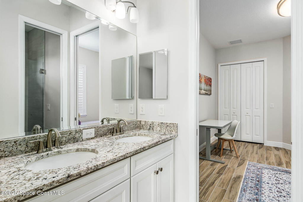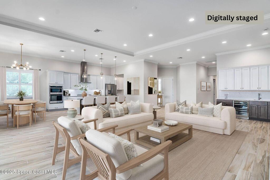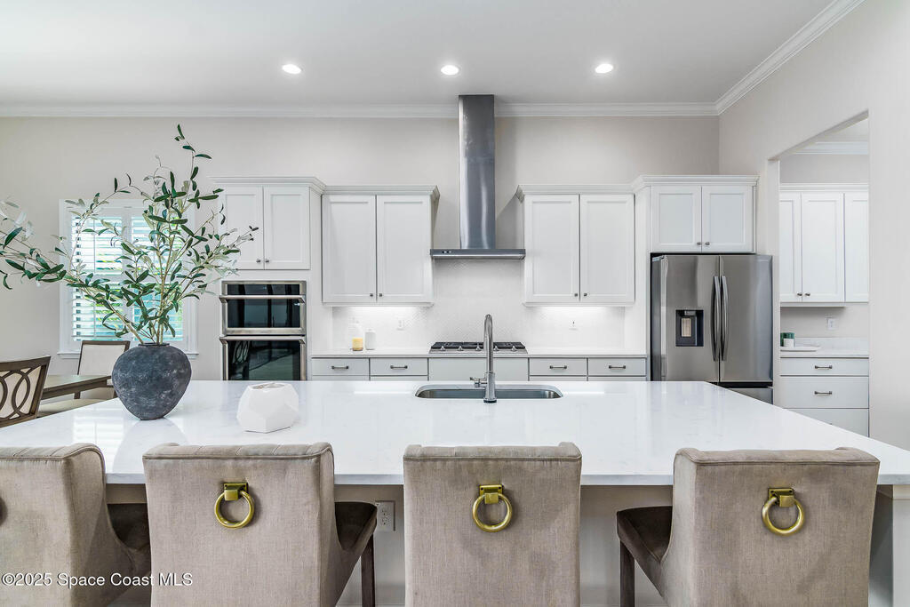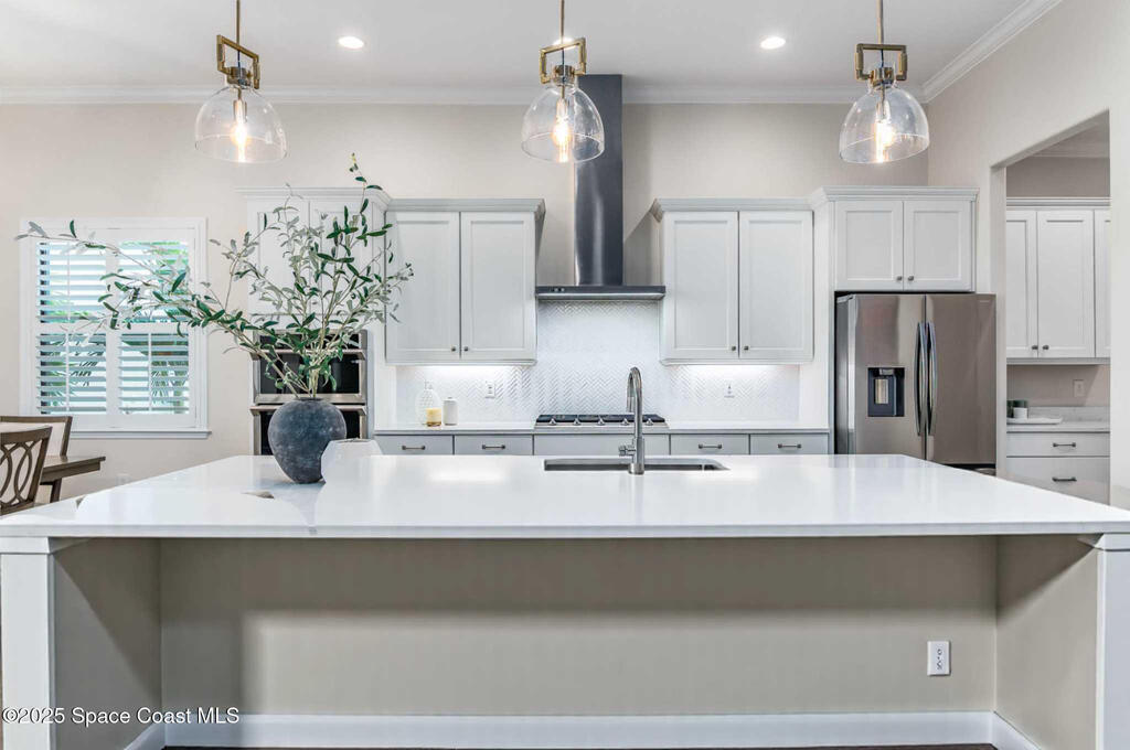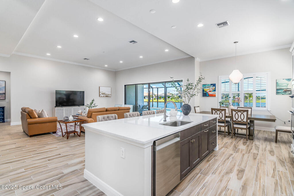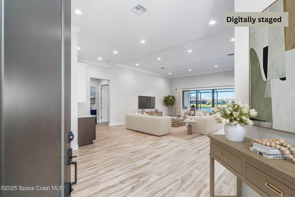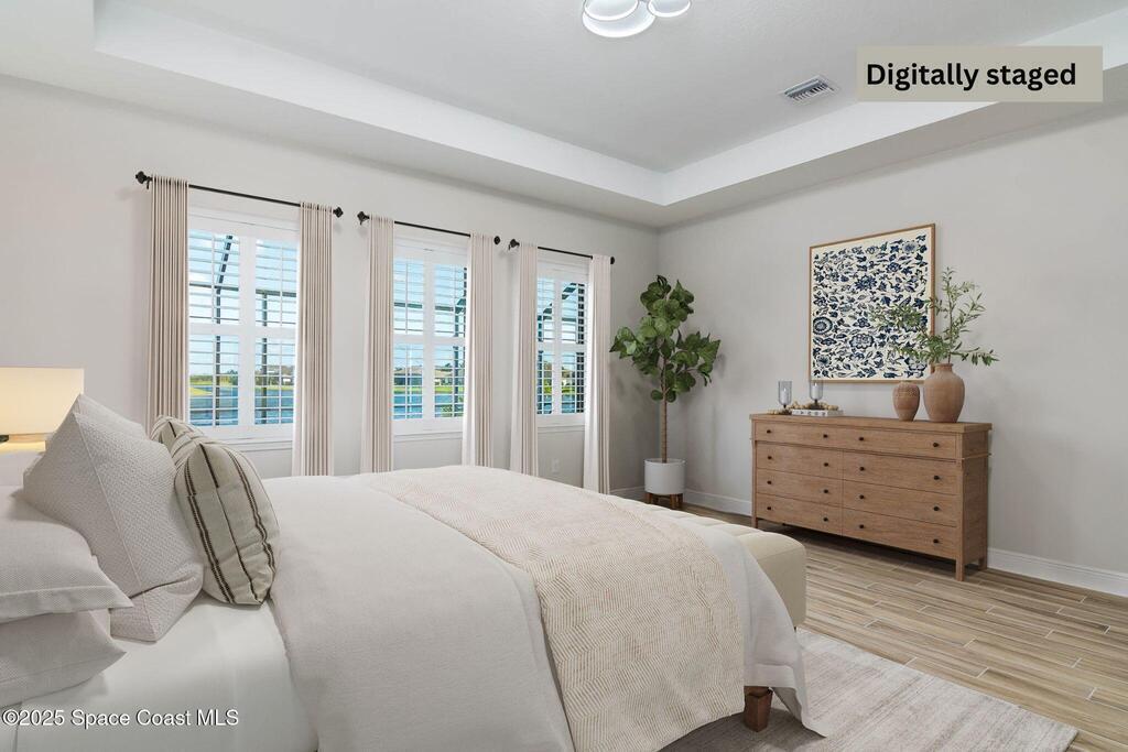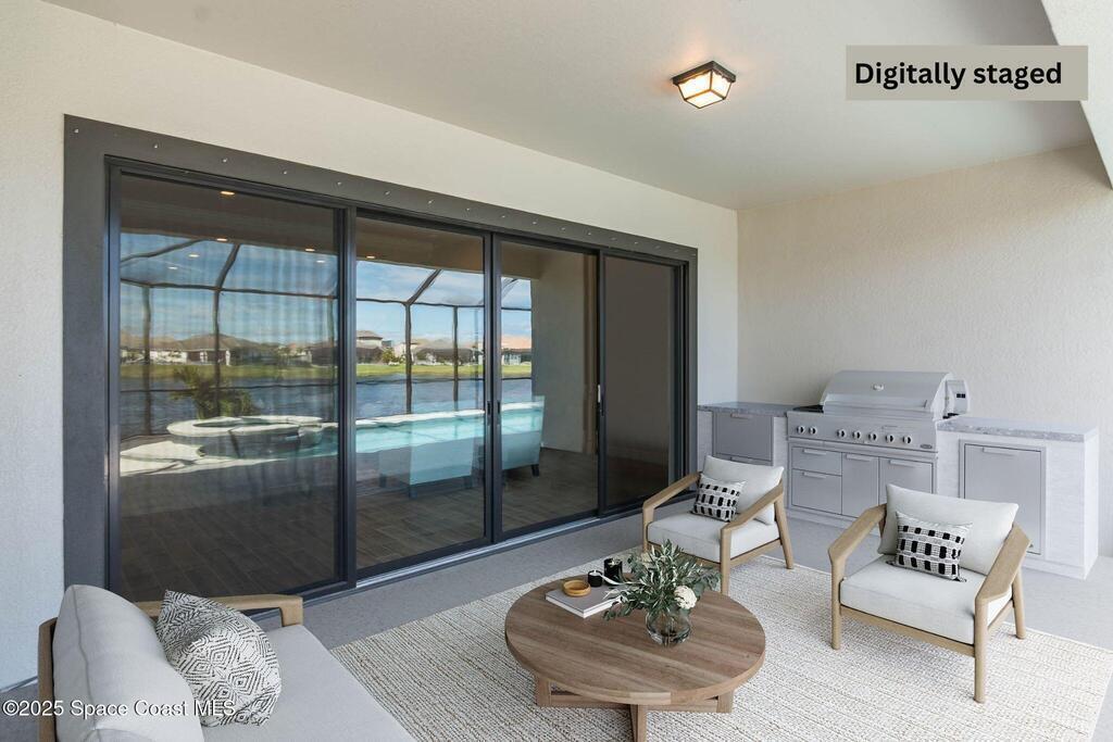 A new standard in Viera living! This home outshines new builds w/ customizations the builder no longer offers. Set on a quiet cul-de-sac, this 0.27-acre lakefront lot boasts an oversized front yard & extended tranquil water views. Enjoy a pool & spa from the supersized lanai, pre-plumbed for an outdoor kitchen. The gourmet kitchen is a chef's delight w/ wall ovens, gas cooktop, wine fridge, & a power pantry w/ 2nd refrigerator, dishwasher & sink. Upgrades include 3 HVAC zones for ultimate comfort, built-in wall pest defense & smart features like WiFi cameras, thermostats & garage door. Wood-look tile, tray ceilings & plantation shutters on impact windows add elegance. Every bdrm + bonus rm have a private bath & the owners' ste offers an oversized walk-in closet, large linen closet & dual showers. Set in an A-rated school district near top dining, golf, shops & just 15 min. to the beach. Here modern comfort & a remarkable lakeside setting blend to create the perfect place to come home!