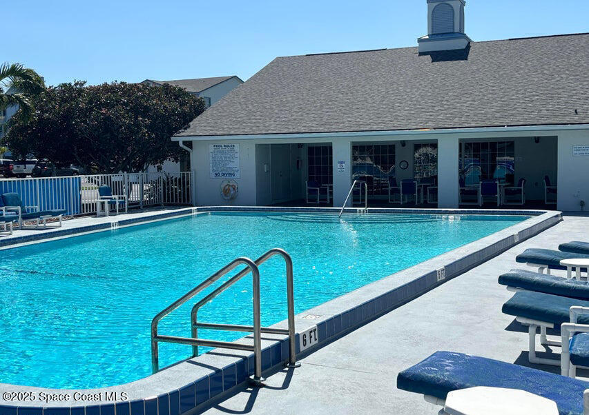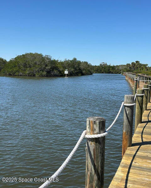 Own a little piece of Cocoa Beach Paradise in this 2 bedroom 2 bath direct Banana River unit and only 2 blocks from the beach. Relax on your patio & watch the pelicans fly by or sit on the dock only a few feet away & watch the dolphin & manatees play and end your day with the spectacular colors of sunset, The kitchen features stainless steel appliances, inside unit washer/dryer, granite counter tops that match the wet bar for entertaining famiy and friends. Primary bedroom boasts views of the water, walk in closet, double sink vanity, garden tub and separate shower. 2nd bedroom can be used for guests, office or both. Electric Hurricane Shutters, detached extra long garage, fenced area for RV/Boat storage with easy access to boat ramp next door. Amenities include: pool, tennis and pickleball courts, shuffle board, sauna, club house, exercise room and billiards. Close to shopping, dining and more.Make your appointment now!