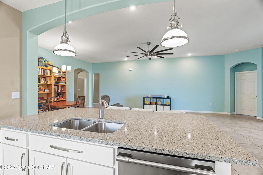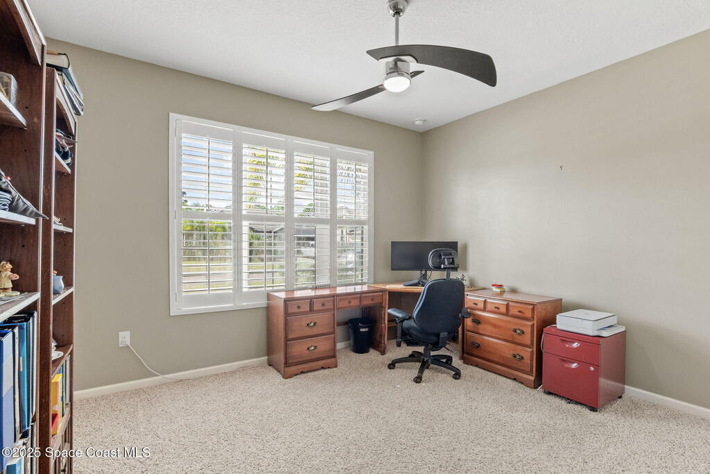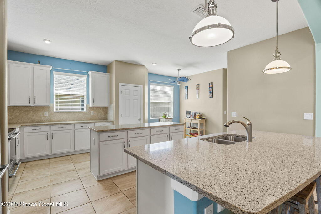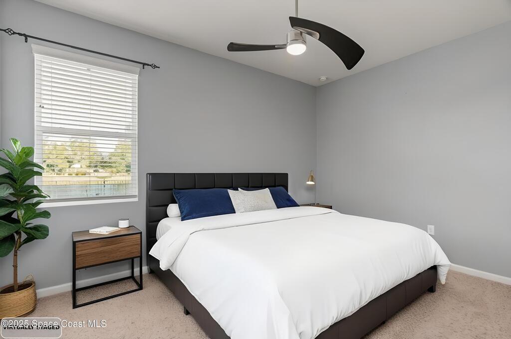 Welcome to The Sanctuary at Sawgrass Lakes--West Melbourne's premier gated enclave. This stunning lakefront 4-bedroom, 3-bath, 3-car garage home was built in 2019 and feels better than new. Inside, you'll find a designer kitchen with a peninsula breakfast bar, secondary island, granite countertops, 42'' white cabinets with crown molding, stainless appliances, and a walk-in pantry. Elegant upgrades include tray ceilings, plantation shutters, electric lanai blinds, and custom laundry cabinetry. Enjoy sunsets from the screened patio overlooking the lake and fully fenced backyard with private irrigation well and brick-paver entertaining area. Resort-style amenities include a clubhouse, fitness center