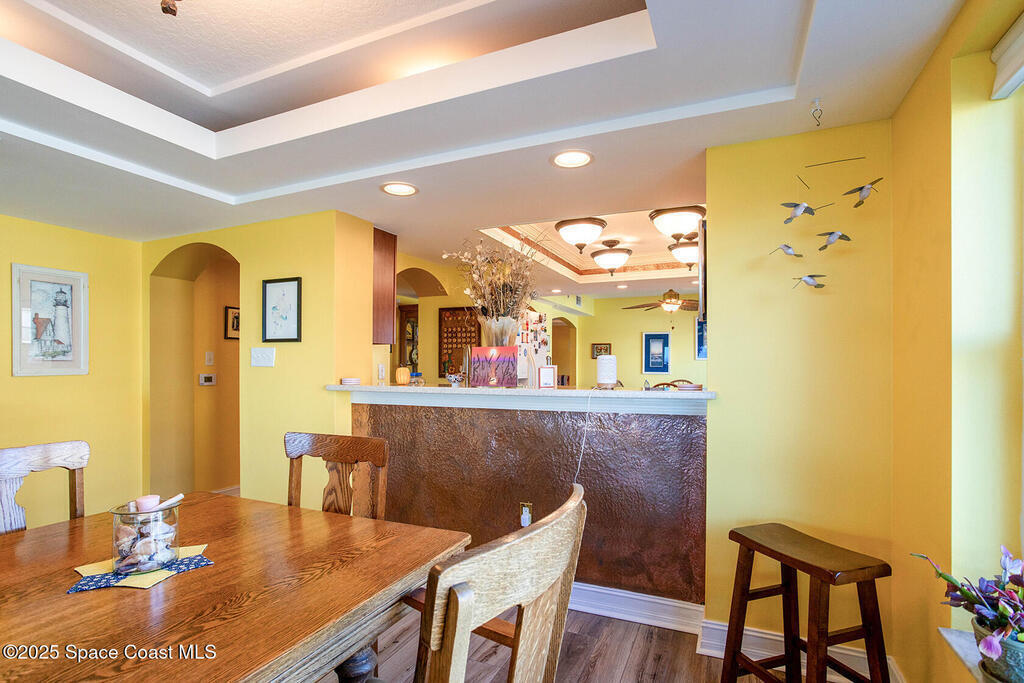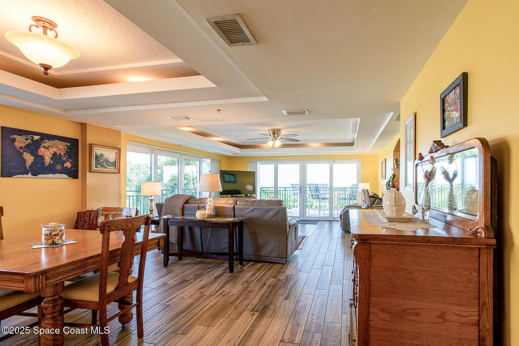 Welcome to your dream condo in Cape Canaveral! This stunning property boasts 3 bedrooms, 3 bathrooms, and a plethora of luxurious features that will make you never want to leave. Step inside and be greeted by the sleek porcelain tile flooring that flows throughout the whole condo. The hurricane impact windows not only provide peace of mind during storm season but also allow for breathtaking views of the ocean from every angle. The tray ceiling adds an elegant touch to the space, while the community in-ground pool with hot tub offers the perfect spot to relax and unwind. With a designated parking space and extra storage in the garage, convenience is key in this condo. The primary bedroom is a true oasis, with direct ocean views. The large balcony where you can enjoy your morning coffee while watching the sunrise. Whether you're looking for a permanent residence or a vacation getaway, this condo has it all. Don't miss your chance to own a piece of paradise in Cape Canaveral!