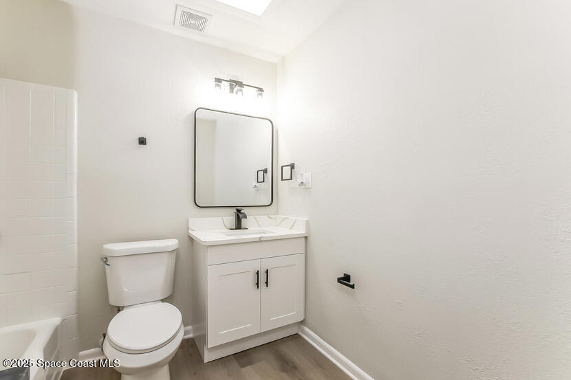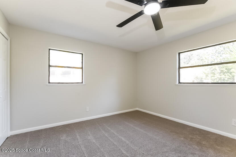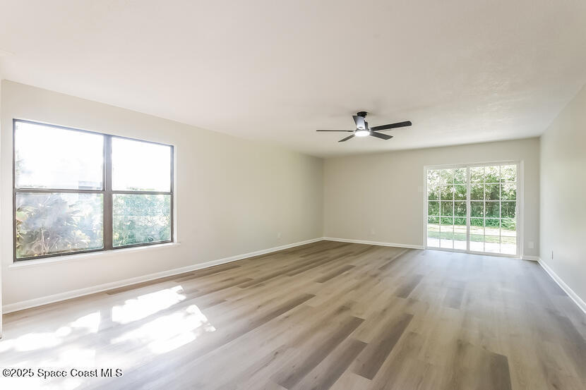 It's time to come home to this beautifully renovated 4 bedroom, 2 bath home in one of Titusville's most desirable neighborhoods! The gently curving driveway and mature landscaping invite you to see what's inside. A wide open floorplan greets you at the front door featuring a fully updated kitchen, expansive dining area and large family room. A wide foyer and short hallway separate the 4 bedrooms and 2 baths from the rest of the house lending privacy and serenity. This home has been thoughtfully updated with fresh interior AND exterior paint, modern light fixtures and fans, and a new HVAC system. The kitchen has been fully remodeled with attractive new cabinets, gleaming stainless appliances, a convenient island cooktop, and handsome quartz countertops. New flooring throughout includes chic luxury vinyl plank in the common areas and lush carpeting in the bedrooms. This is a must-see opportunity. Explore the possibilities!