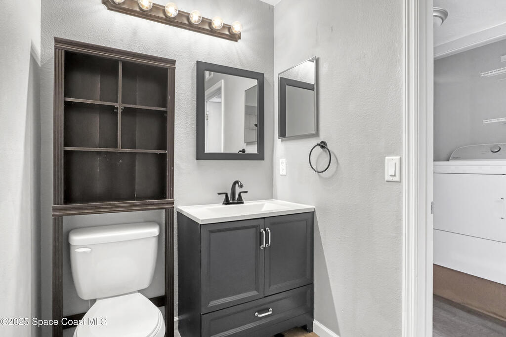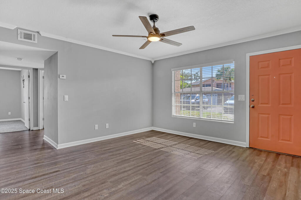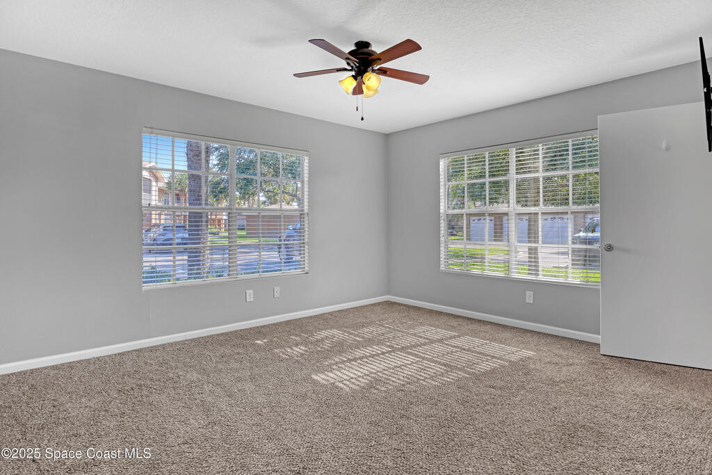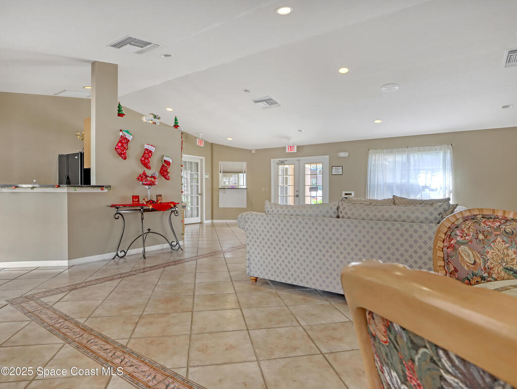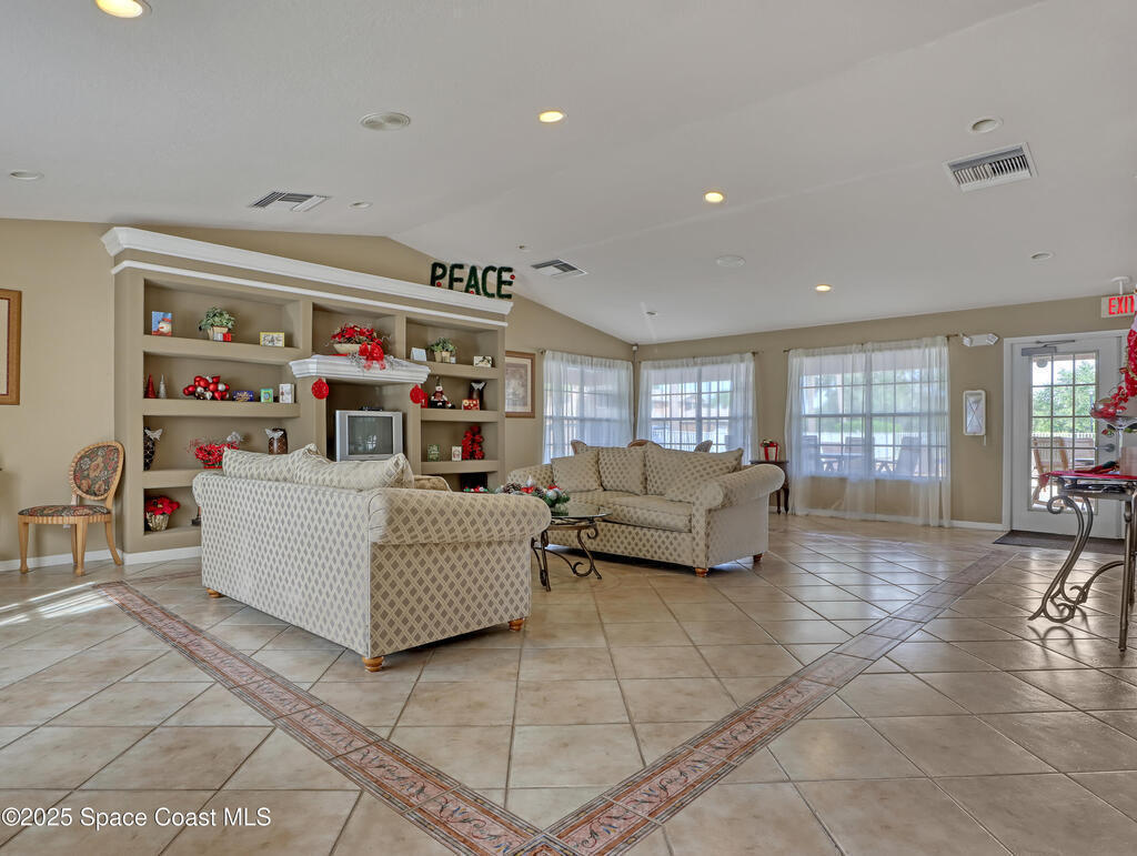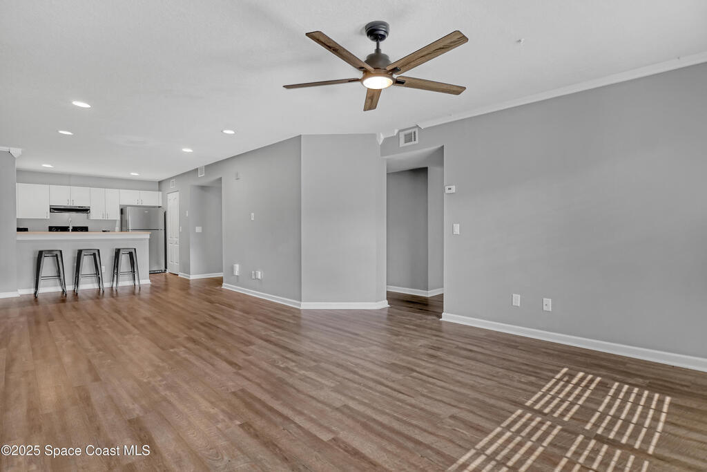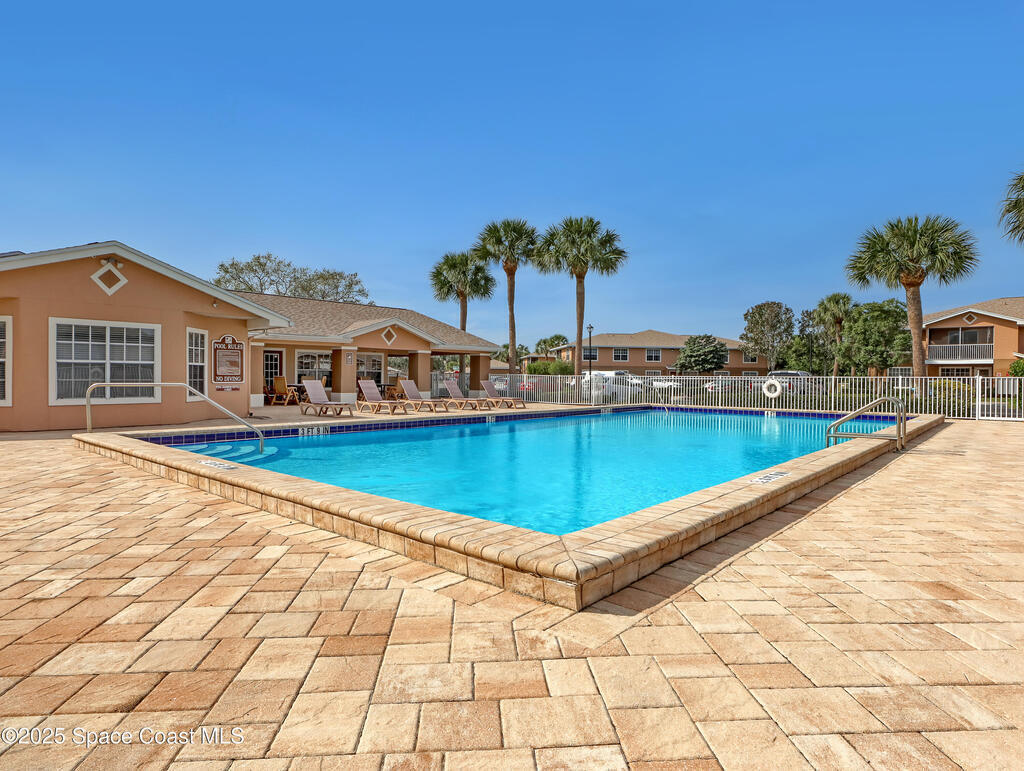 This ground floor corner unit sits in the gated community of The Greens at Viera and is ready for a new owner who wants comfort and a great location. You are greeted by a covered front porch which gives you a quiet place to sit and enjoy the day. The living area, kitchen, and common areas have luxury vinyl plank floors for easy maintenance. The 3 bedrooms have carpet and both bathrooms have tile and are fully updated with new tile, vanities, mirrors and fixtures. The primary bedroom has a walk in closet and a private bath with a shower. The kitchen has a new stainless steel fridge, white cabinets, a breakfast bar and plenty of storage space. The home includes a washer and dryer tucked away in the hall. The gated community has a pool, clubhouse, fitness center, and well kept grounds. The location puts you close to the best parts of the Space Coast with quick drives to Cocoa Beach, Cocoa Village, and Kennedy Space Center.