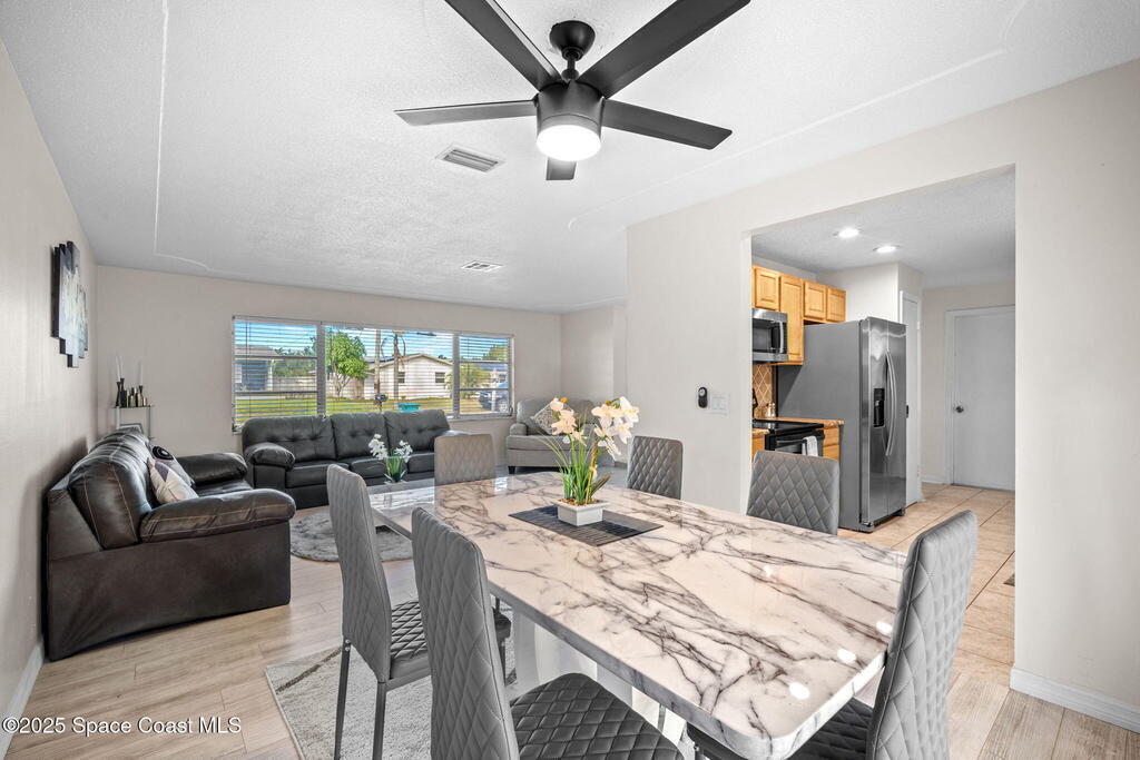 1505 W Central Ave offers true canal-front living with access to the Banana River. This 4 bedroom, 2 bath home includes an oversized 2-car garage and a layout that brings the water into everyday living. The kitchen is finished with granite countertops and stainless-steel appliances, and the interior features new tile and engineered wood flooring. A large screened lanai connects the primary suite, living room, and family room, extending the living space outdoors with wide canal views. The backyard is open and level with plenty of space for a future pool or additional outdoor living. Light-filled rooms and a practical floor plan make this a comfortable home for full-time or seasonal living. Just minutes to Kelly Park, Port Canaveral, beaches, local restaurants, and major roadways for easy access around the Space Coast and to Orlando.