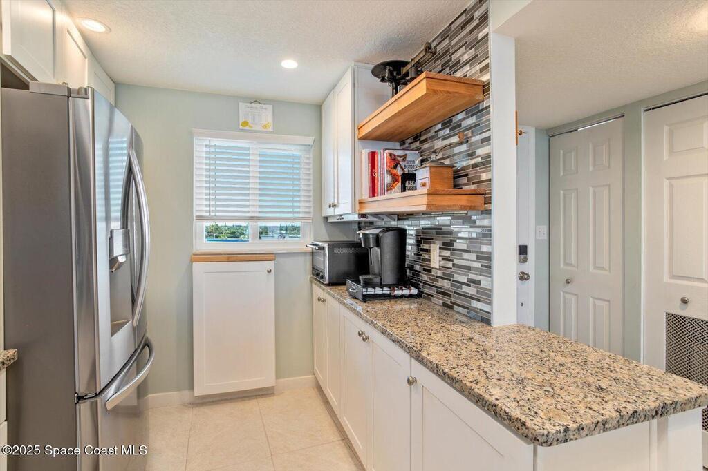 Welcome into this RENOVATED Modern Coastal Living condo where innovation meets comfort. Step into Unit 403, a beautifully revitalized beachside residence designed for those who appreciate thoughtful upgrades, clean lines, and panoramic Florida vistas. Perfectly positioned in the middle of the south building, this condo captures natural light from both the east and west--meaning you'll wake with the sunrise and wind down to postcard sunsets without ever leaving home.A Home That Has Been Fully ElevatedThis isn't just an updated unit--it's been purposefully designed for those with impeccable taste and style. Brand-new energy-efficient floor-to-ceiling sliders in the living room and primary suite bring the coastline directly into your space.Full kitchen renovation redesigned the layout into a true open-concept plan--including a sleek 15-bottle wine cooler and built-in rack for your favorite vintages. Remodeled bathrooms featuring modern finishes and refreshed design detail